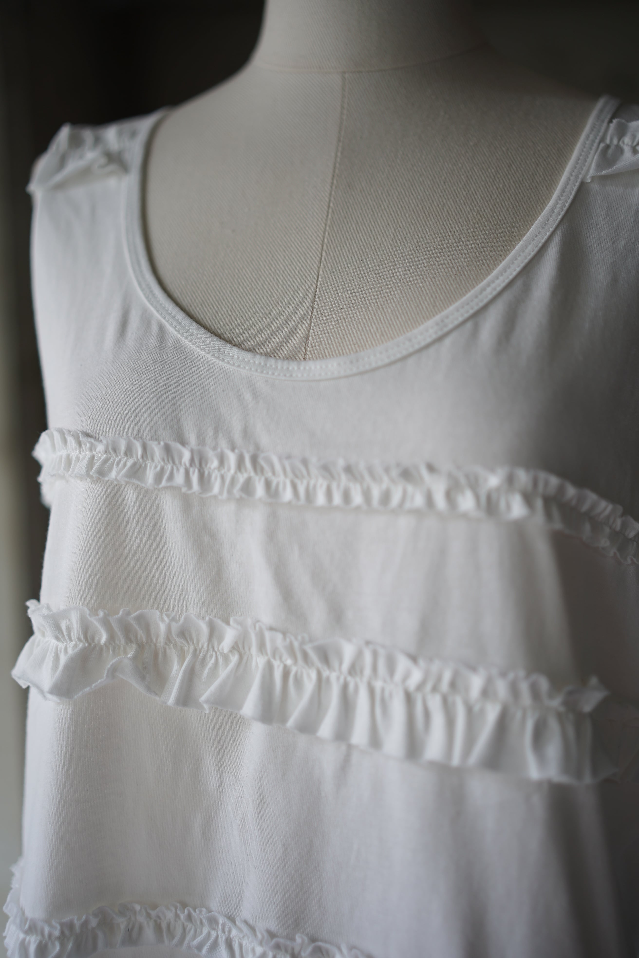 フリルの動きがあるデザインのタンクベスト。