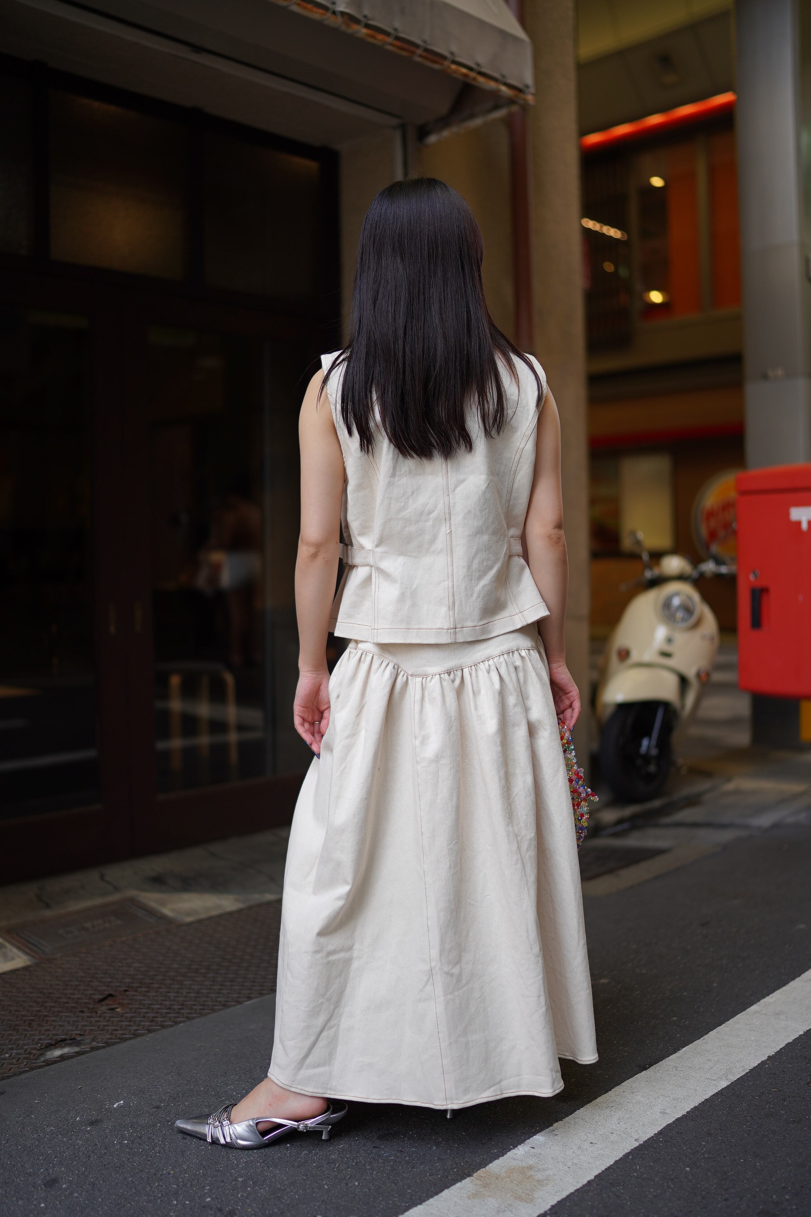 サイドのベルトでウエストマークができ、シルエットを変えて着用いただけます。