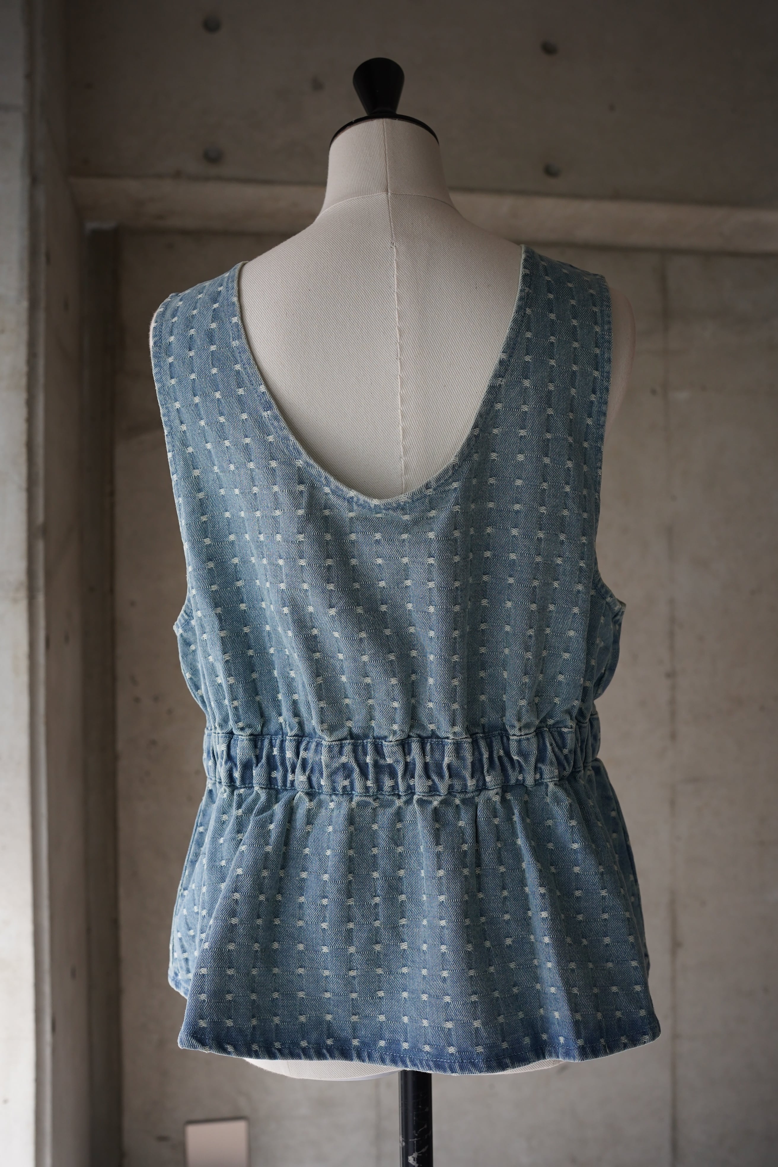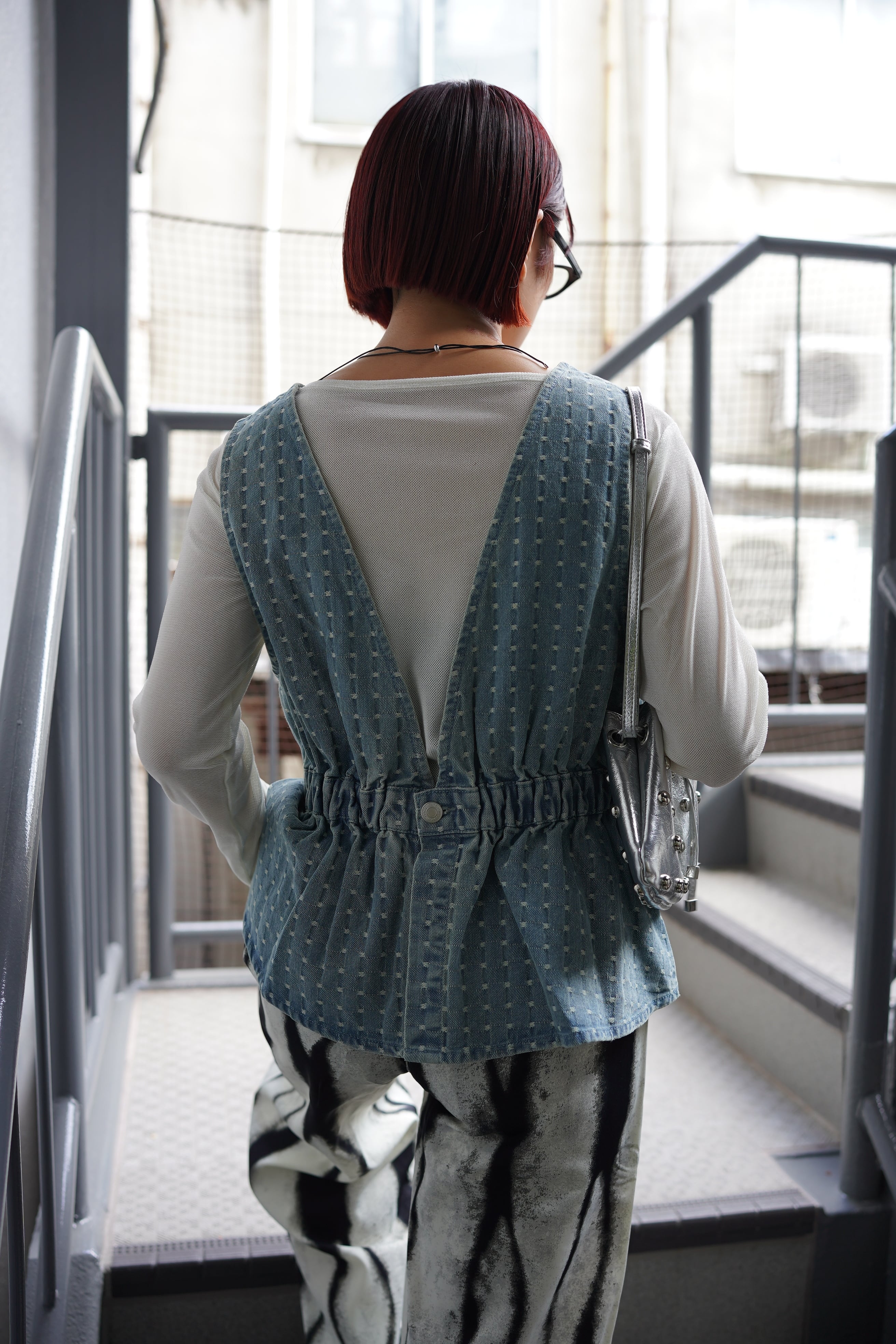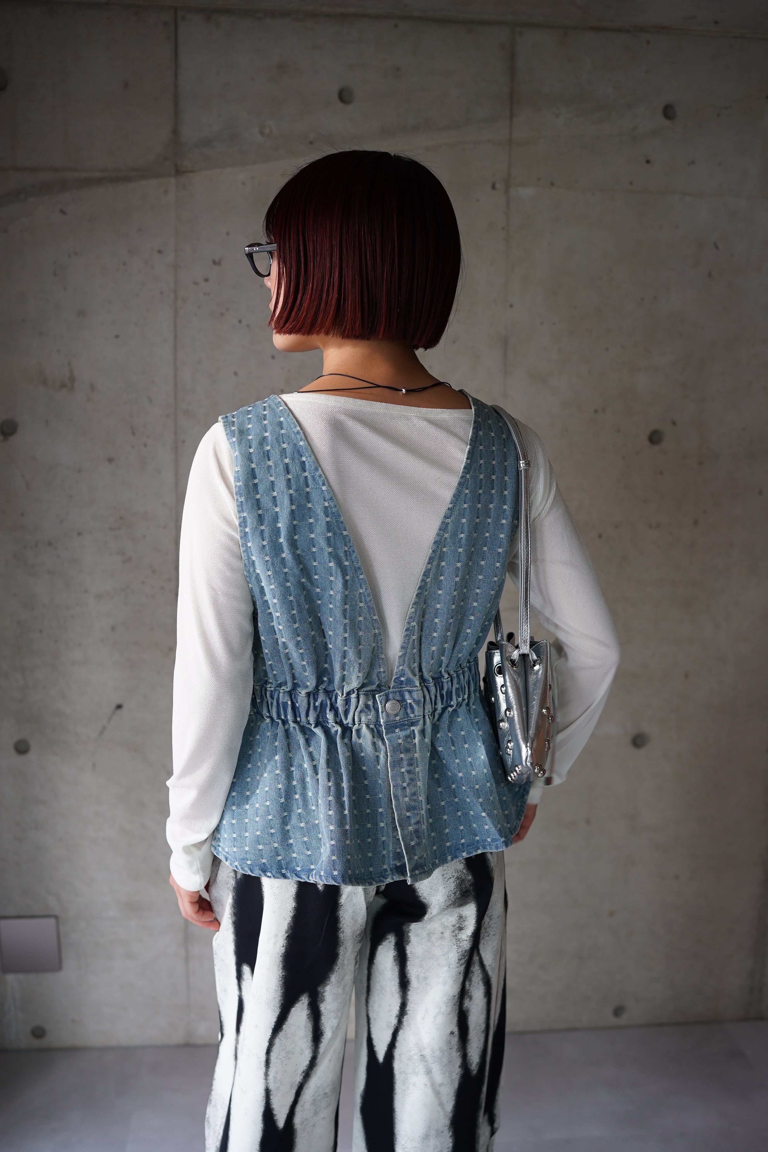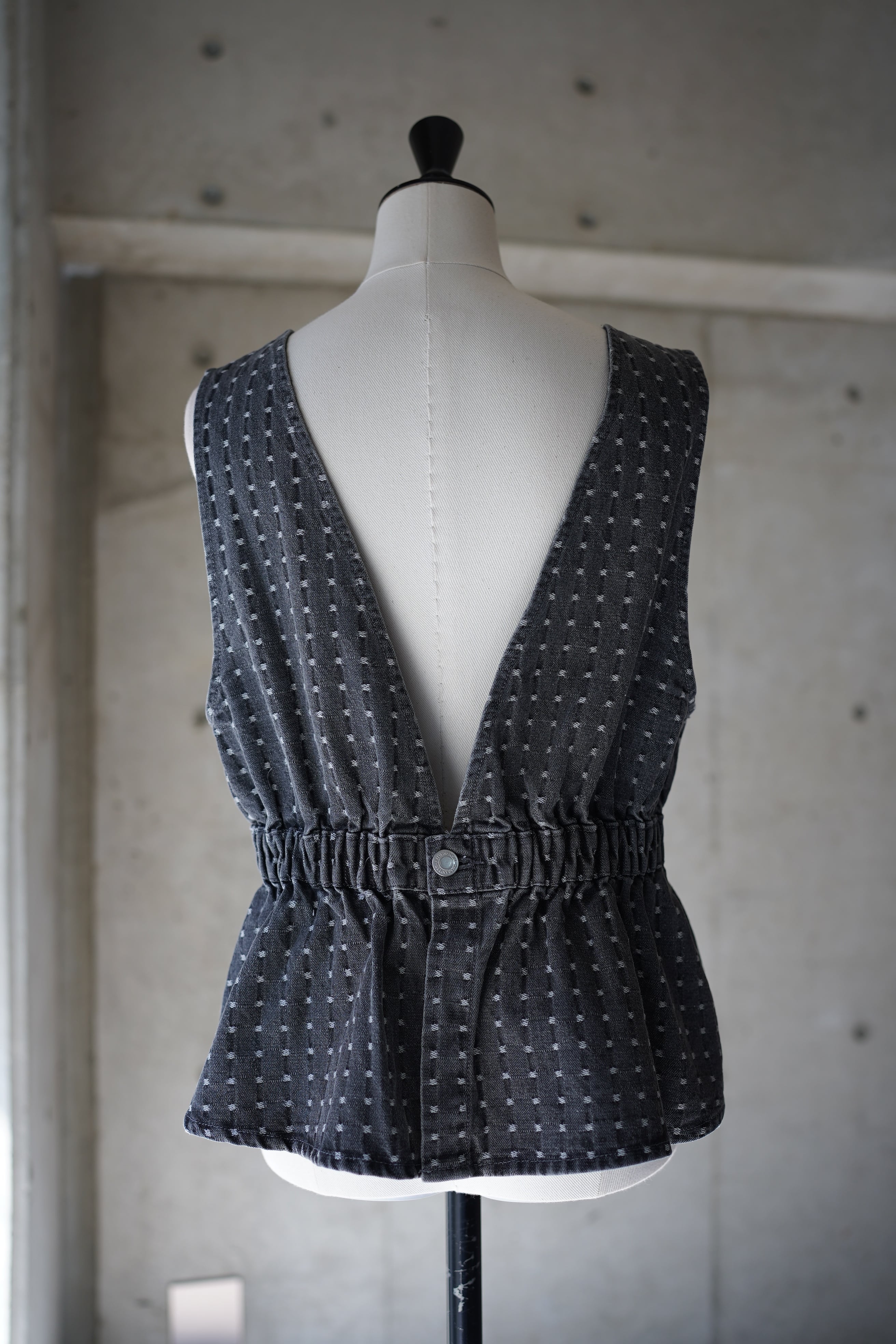 ジャガードデニムのウエストデザインがポイントのビスチェ。