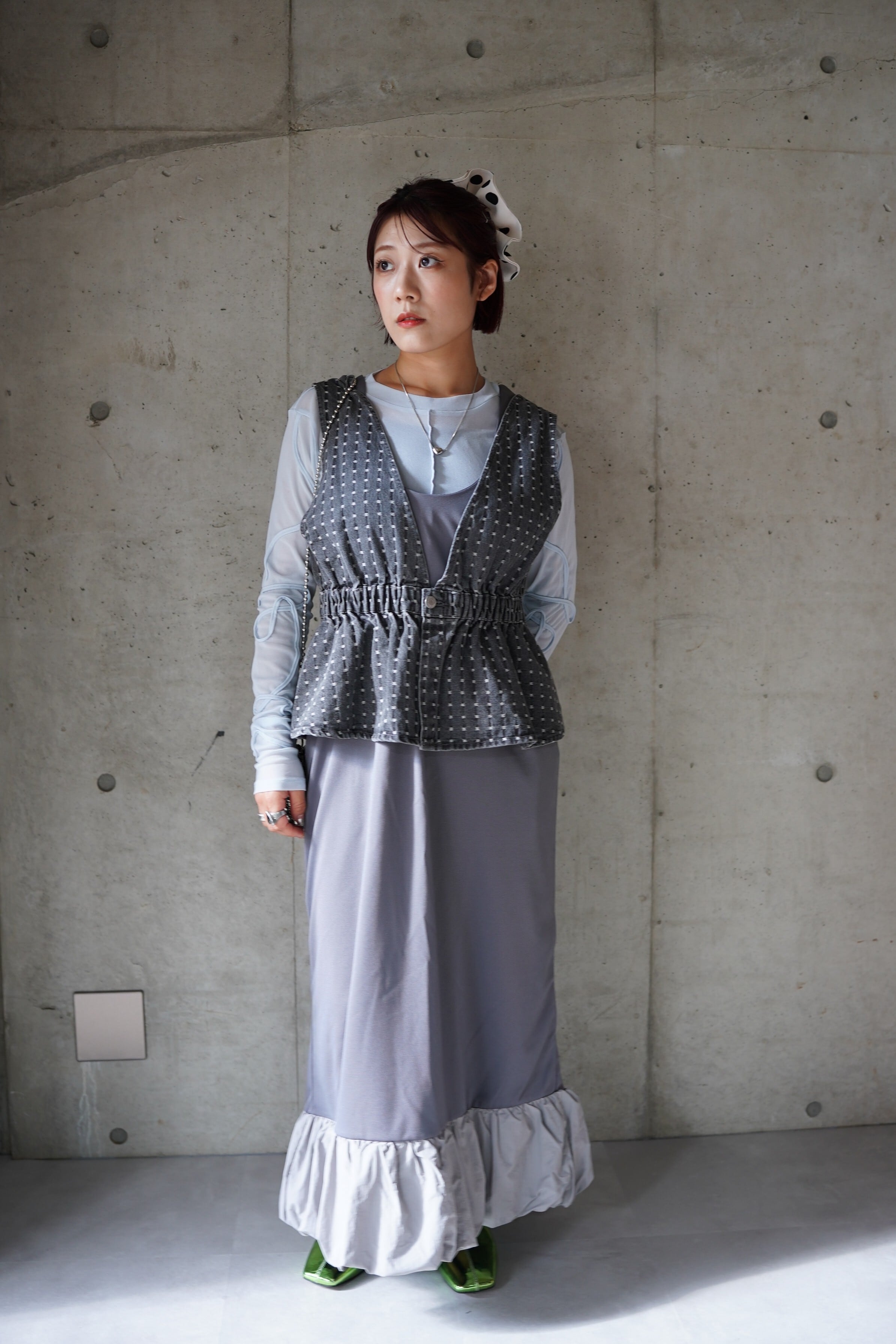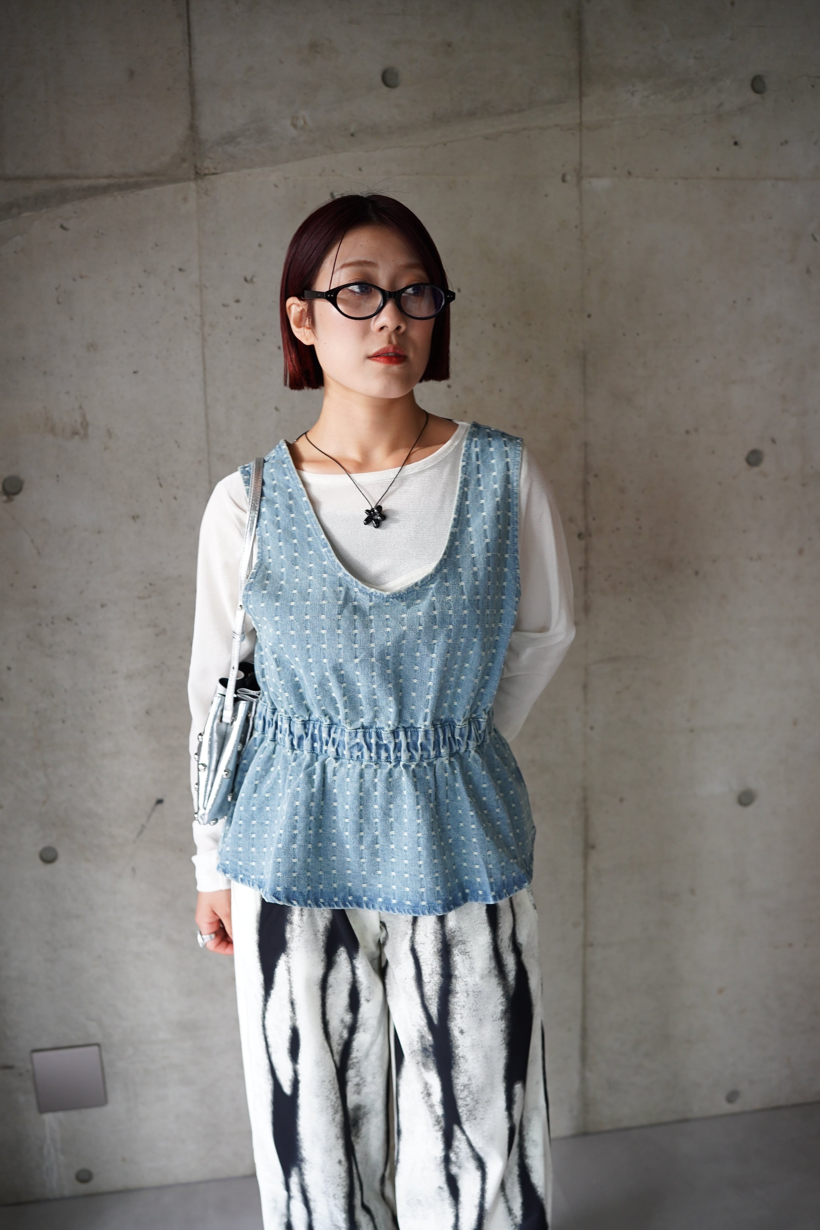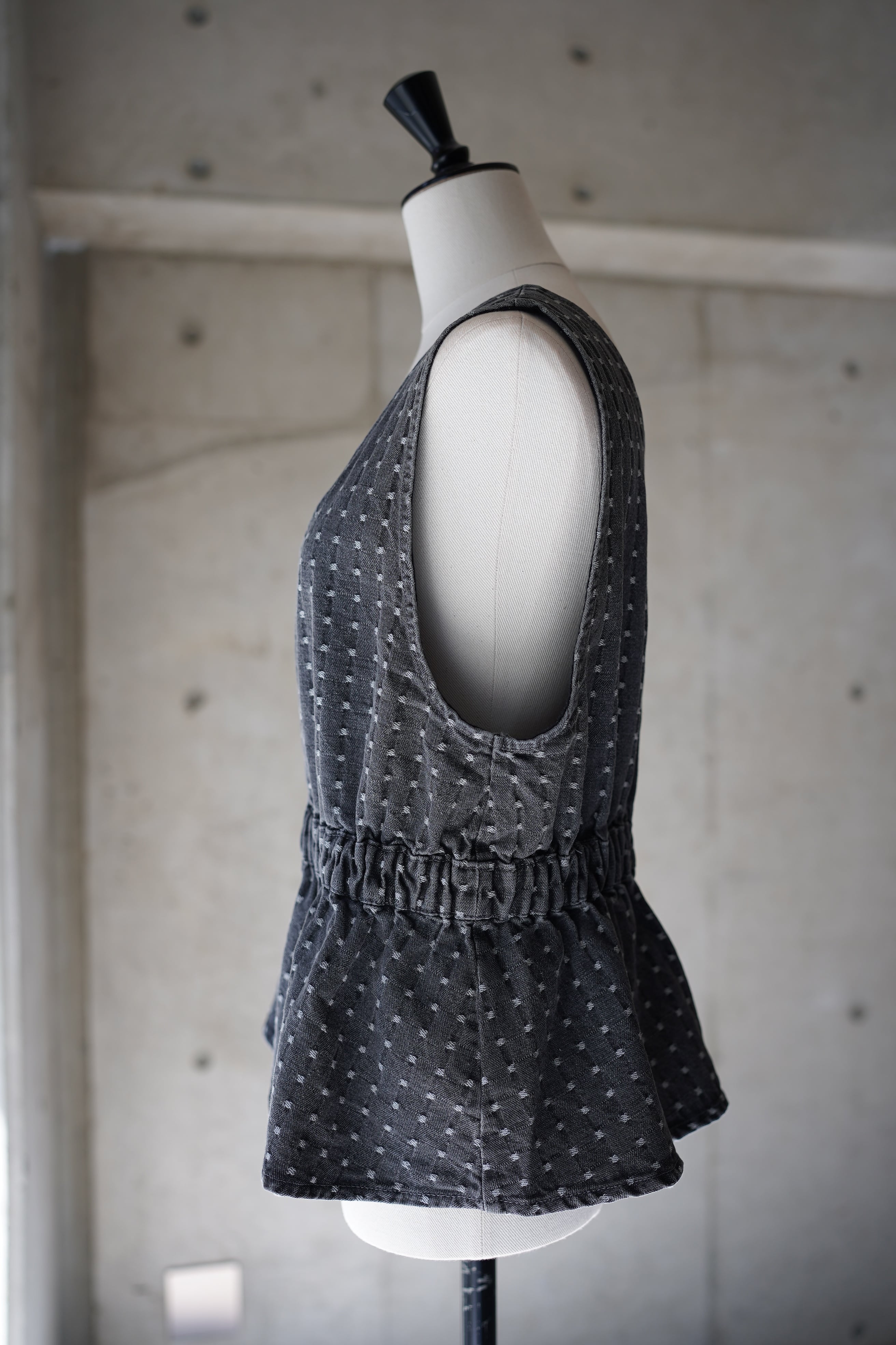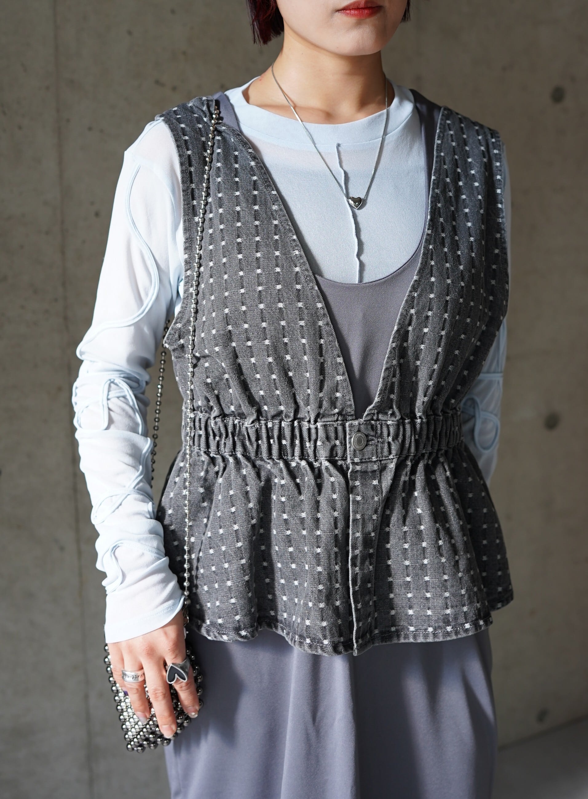 ジャガードデニムのウエストデザインがポイントのビスチェ。