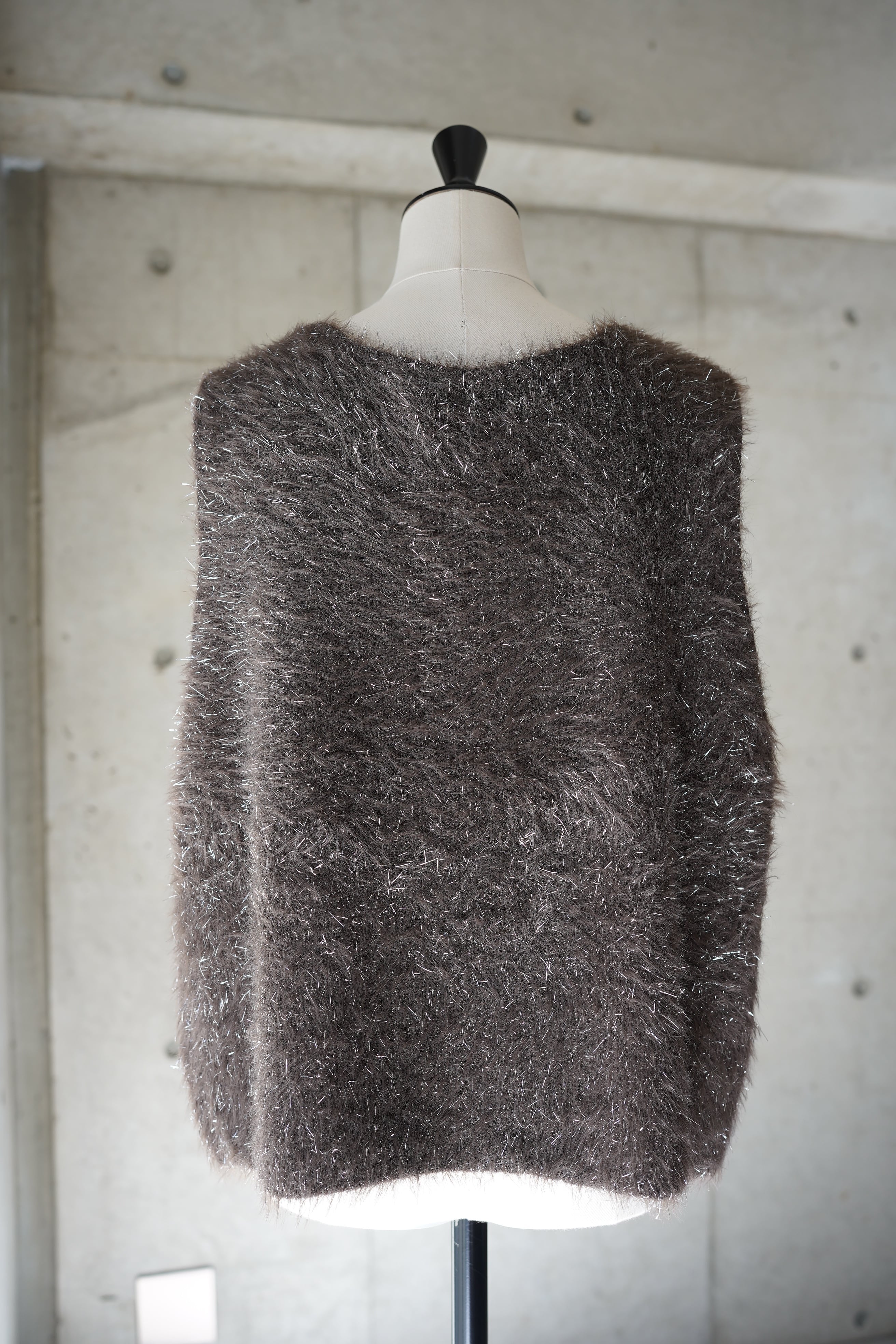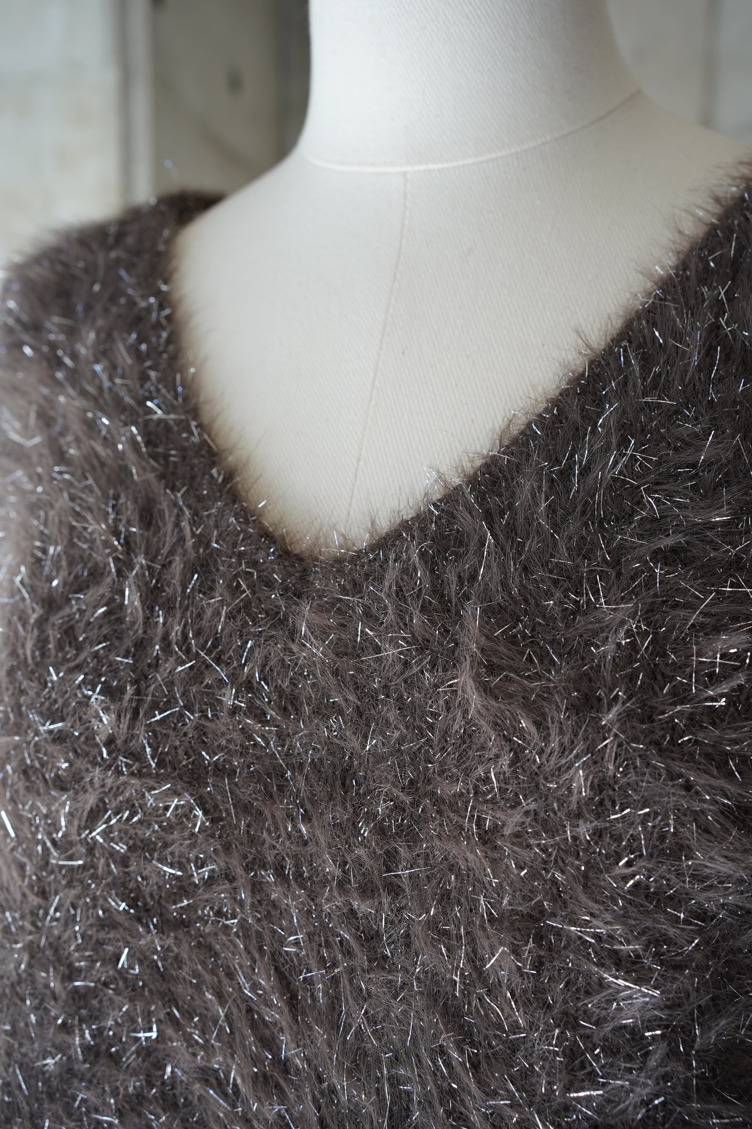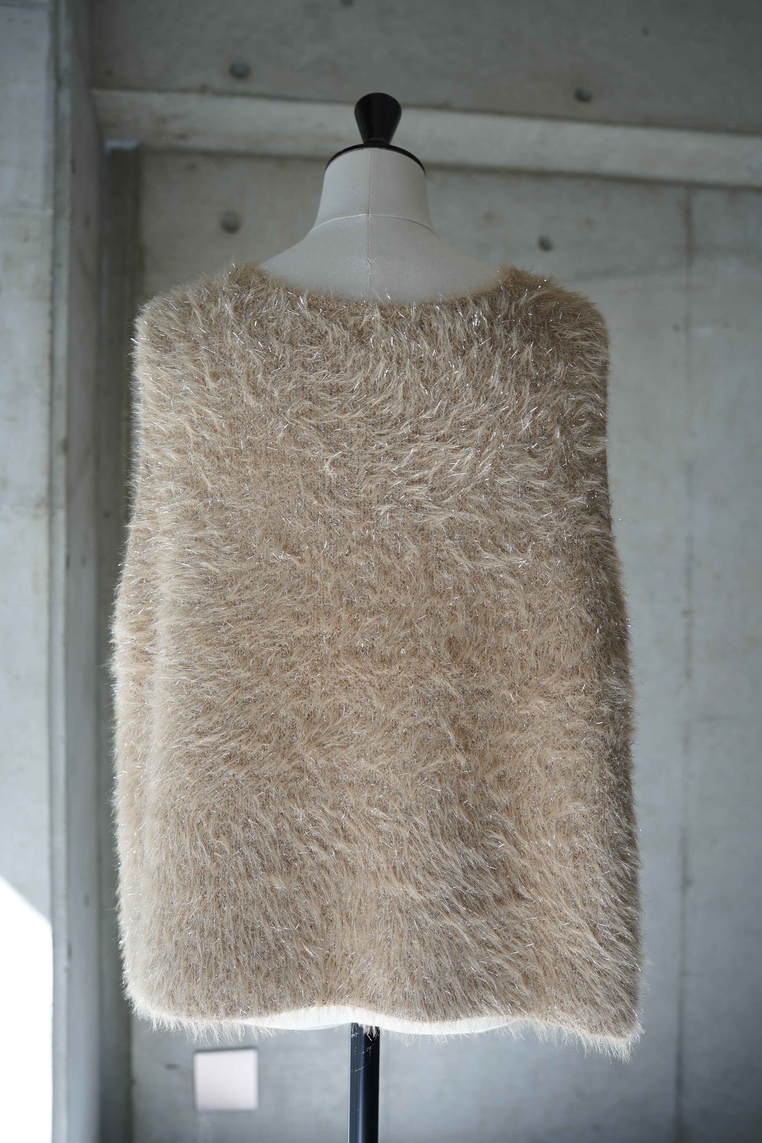 毛足の長いシャギーにラメ糸をミックスした質感のニットベスト。