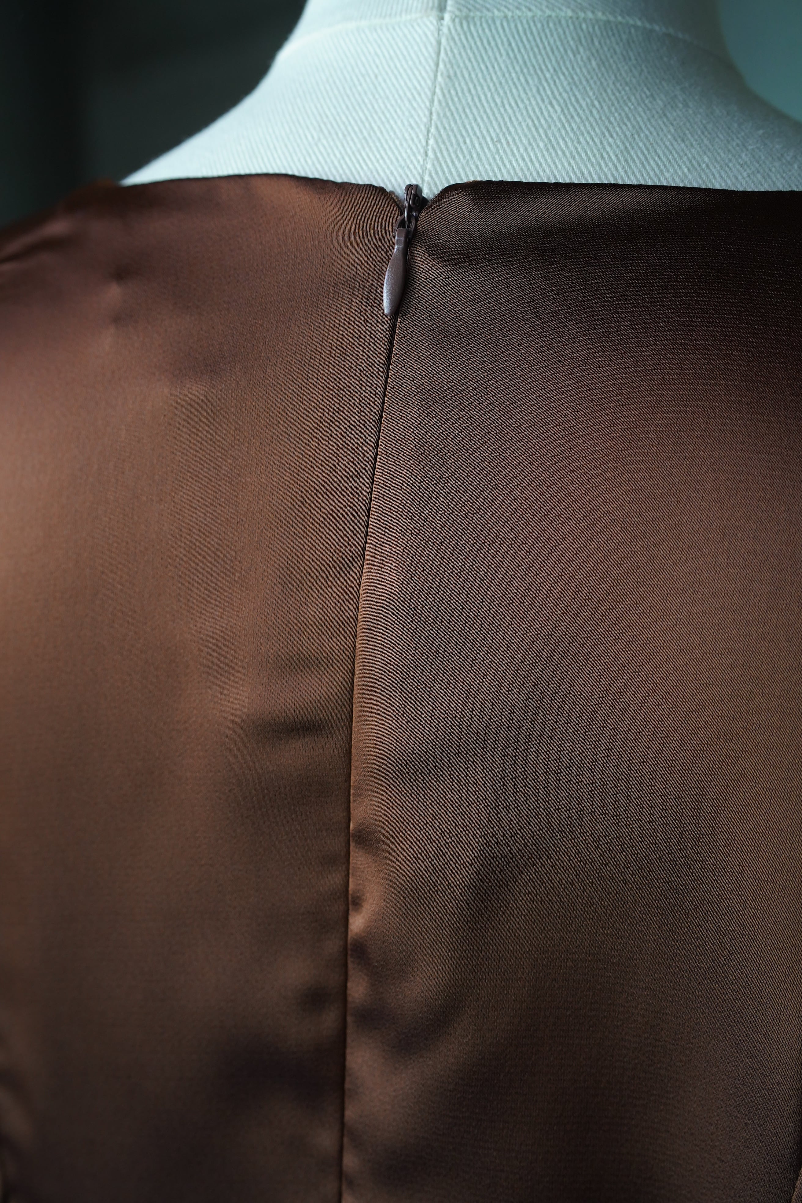 絶妙な位置にドレープとギャザーが入り、立体感と動きのある一品に。