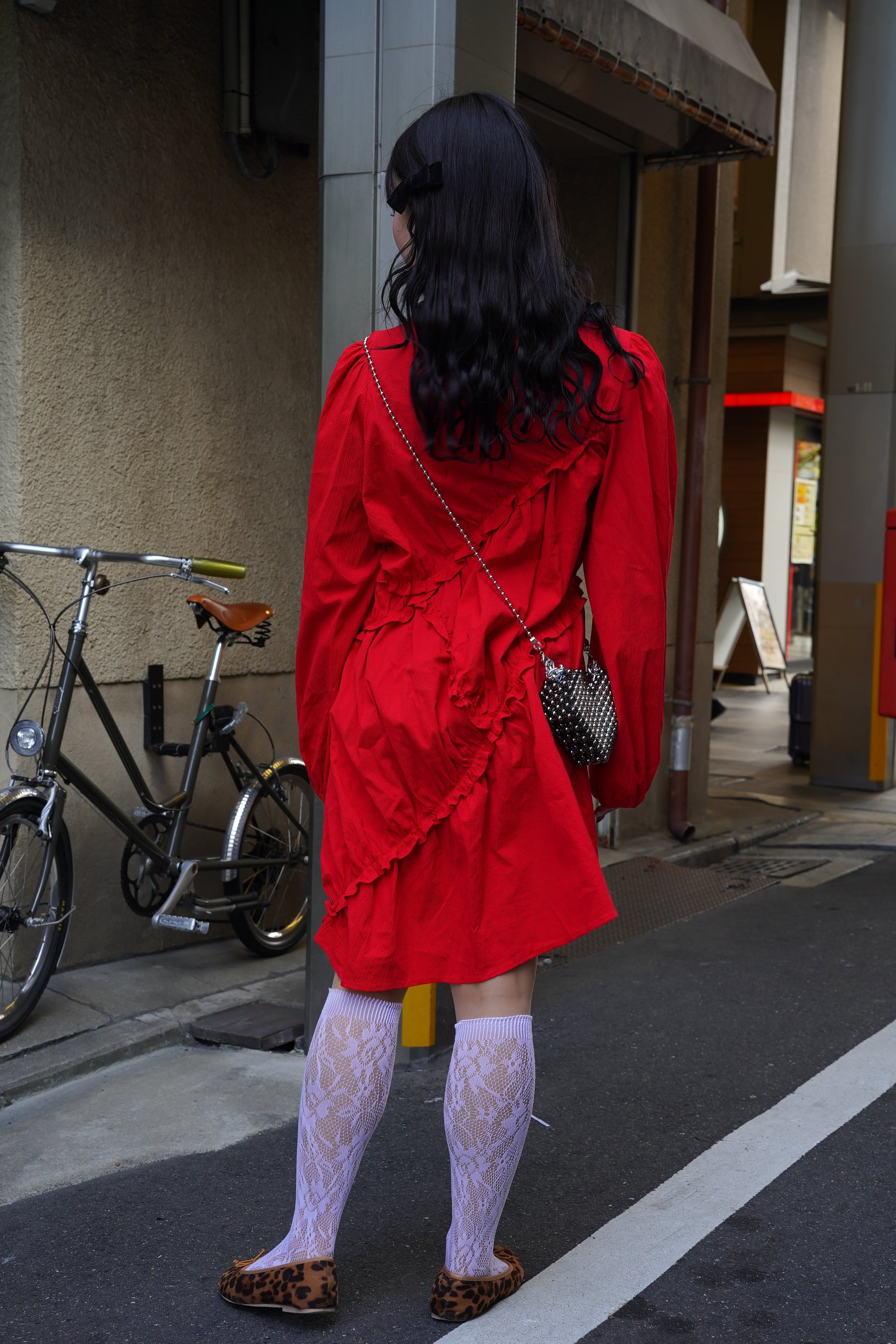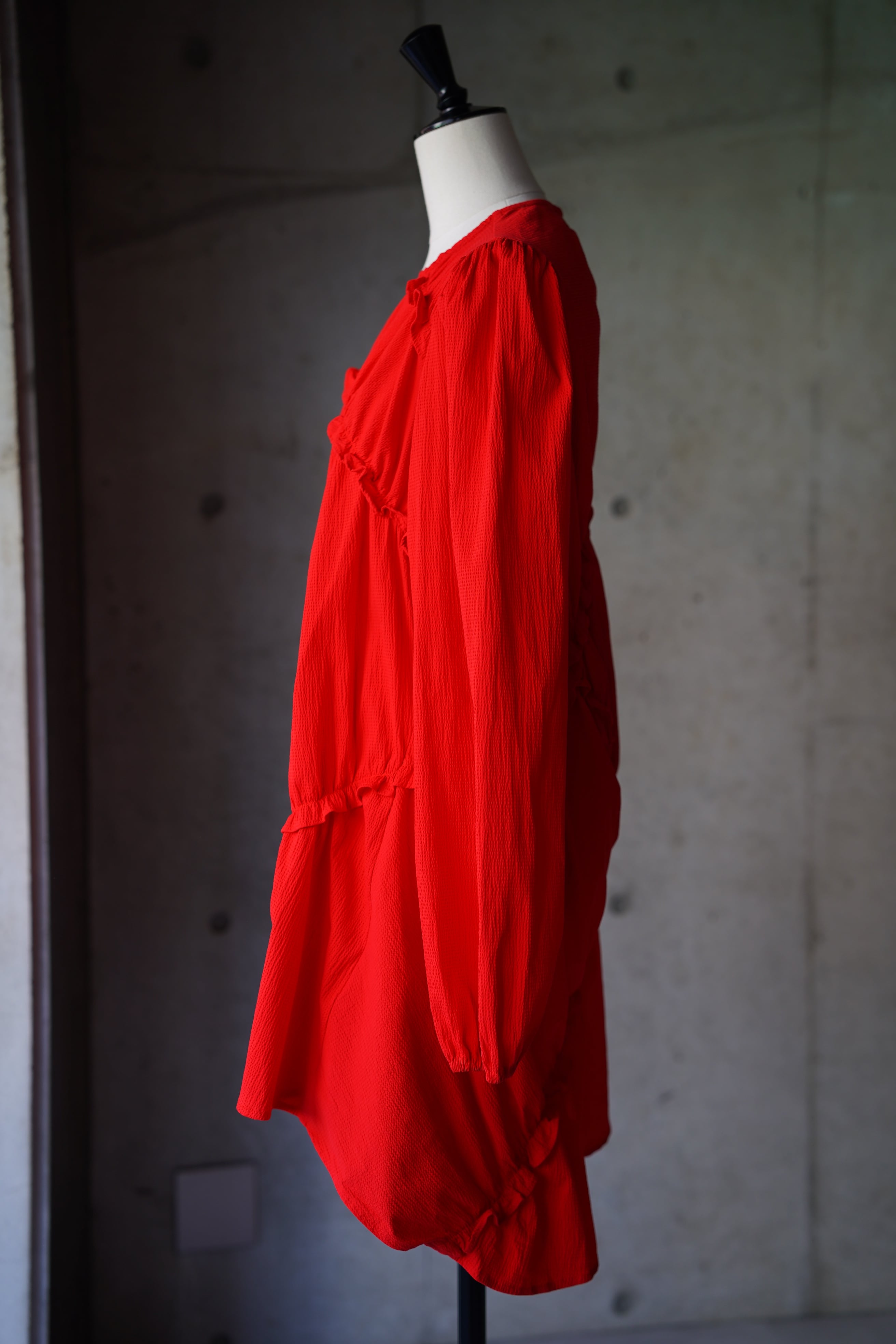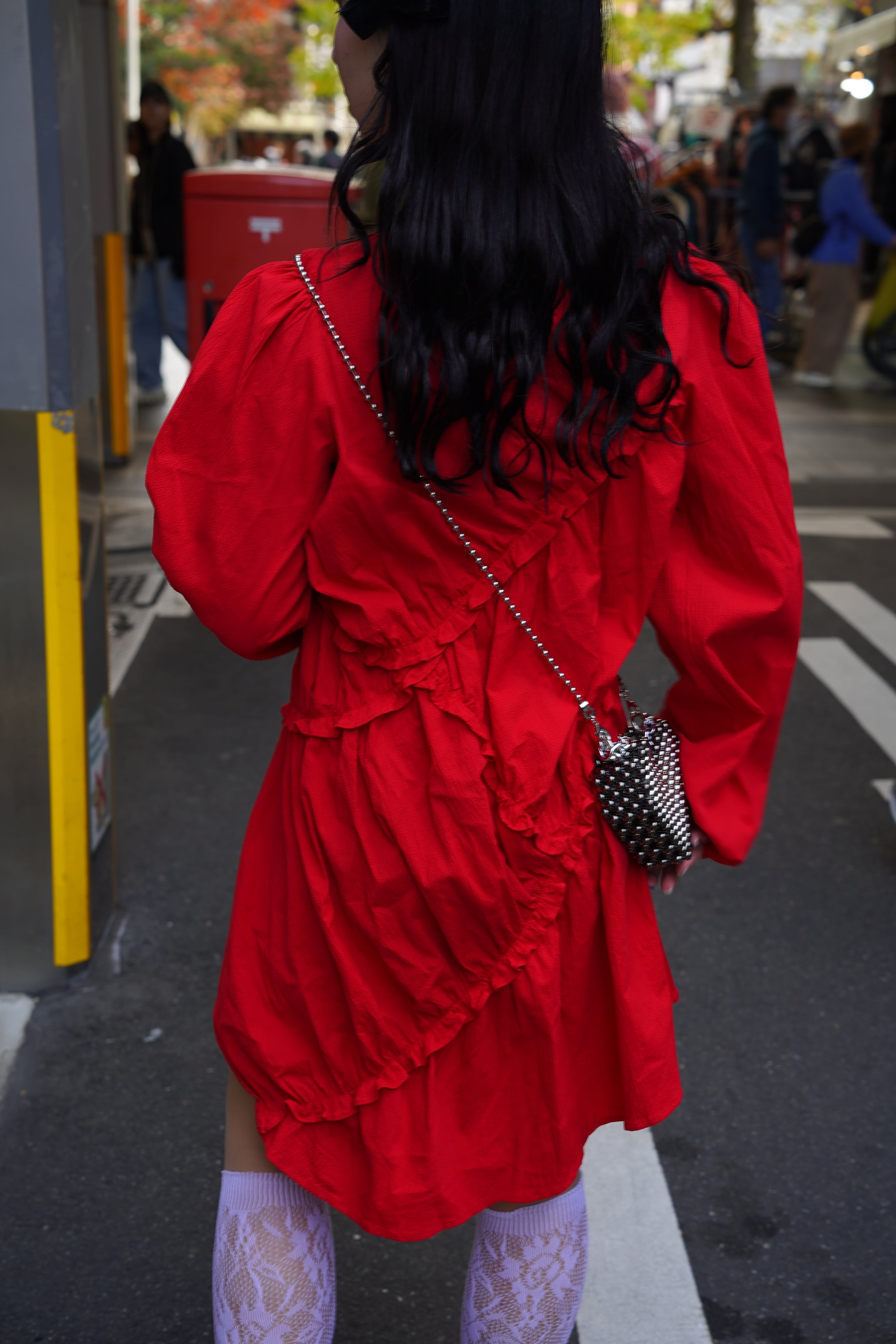 アシンメトリーなシルエットとラッフルのディテールが魅惑的なリズムを生み出します。