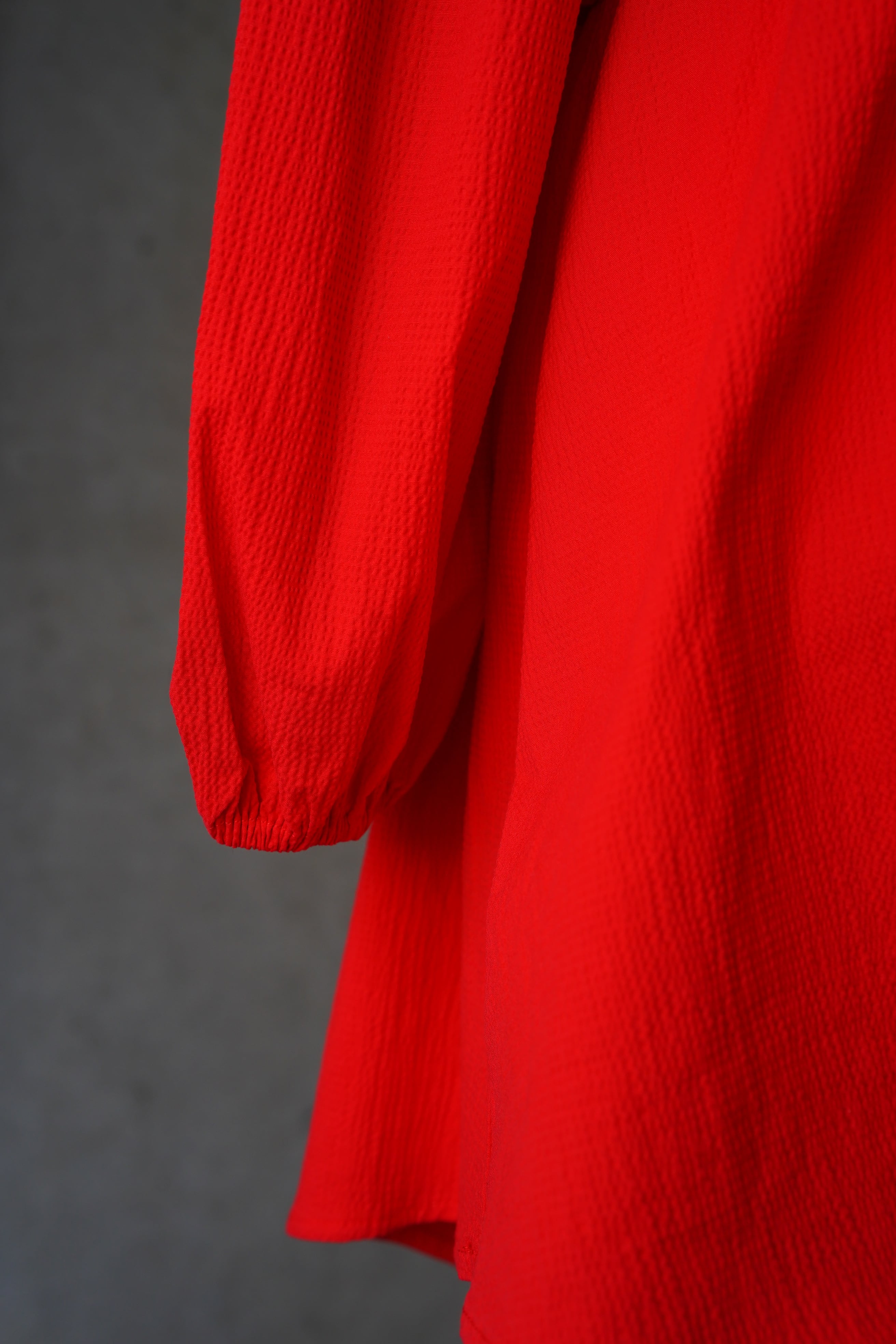 立体感のあるサッカー素材がドレスアップ感をおさえ、普段使いにもぴったりです。