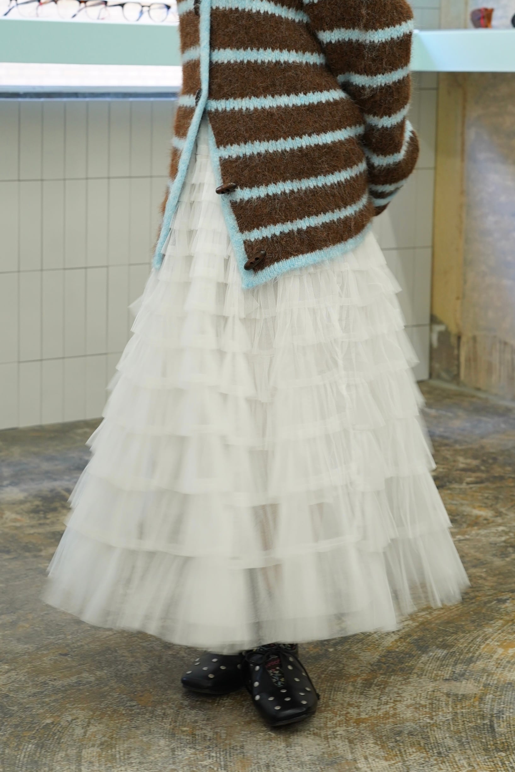「LONG FRIL SKIRT」は、女性らしさを引き立てるフリルロングスカートです。流れるようなシルエットと豊かなフリルが、どんなスタイルにも華やかさをプラスし、デイリーコーディネートから特別なシーンまで幅広くご利用いただけます。