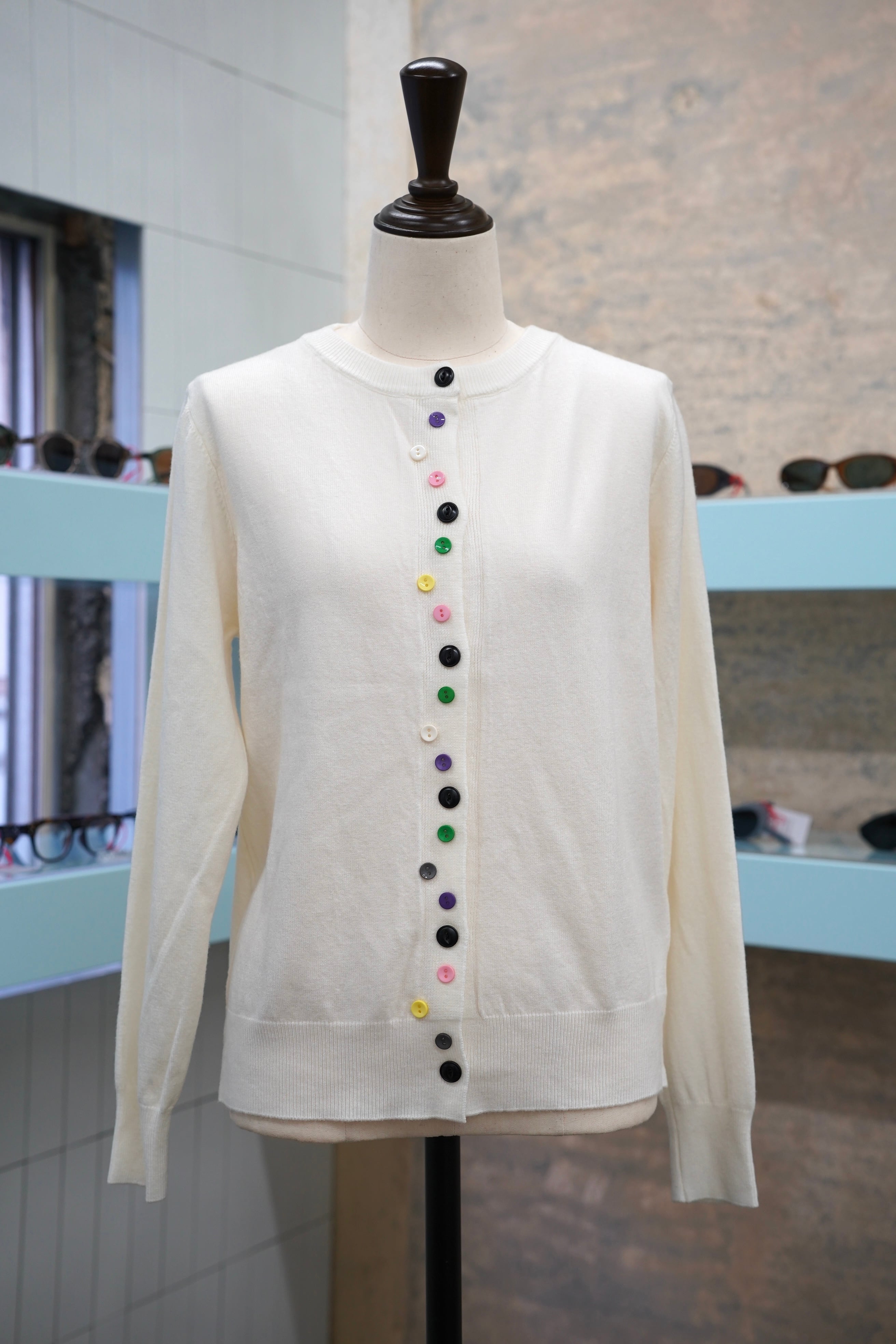 「GURAGURA TAKUSAN BUTTON CARDIGAN」は、華やかなカラーバリエーションのボタンが特徴のカーディガンです。