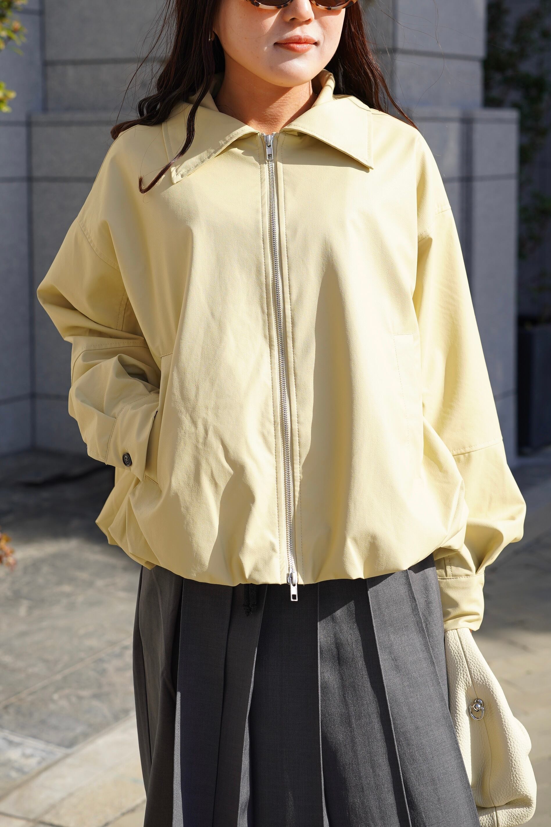 「FAKE LEATHER BALLOON BLOUSON」は、トレンド感溢れるフェイクレザーのバルーン型ブルゾンです。