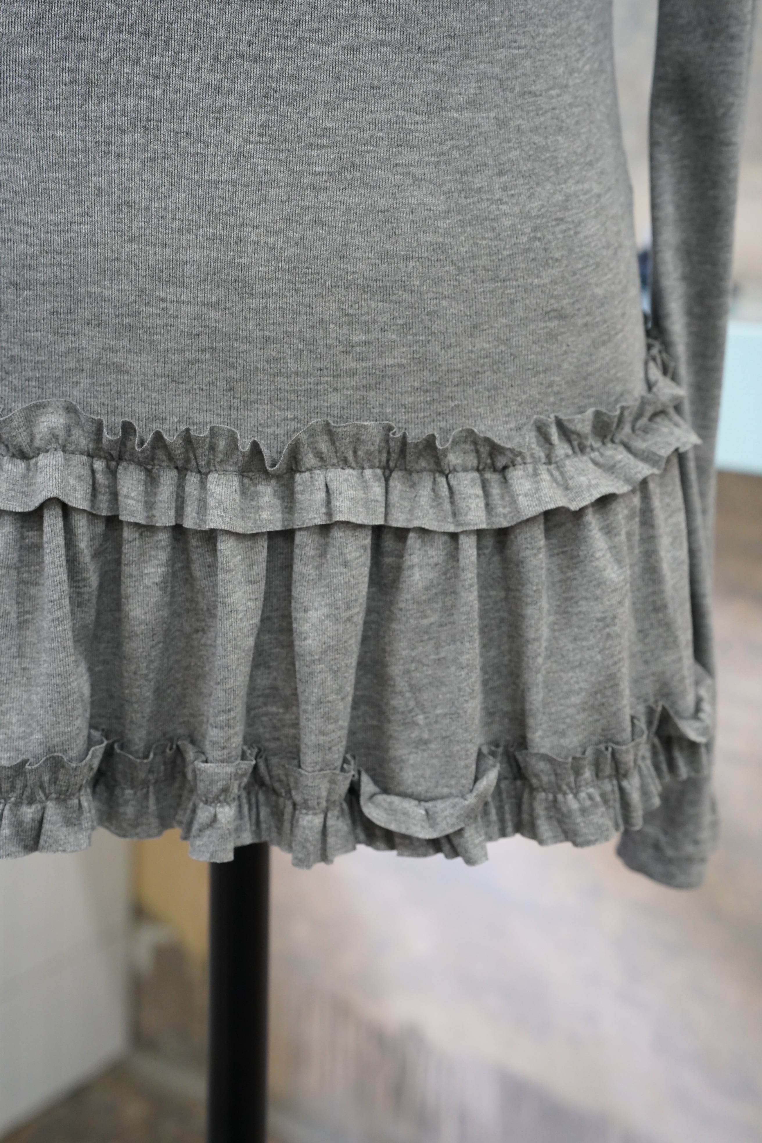 柔らかな素材感が心地よい着心地を提供し、フリルのディテールがさりげなくおしゃれな印象を与えます。
