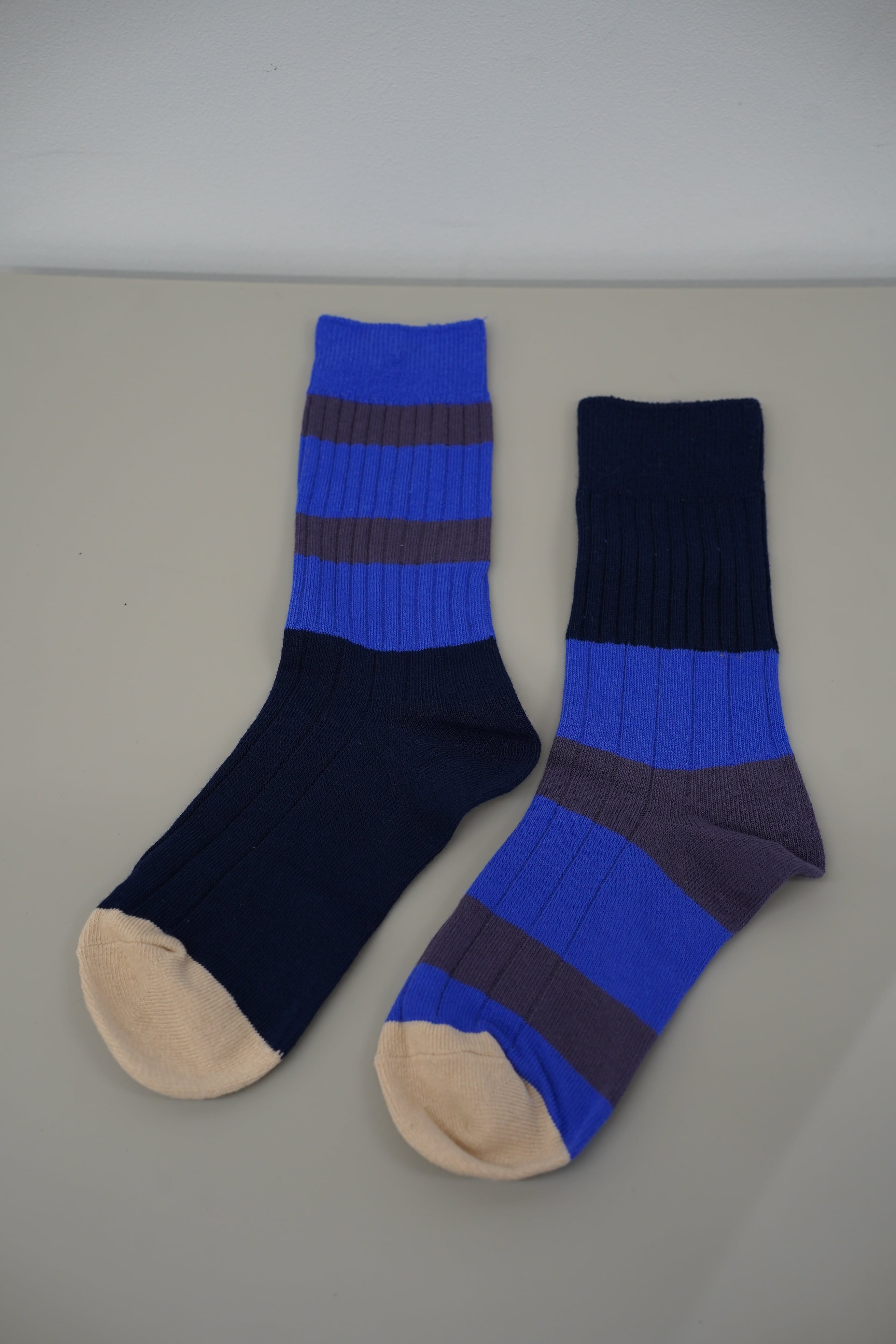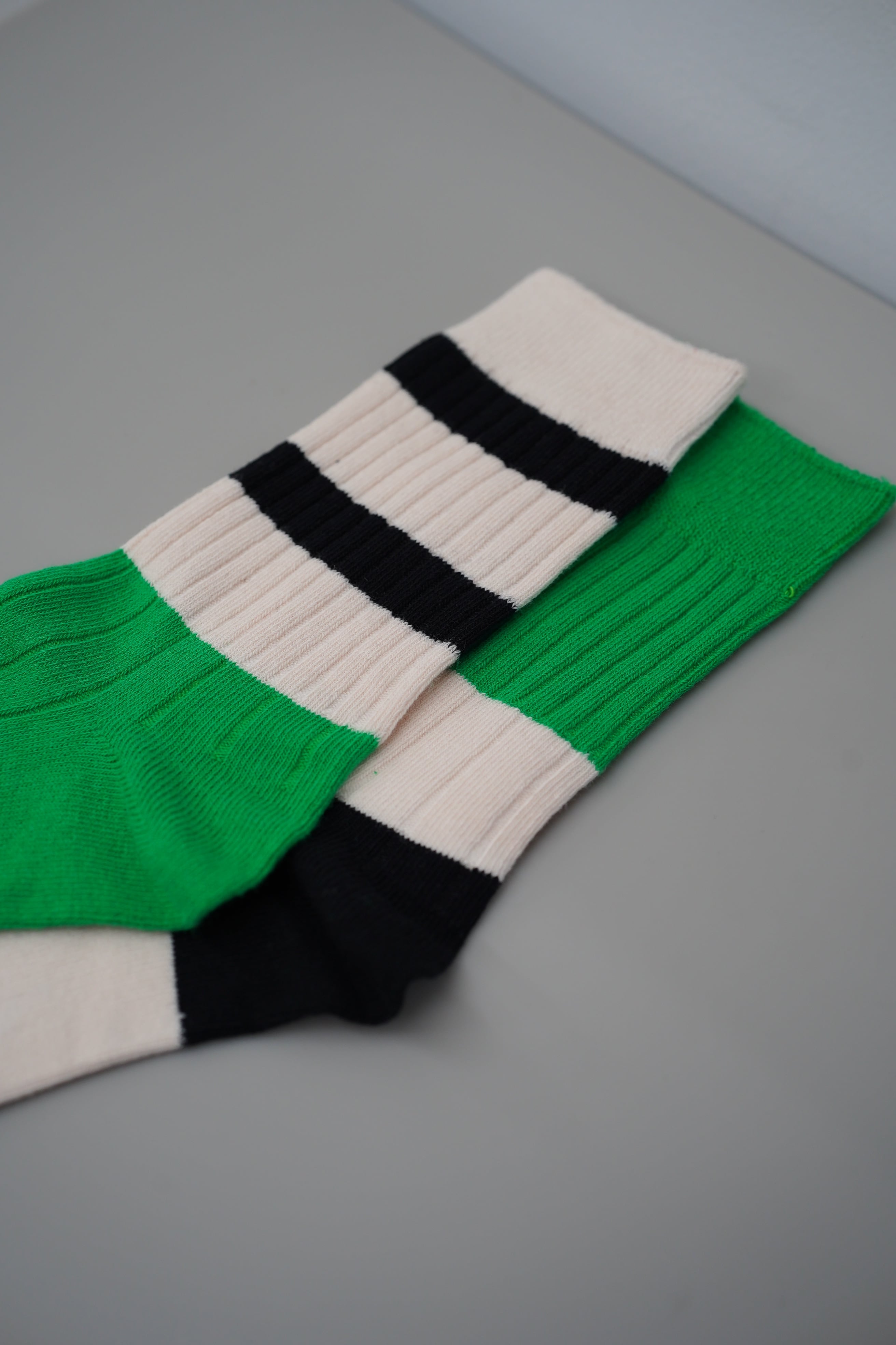 「BORDER ASYME SOX」は、さりげなく目を引くボーダーアシメデザインの靴下です。