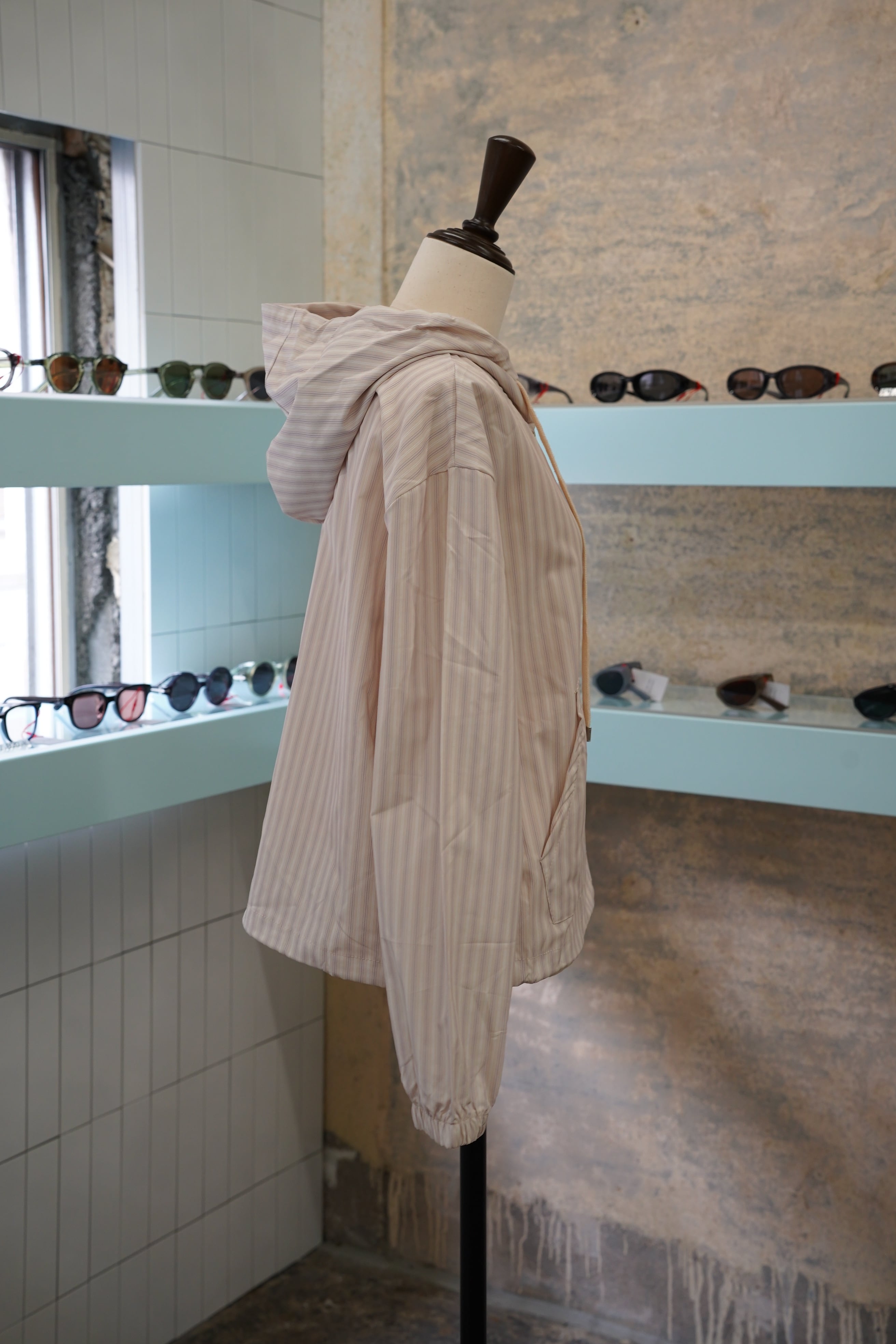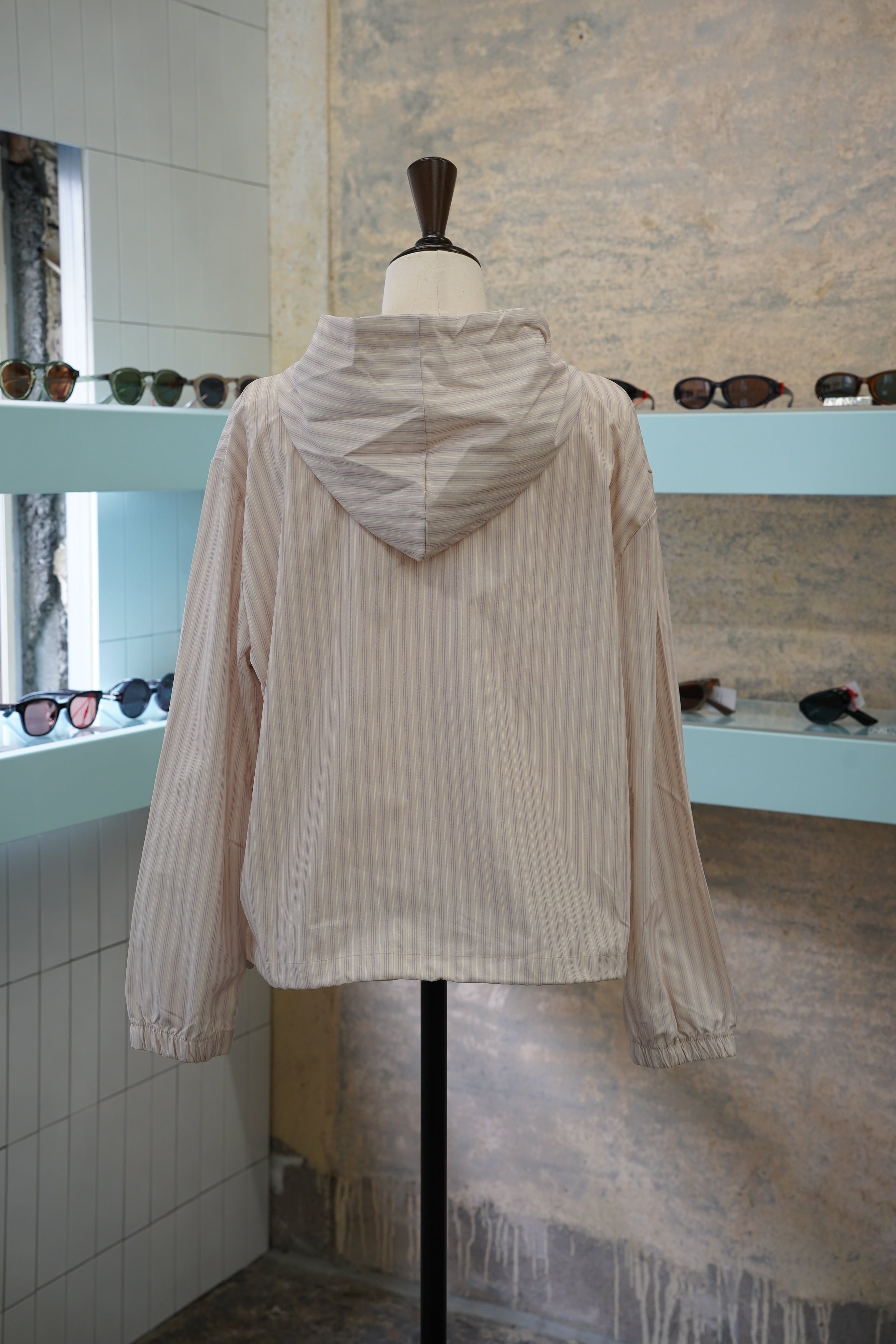 「STRIPE HARF ZIP PARKER」は、スタイリッシュなハーフジップデザインとトレンド感のあるストライプが特徴のパーカーです。