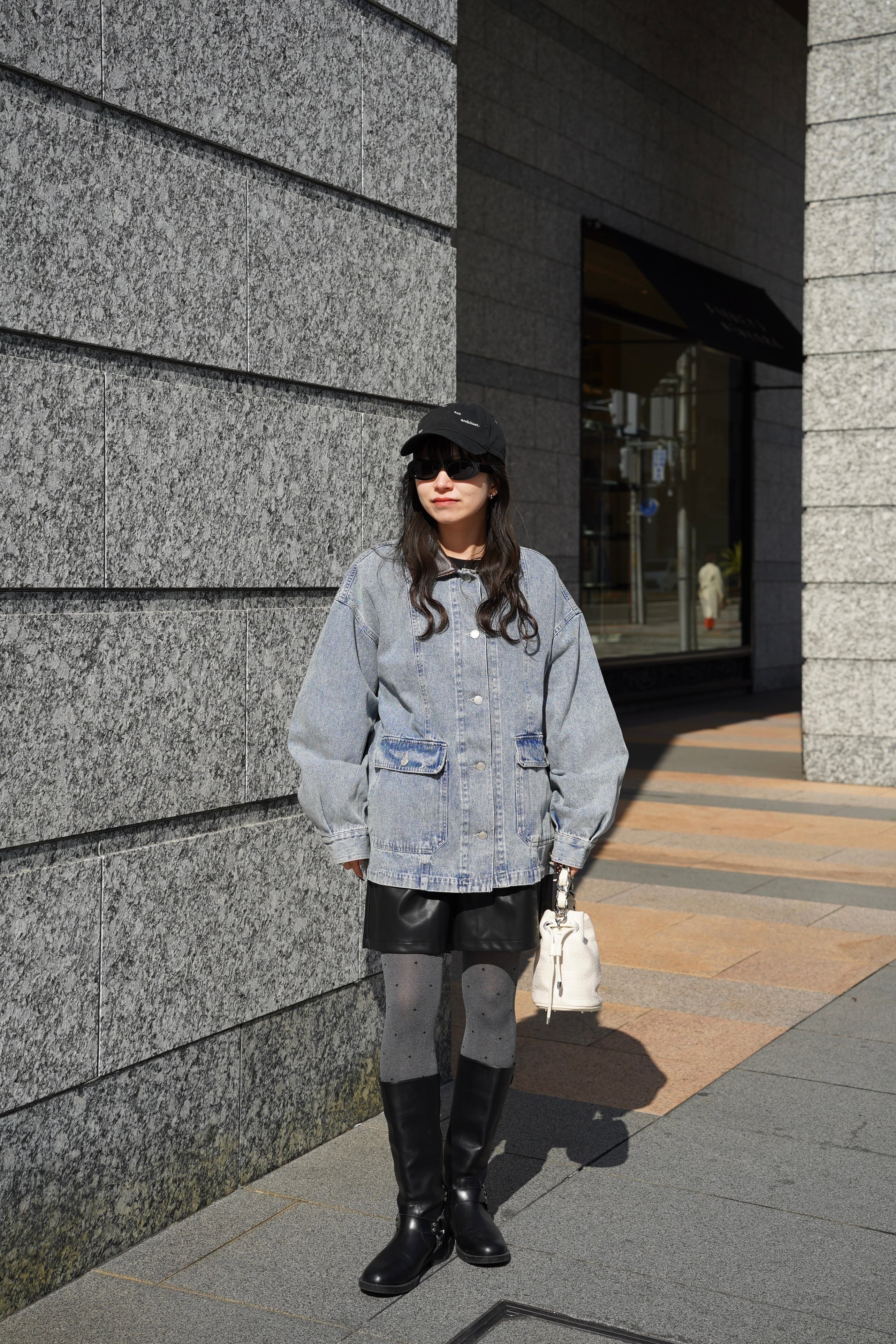 デニム素材のしっかりとした生地感が、さまざまなシーンで活躍するアイテムに仕上げています。