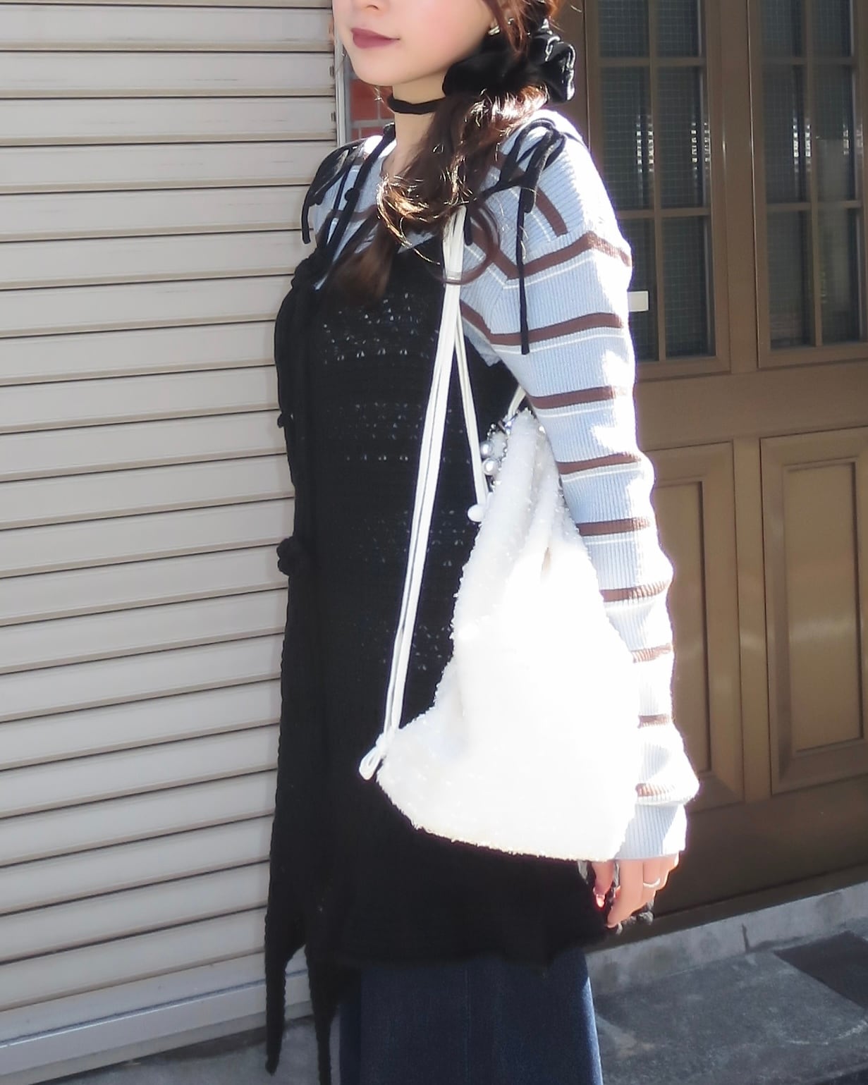 肩リボンデザインとフロントのストリングディテールが、コーディネートに華やかさをプラスします。