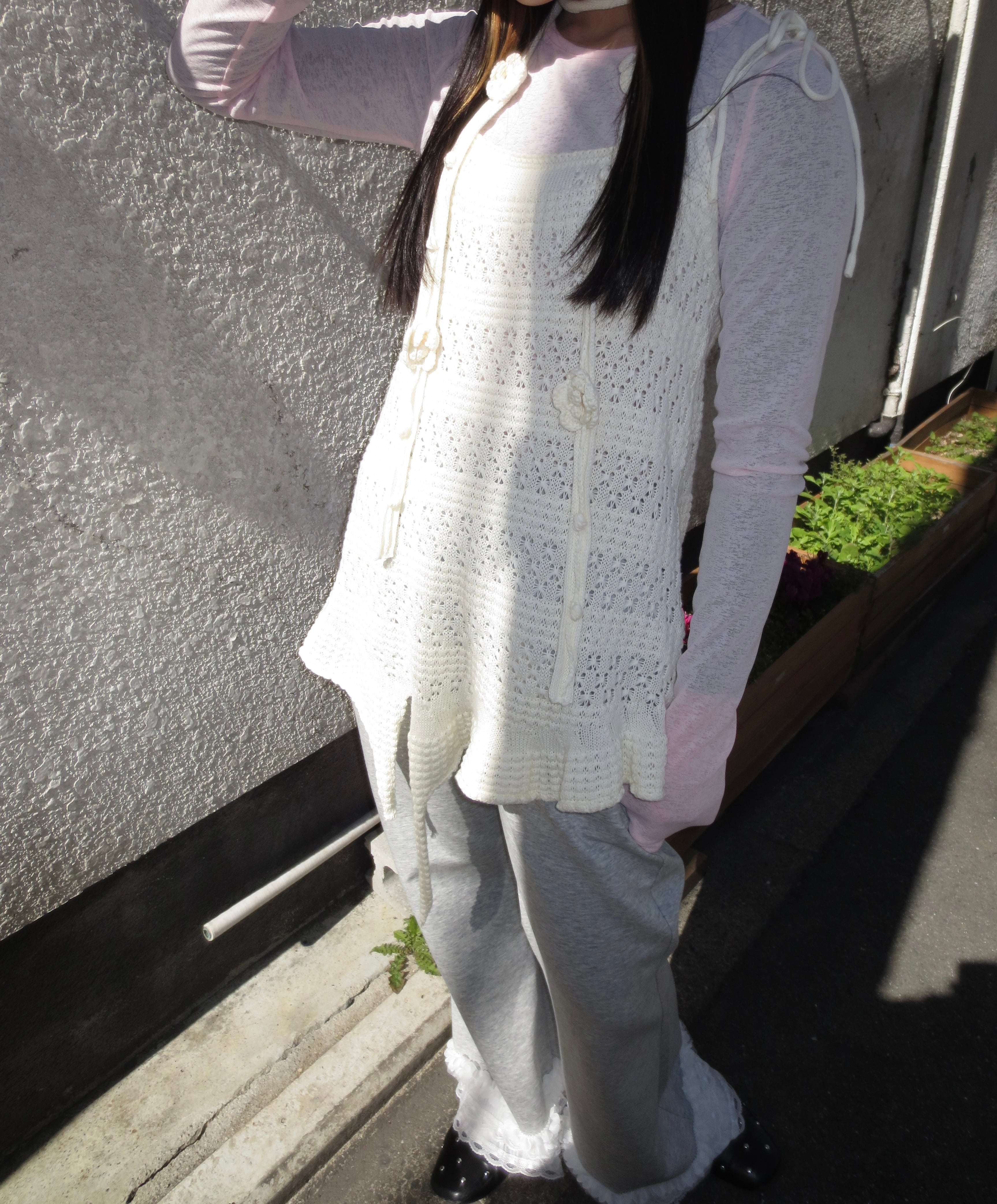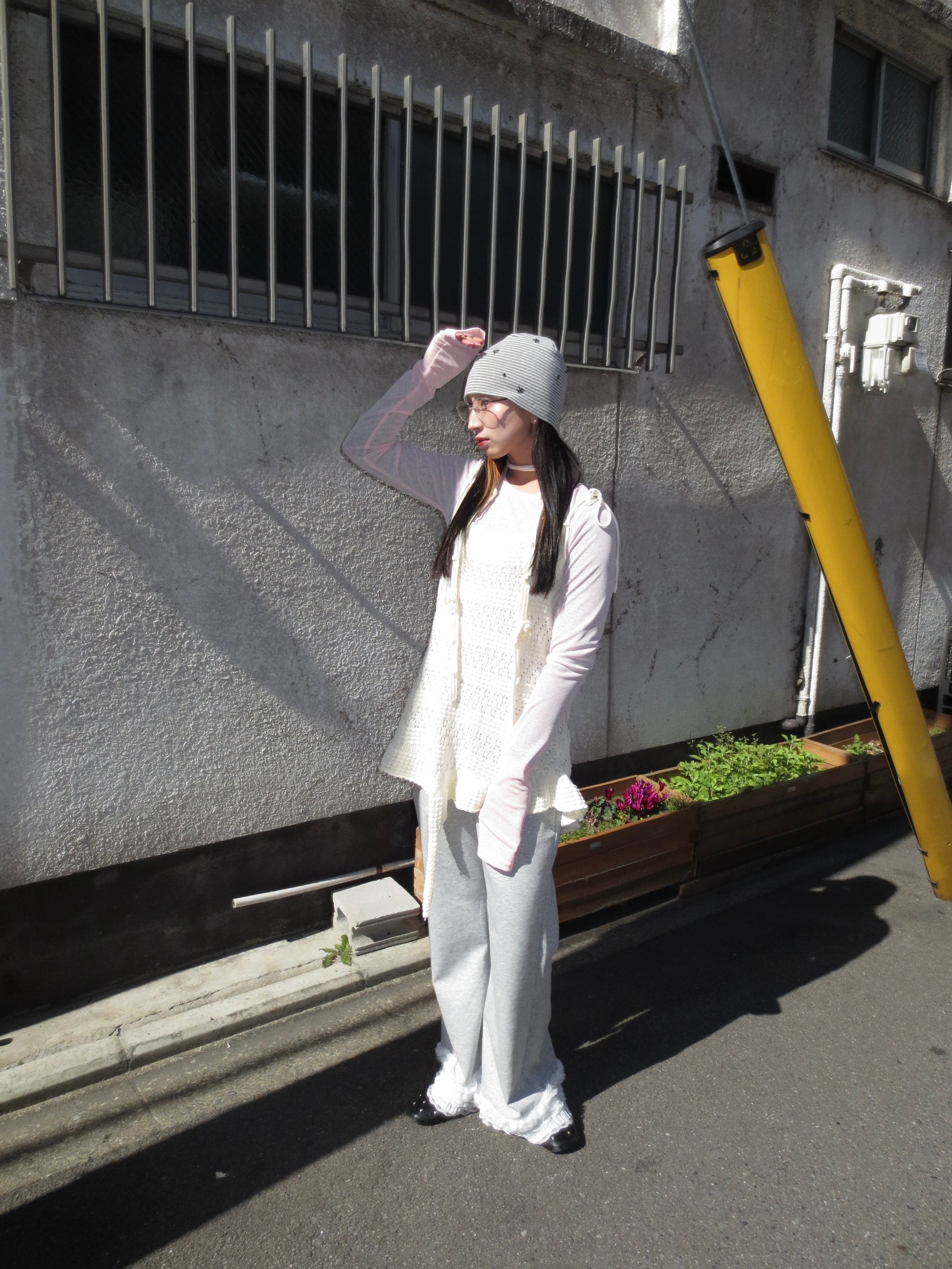 裾のフリルが柔らかなシルエットを作り、ガーリーな雰囲気を引き立てます。