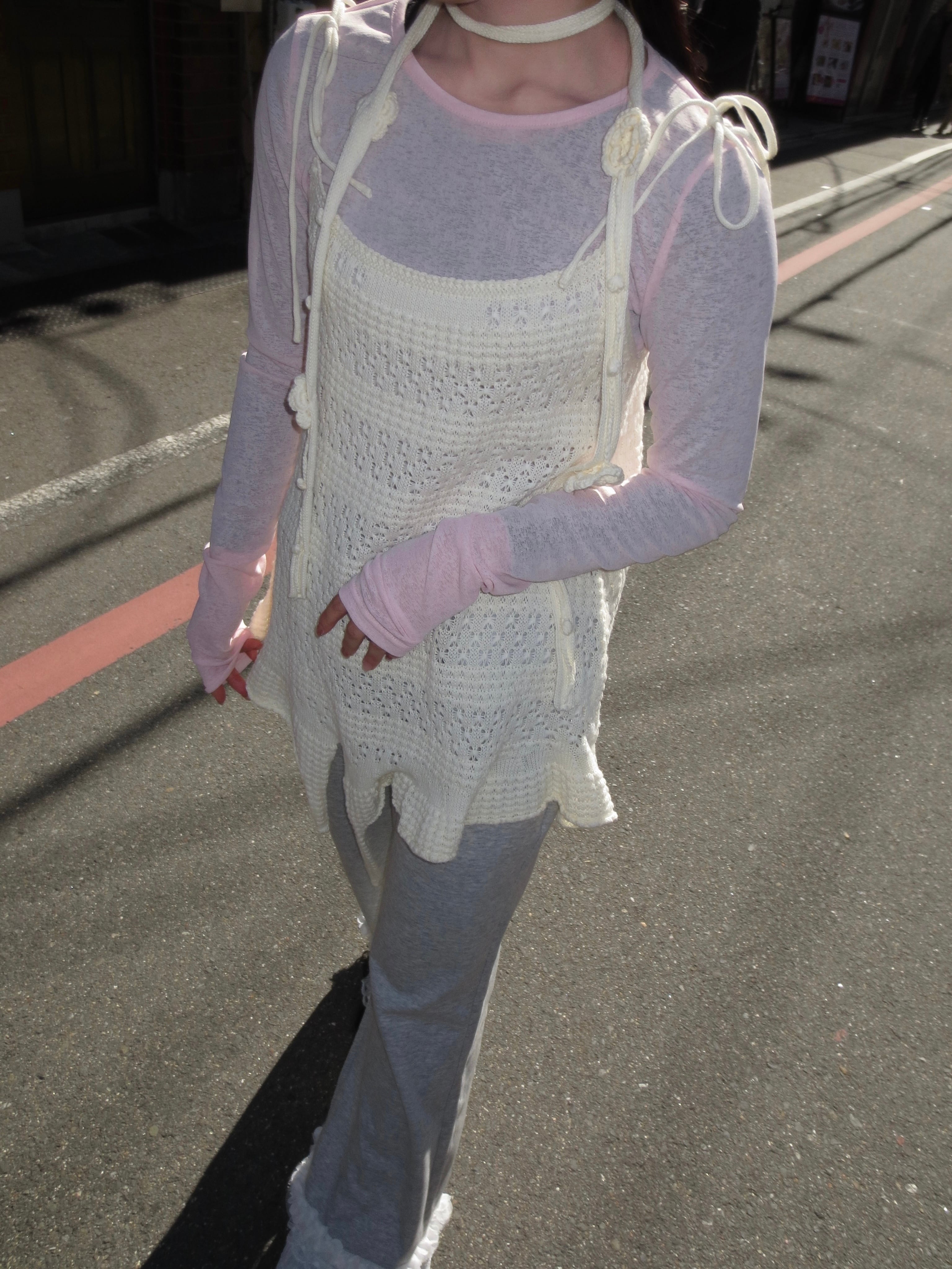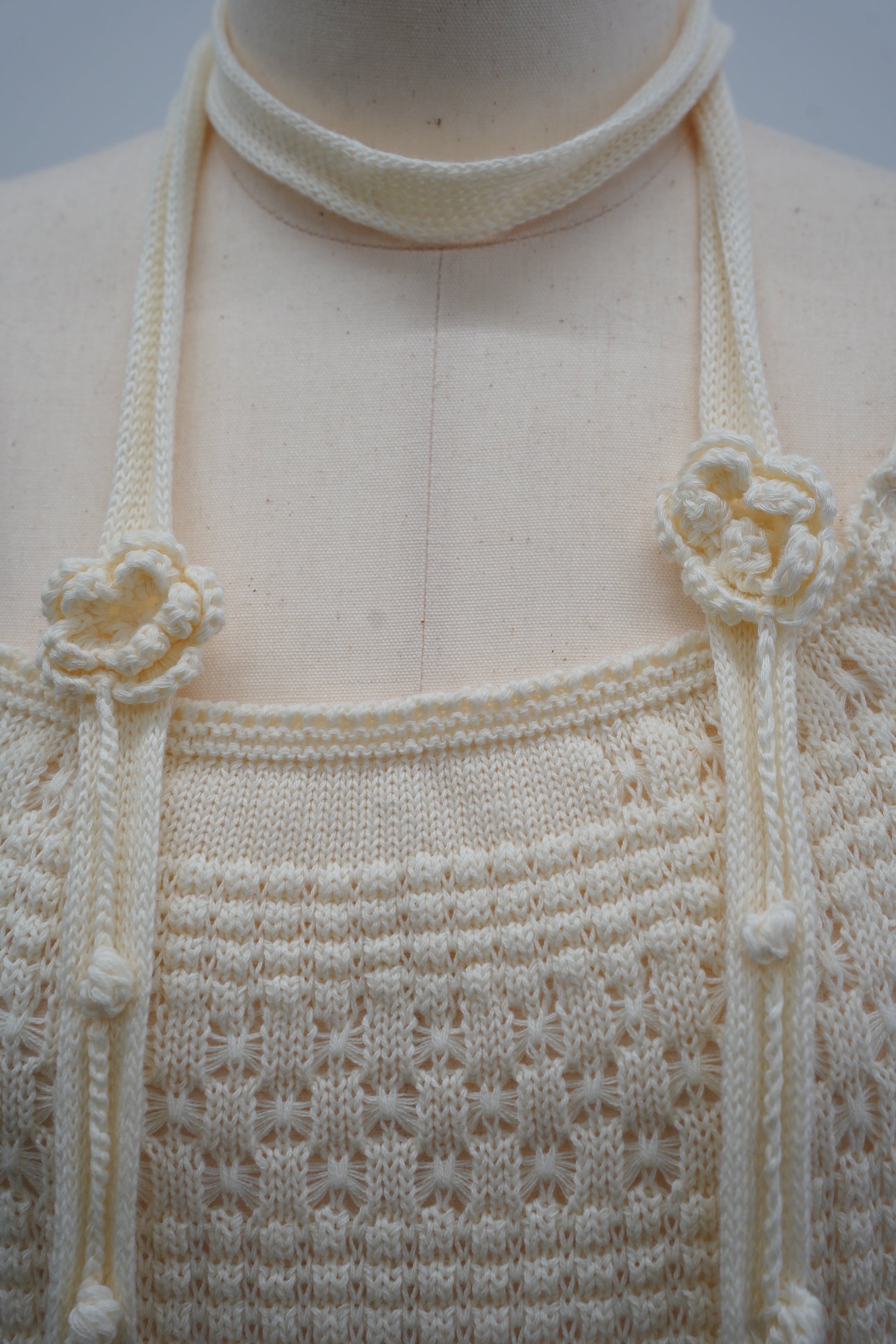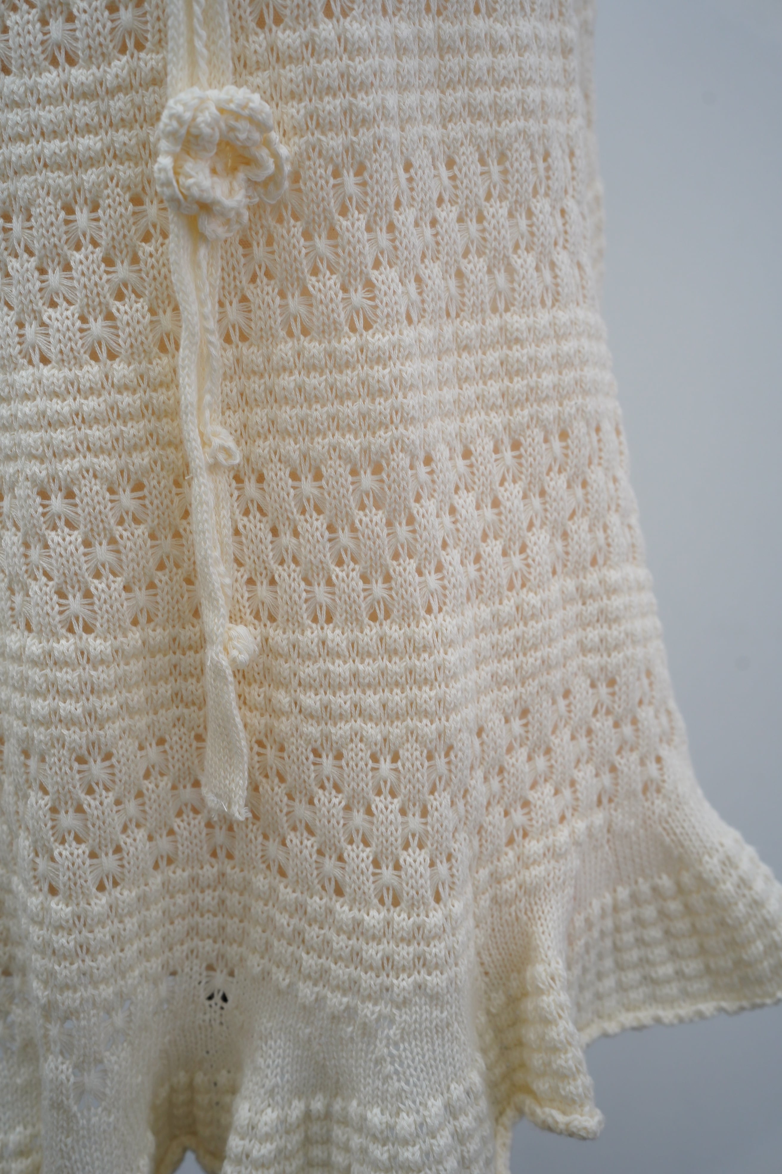 繊細な透かし編みが女性らしい印象を演出するサマーニットワンピース