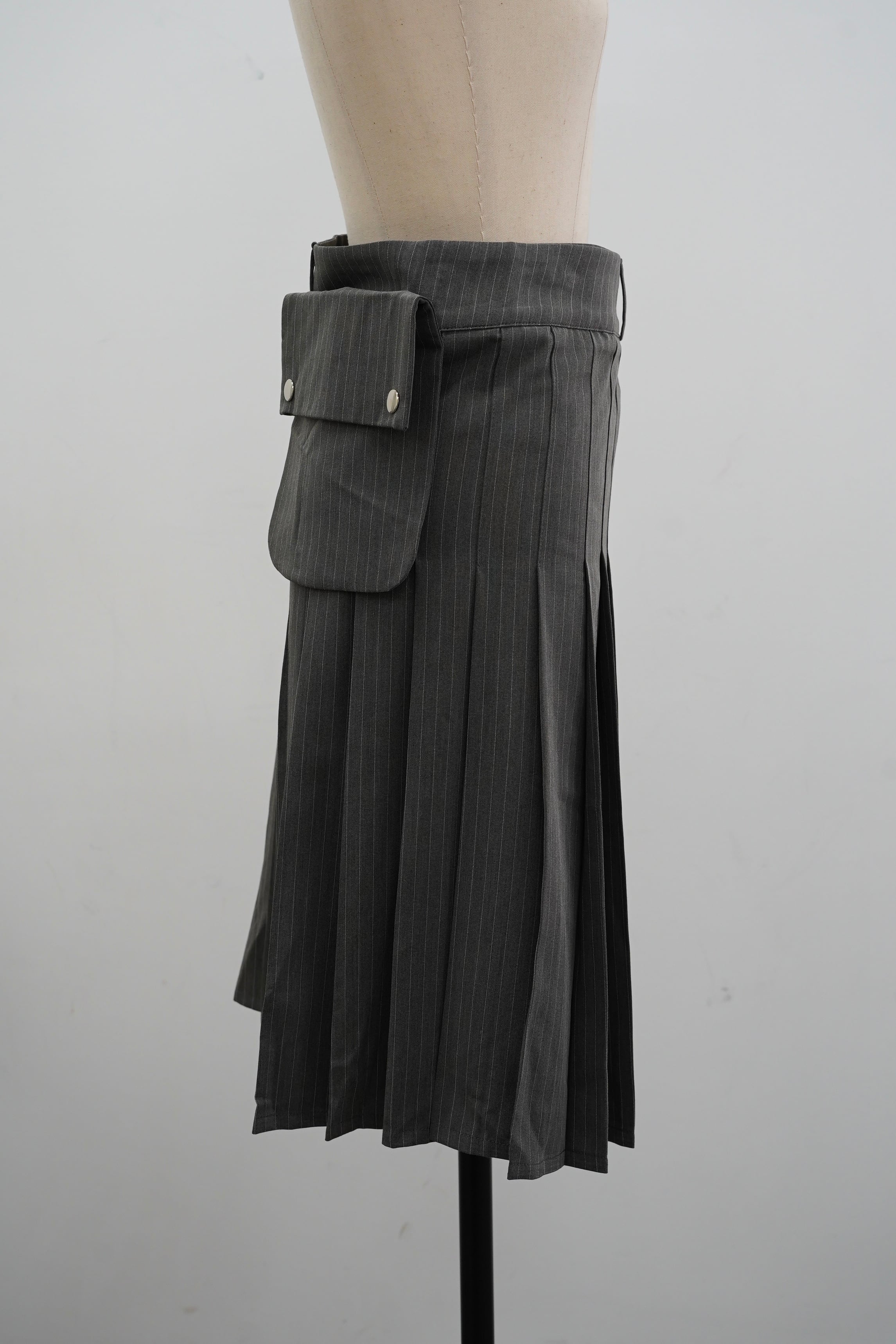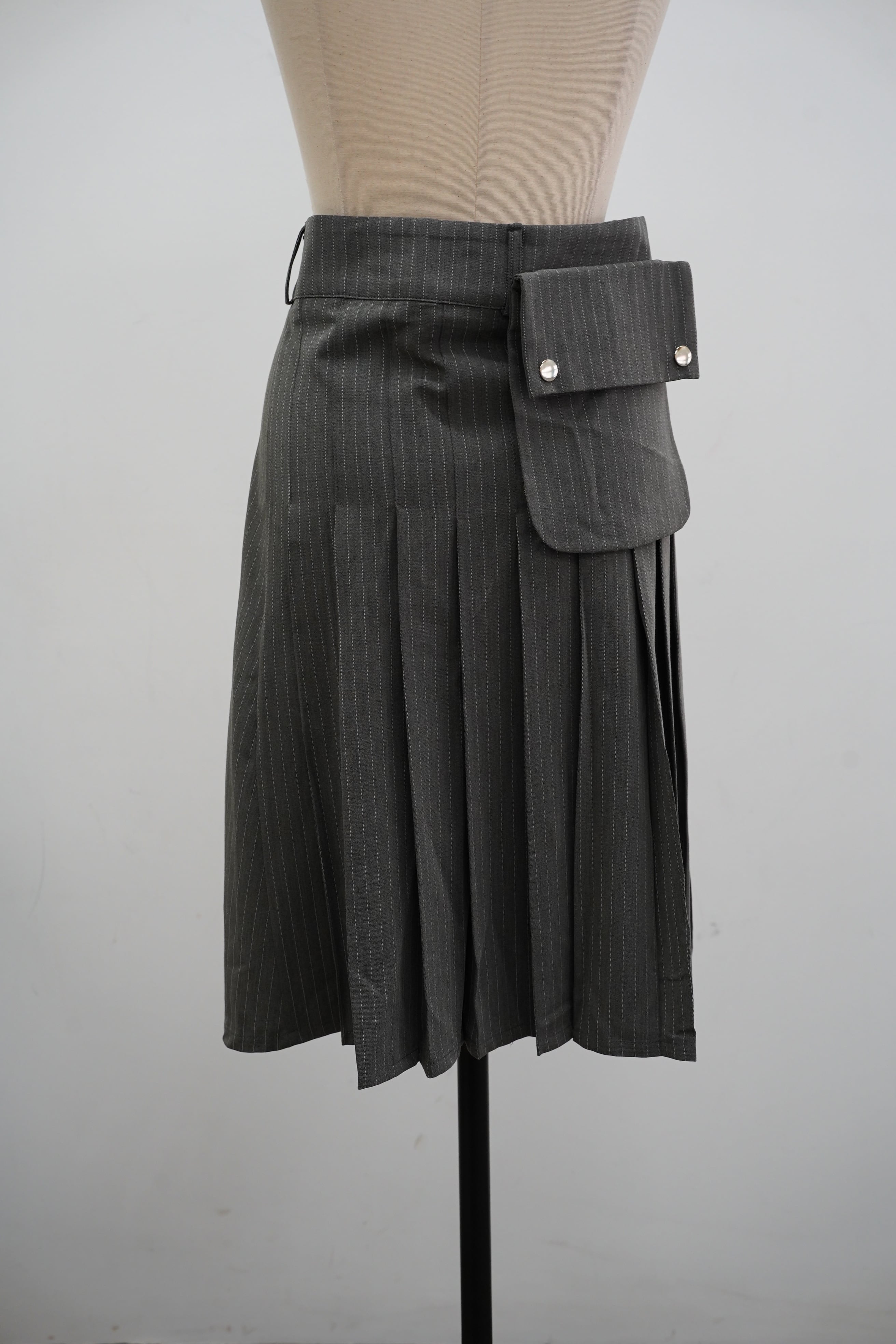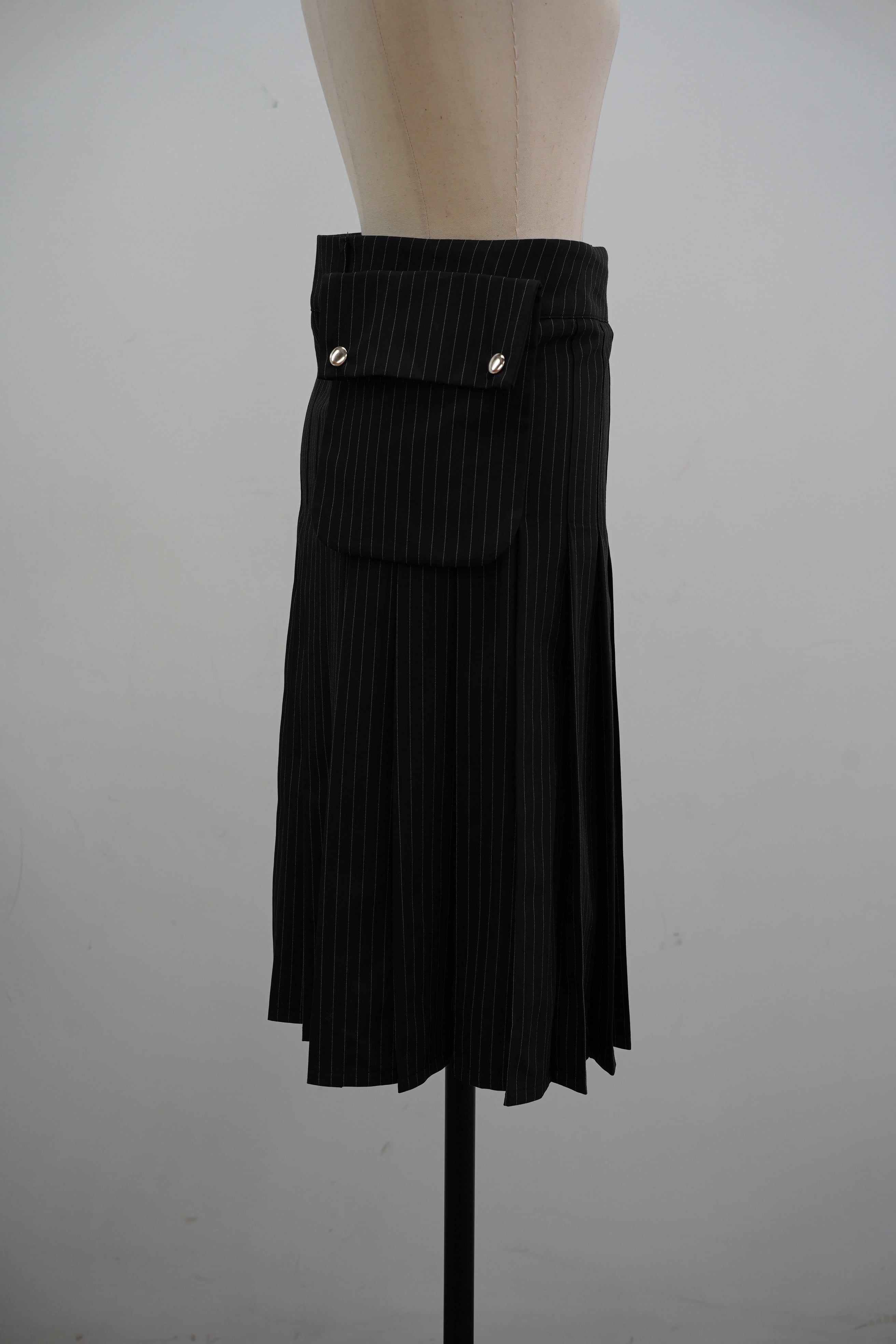 POCKET STRIPE PLEATS SKIRT