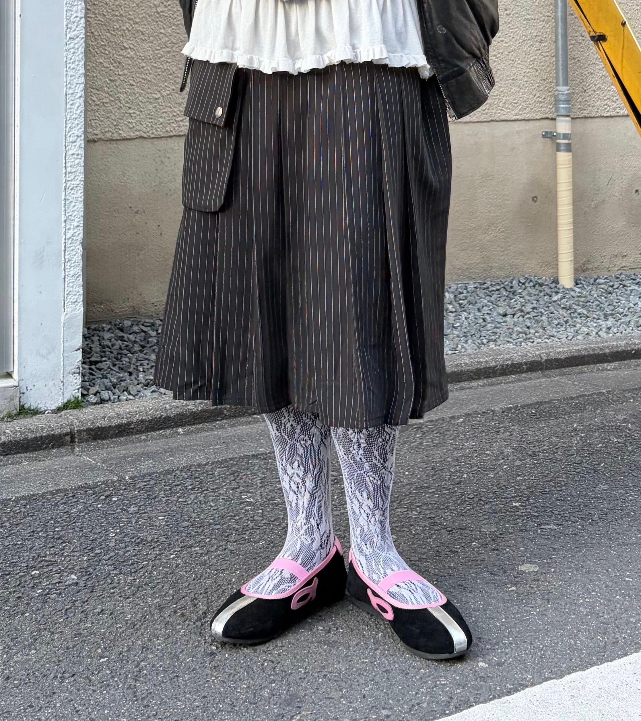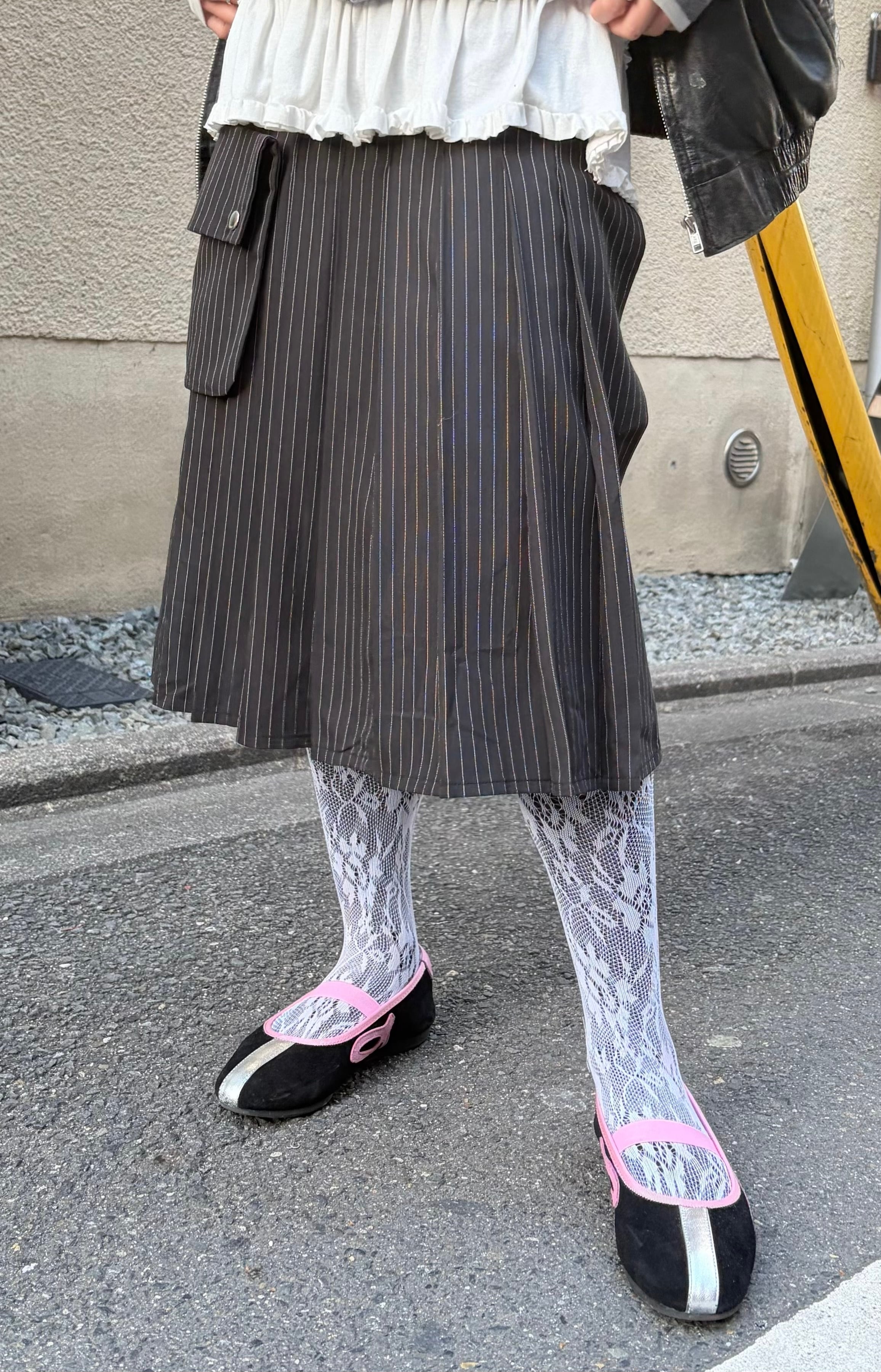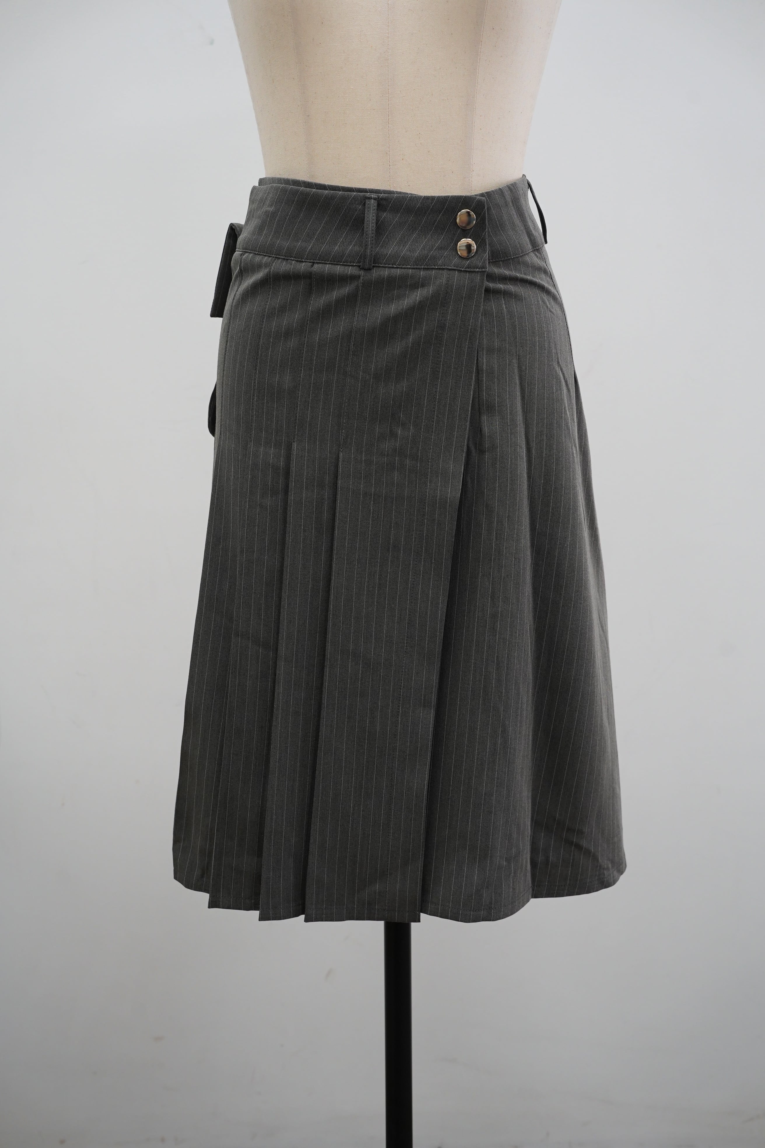 POCKET STRIPE PLEATS SKIRT