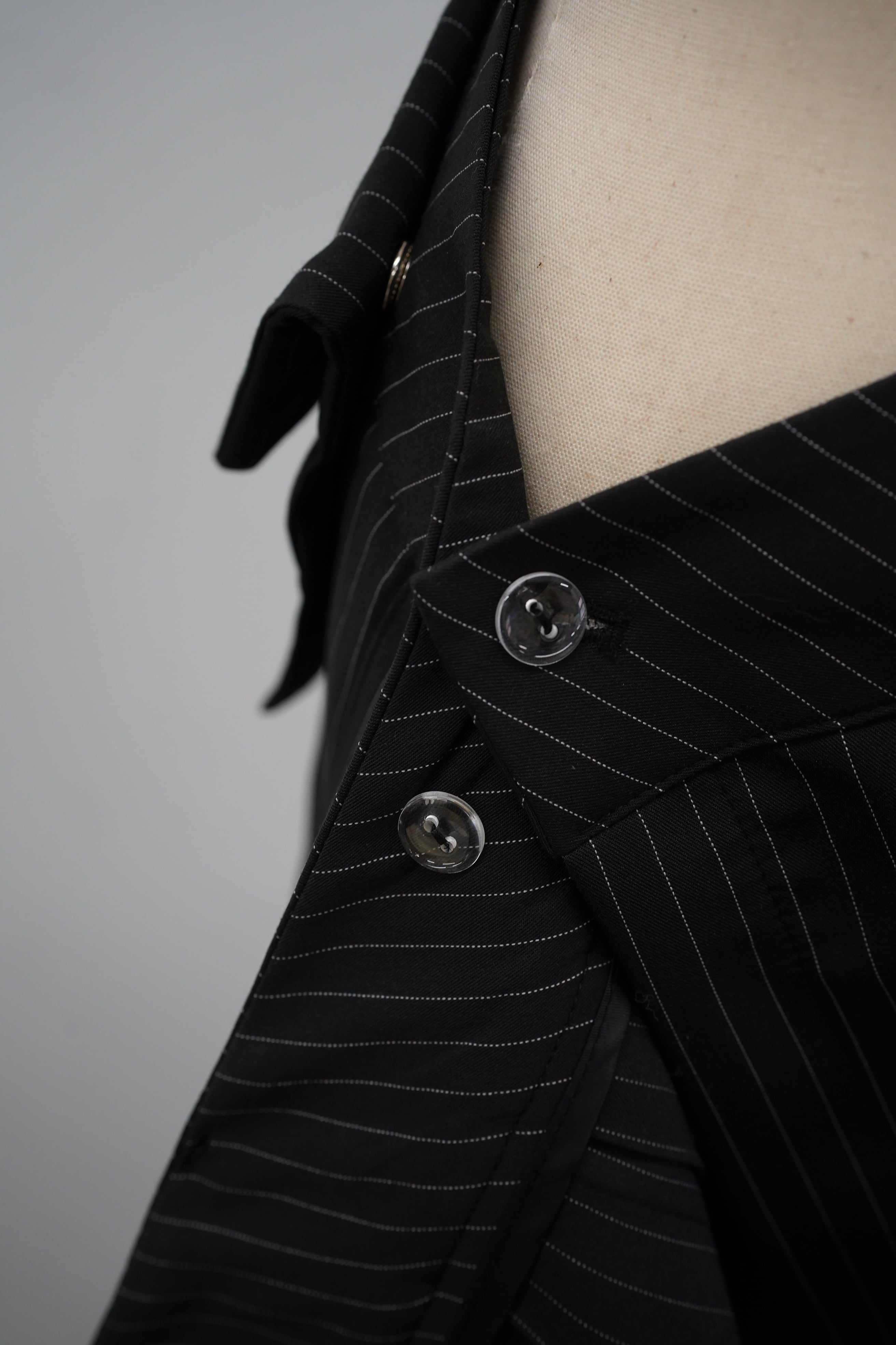 フロントのフラップポケットとメタルボタンが、シンプルな中にアクセントをプラスします。