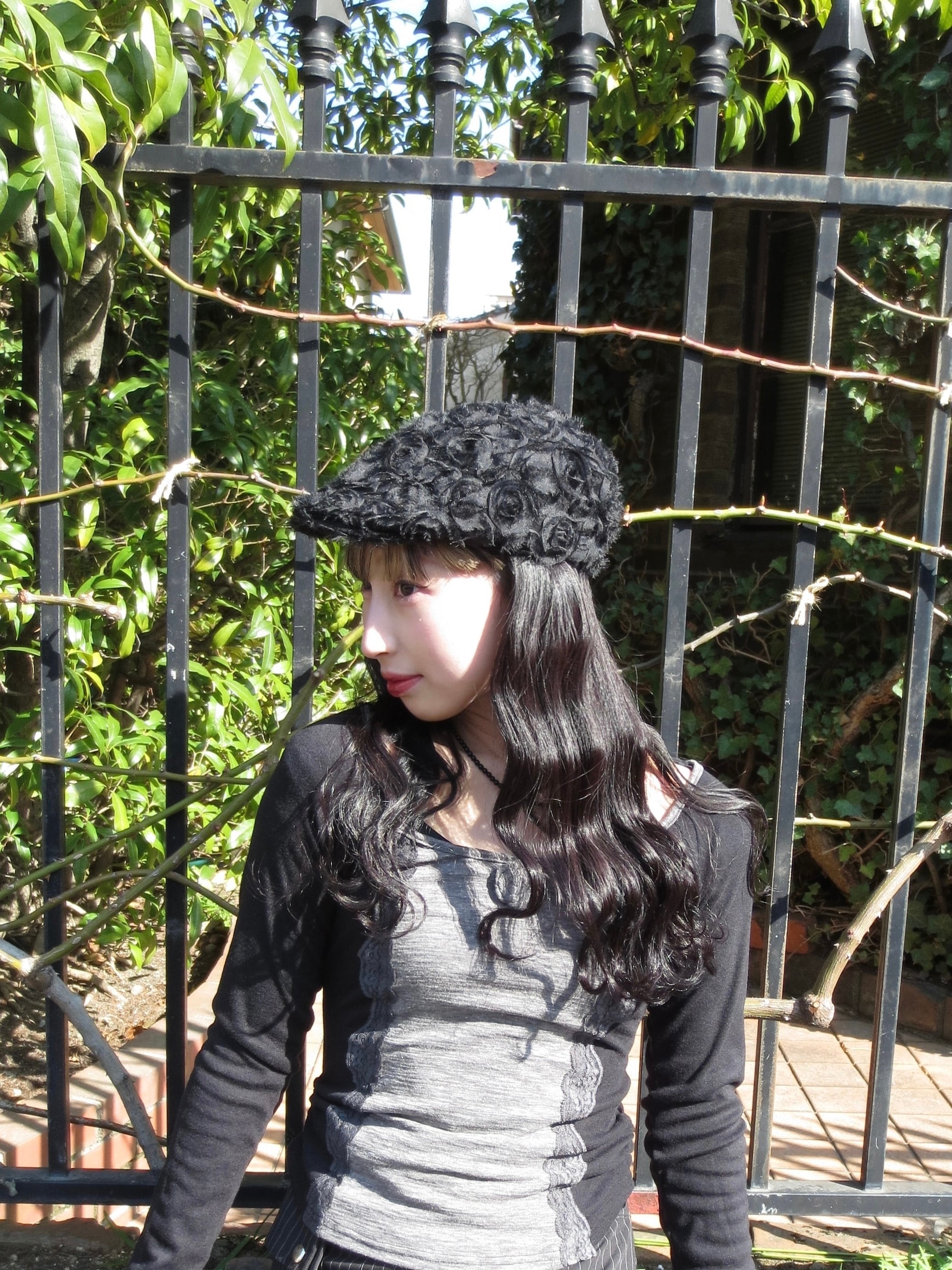 ローズデザインが可愛らしい印象を与えるハンチング。