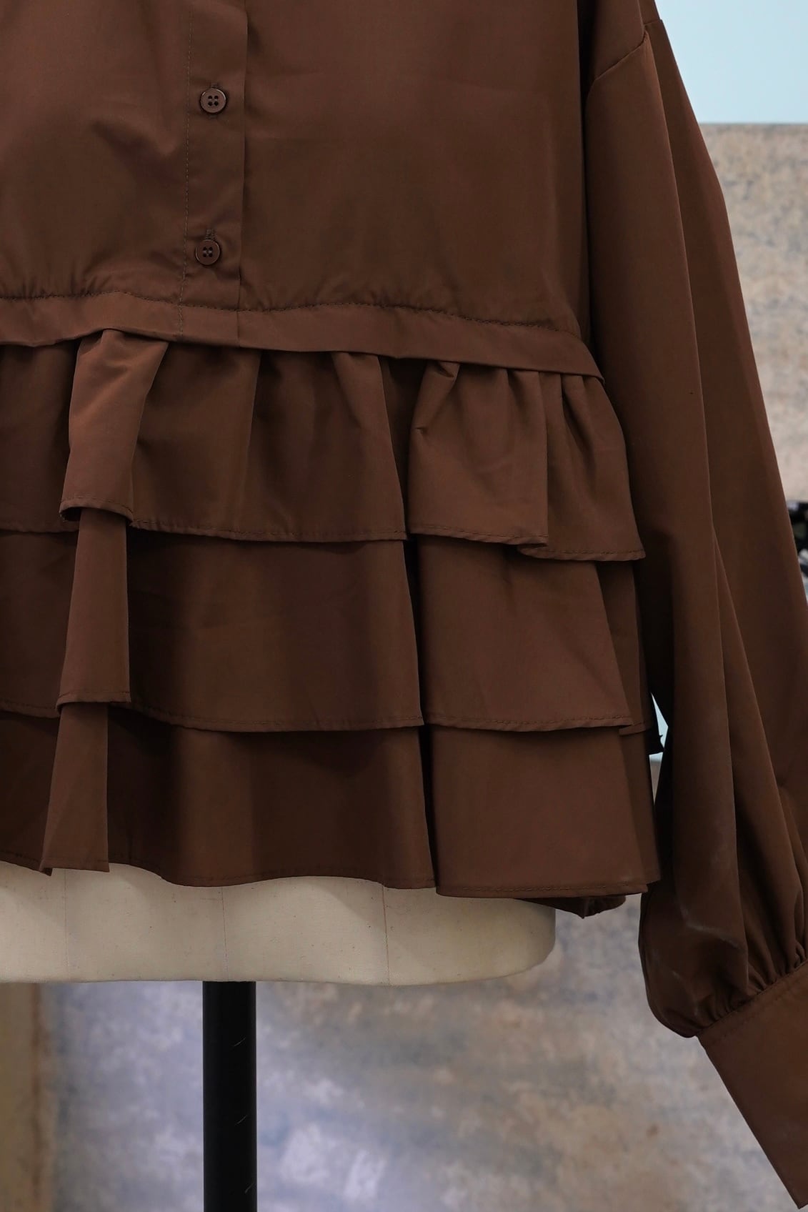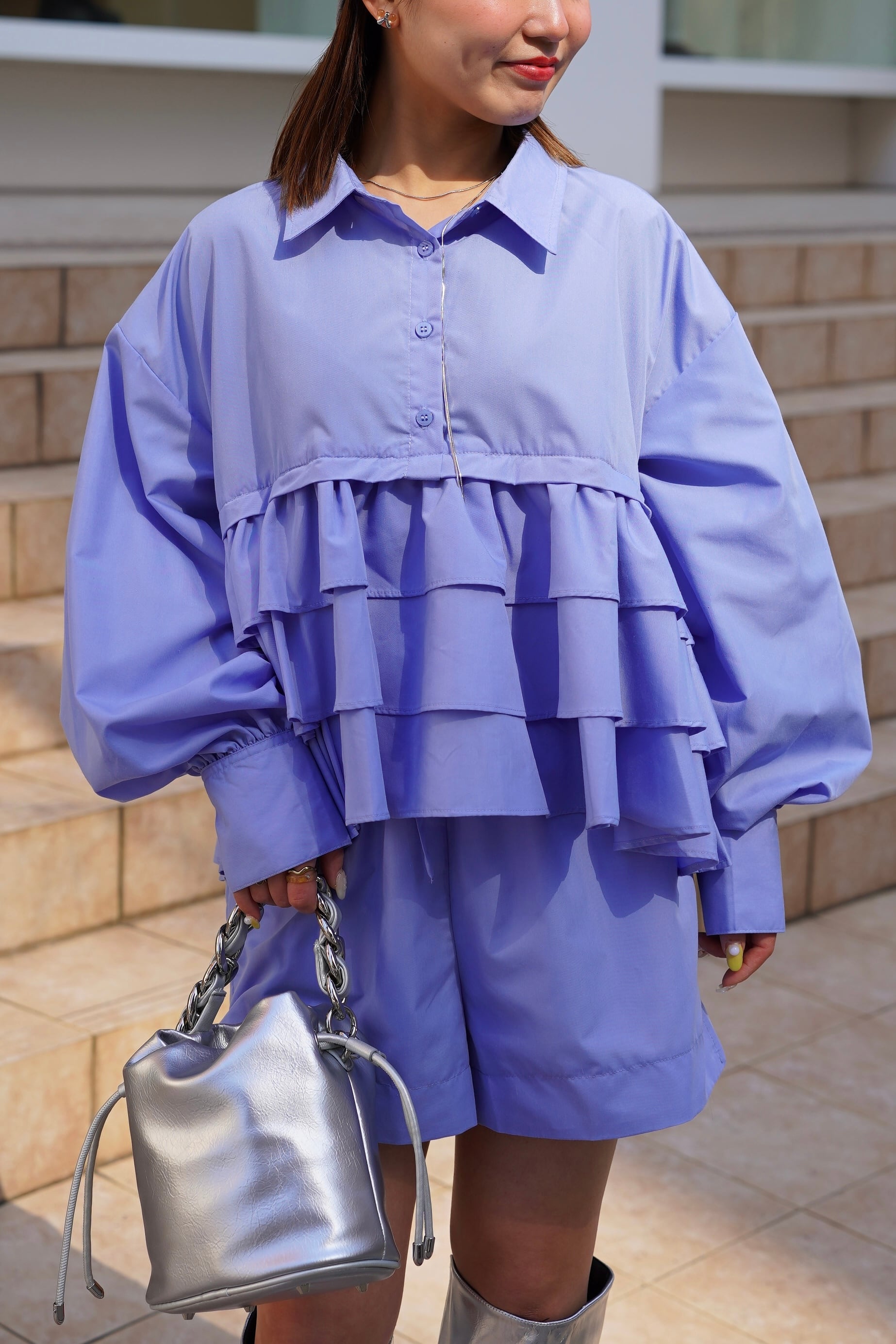 3DAN FRIFRI LONG SLEEVE SHIRTは、華やかさを演出する3段のフリルが施されたシャツです。