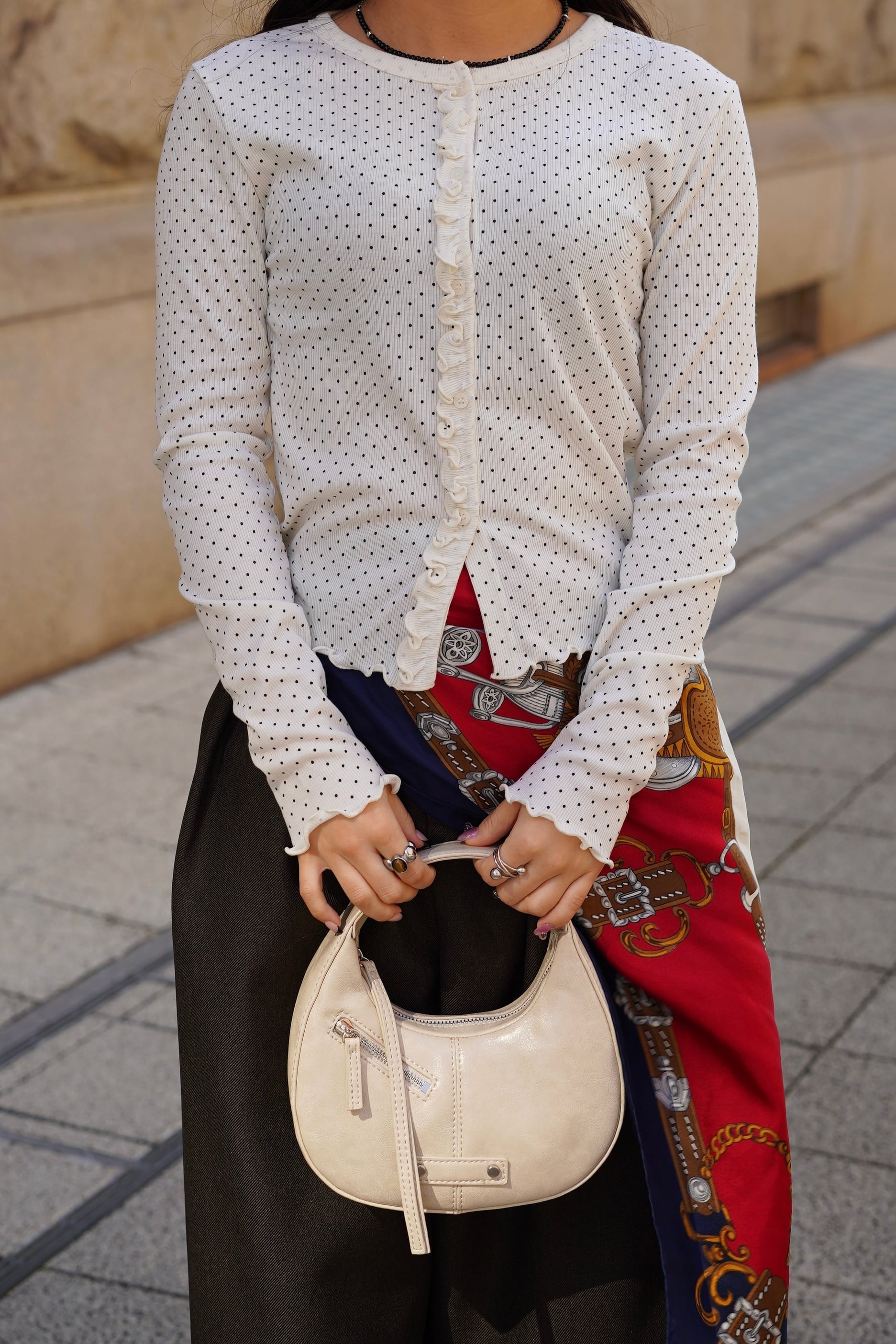 フレッシュな印象を与えるHALF MOON TOTE BAGは、小さな半月形が可愛らしさを引き立て、どんなスタイルにもぴったりフィットします。