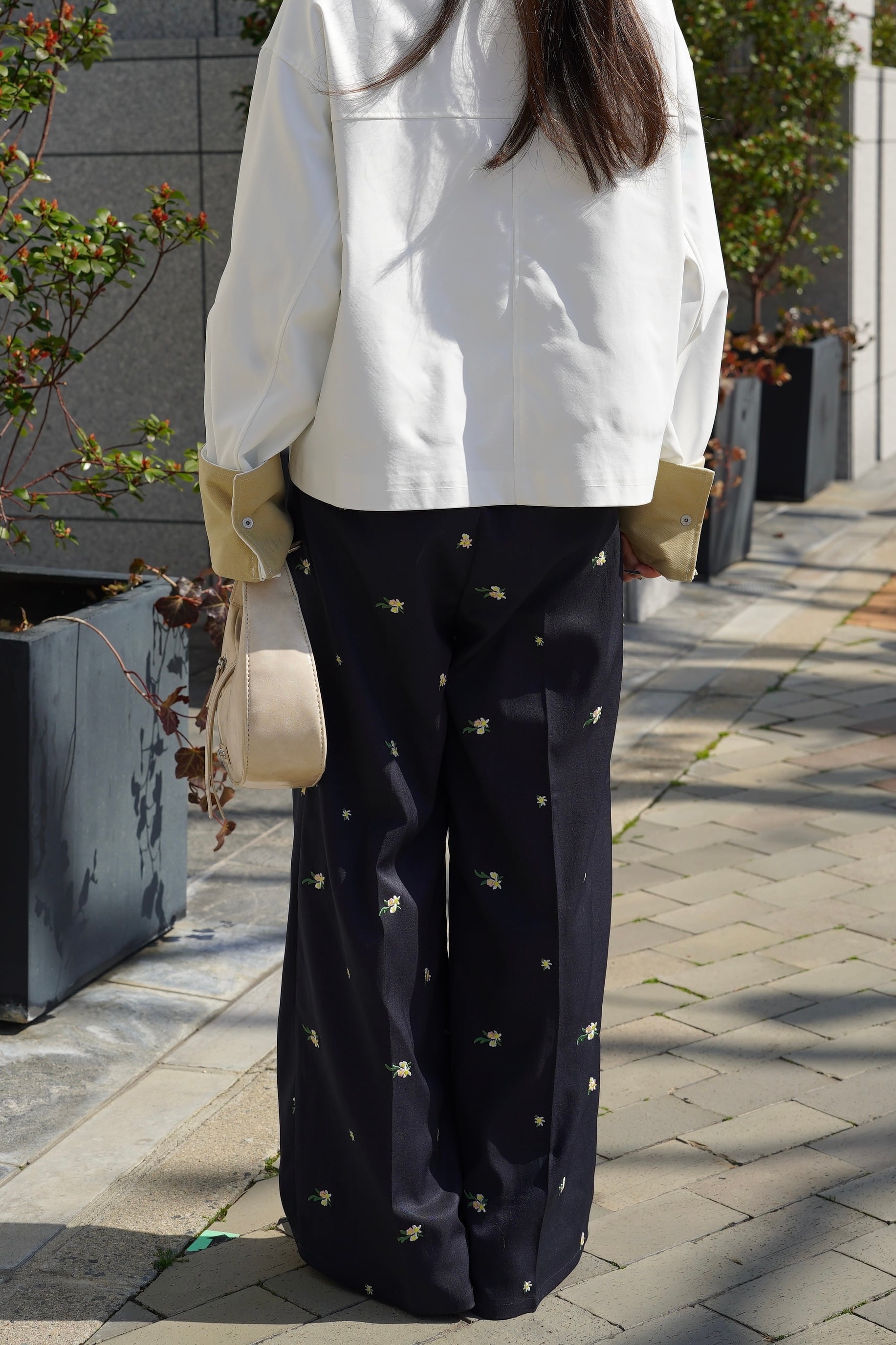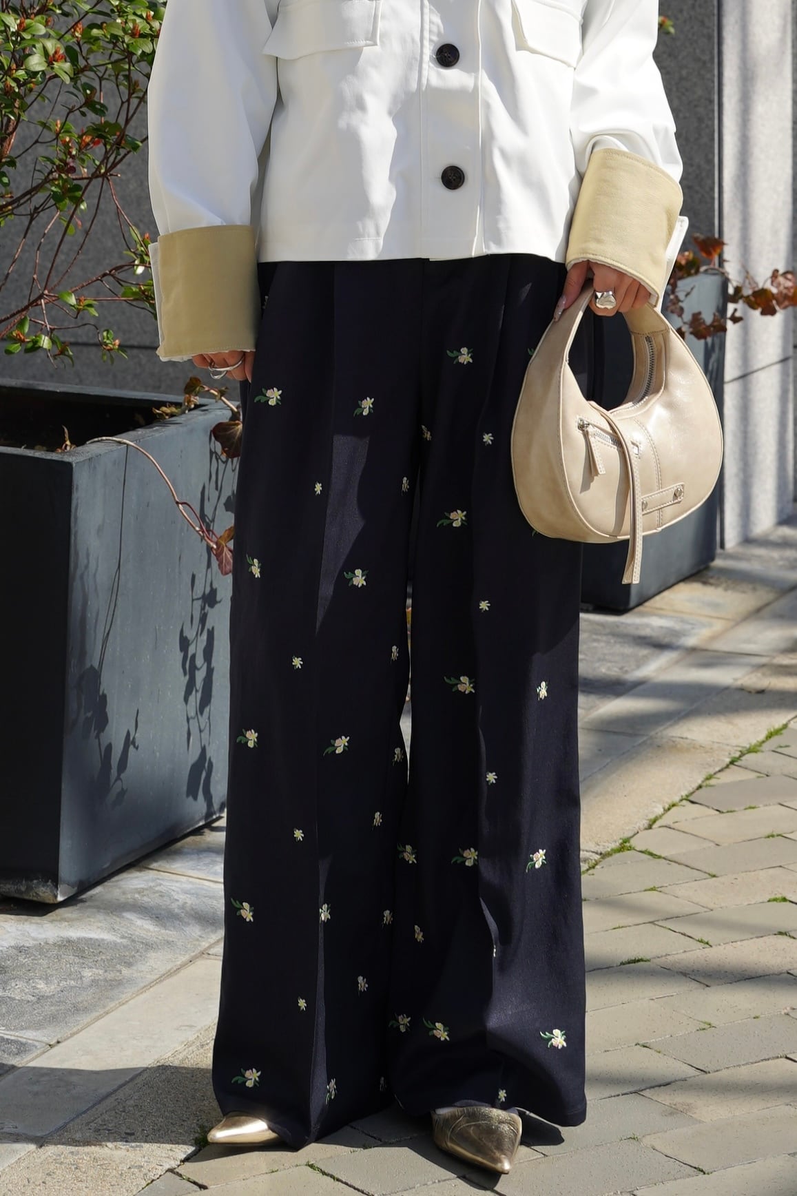 お花の刺繍が愛らしいKOBANA SISYU PANTSは、優雅でありながらも気軽に着こなせる一枚です。