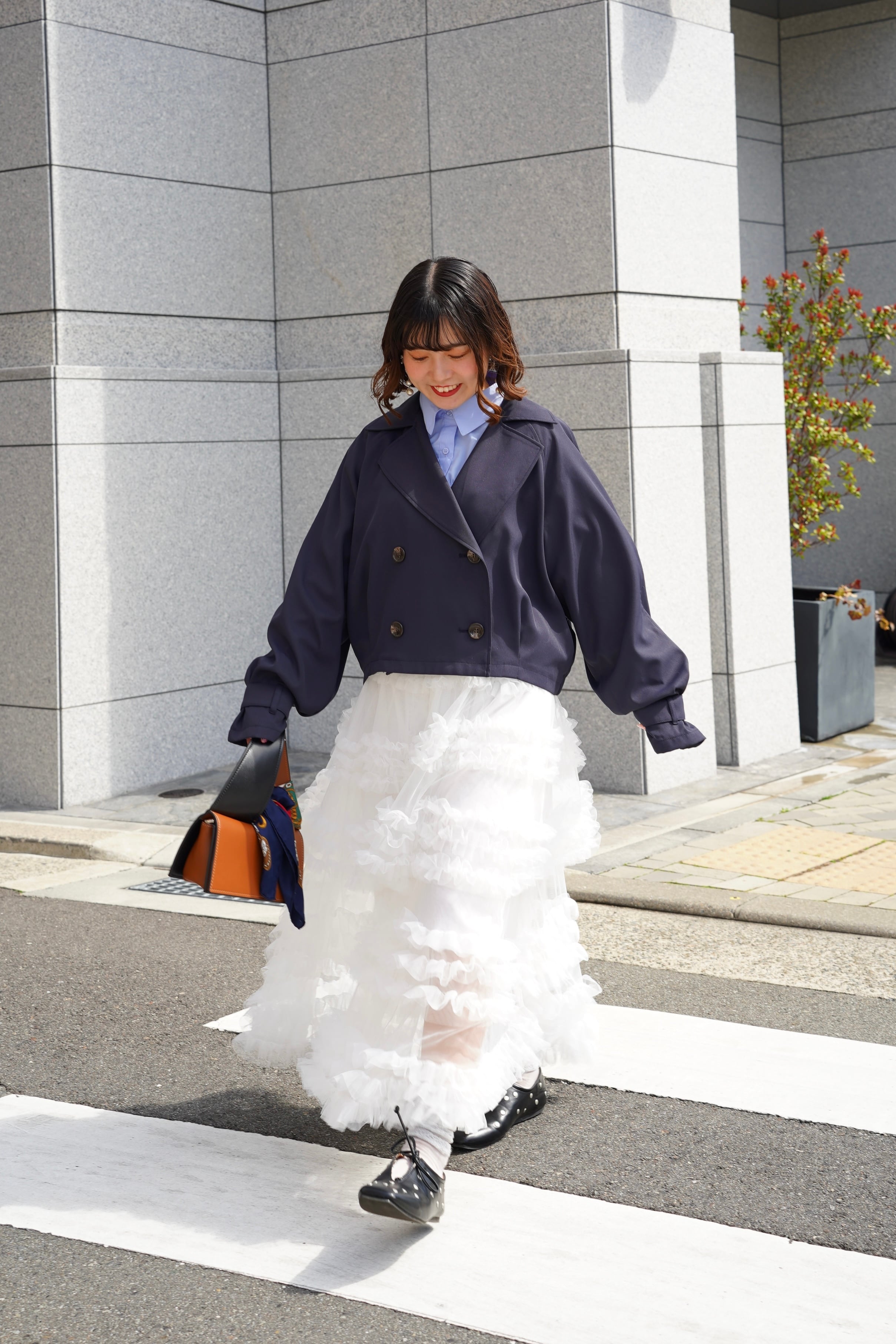 シンプルなトップスやブラウスと合わせることで、様々なシーンでの洗練されたコーディネートを楽しむことができます。