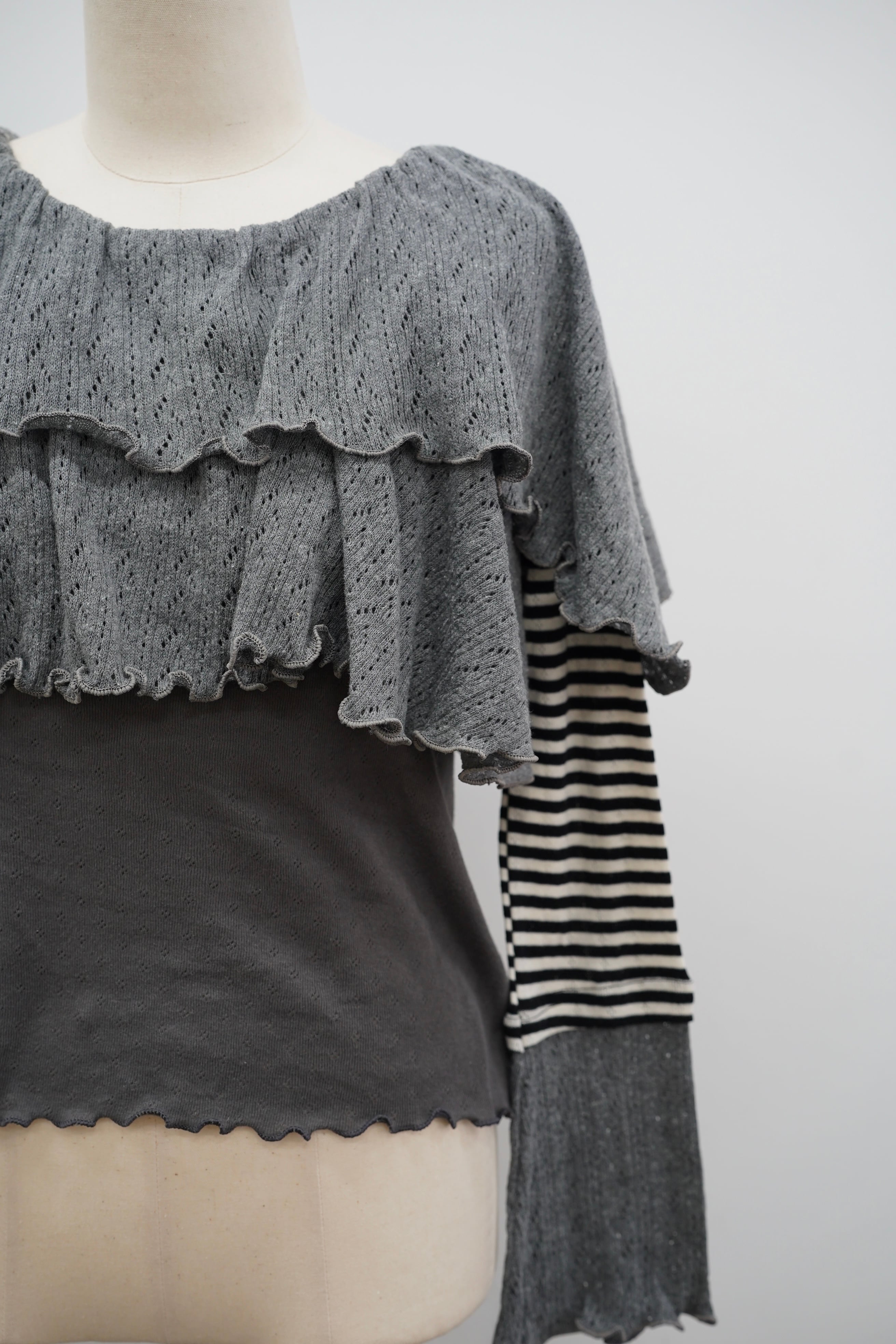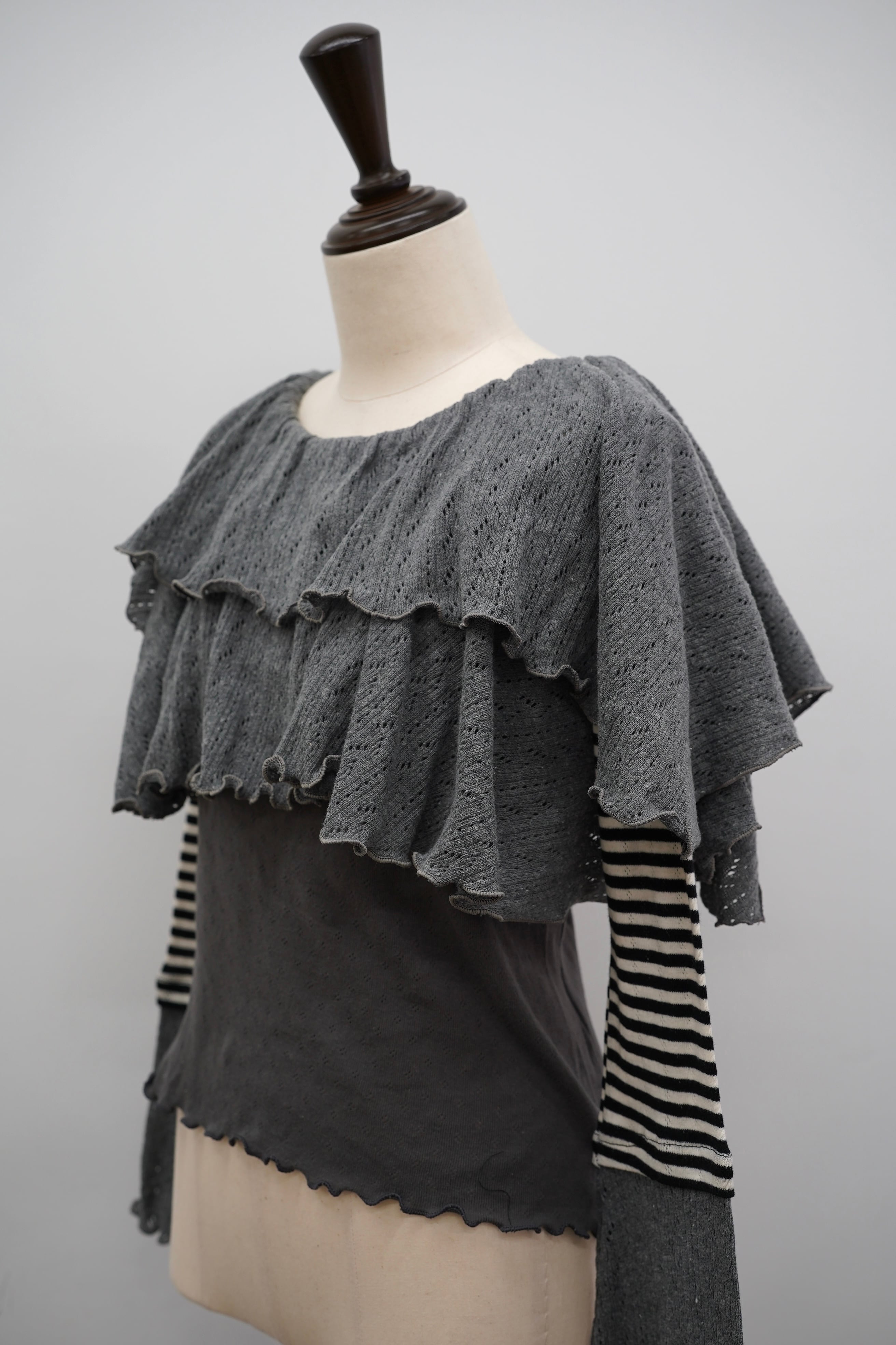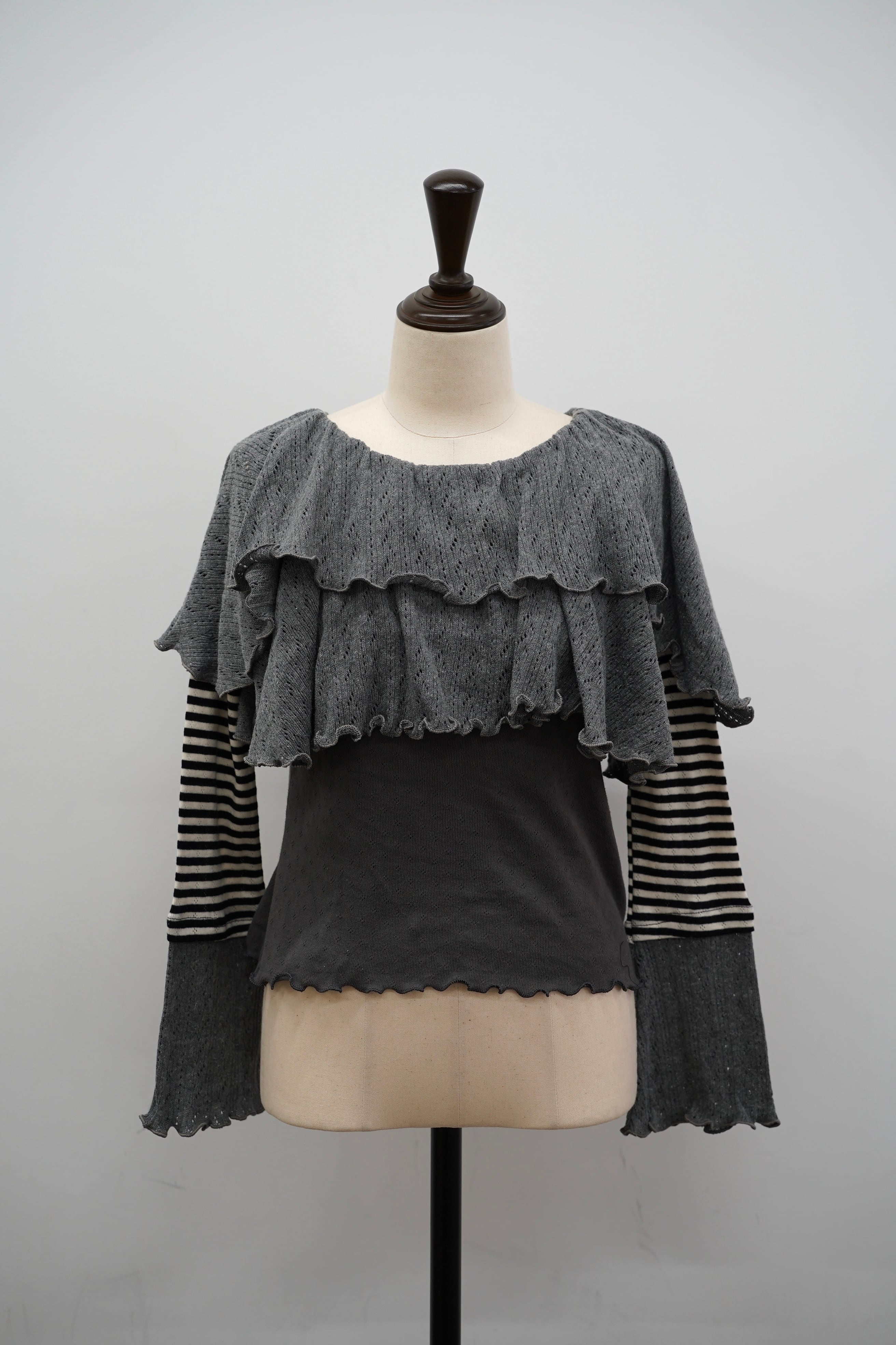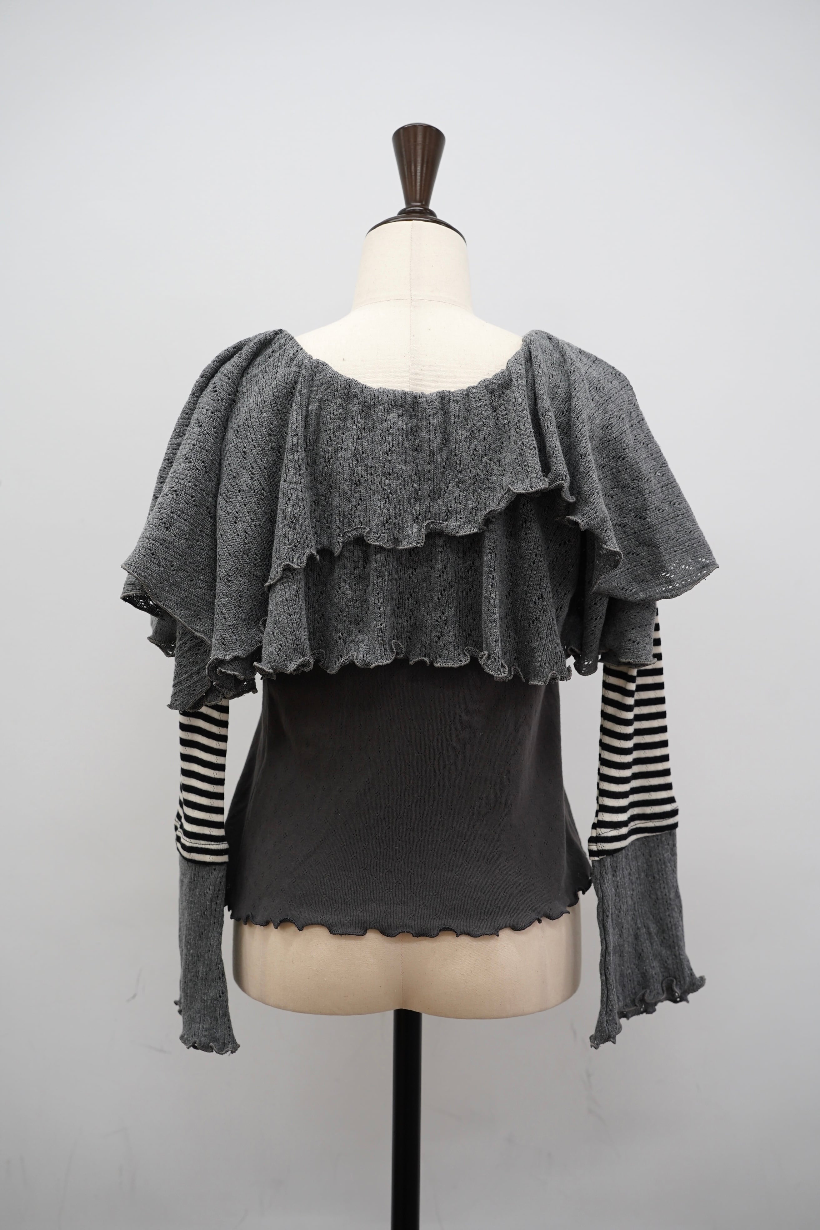 ボーダースリーブとのドッキングデザインで、1枚でトレンド感のあるスタイリングが完成。