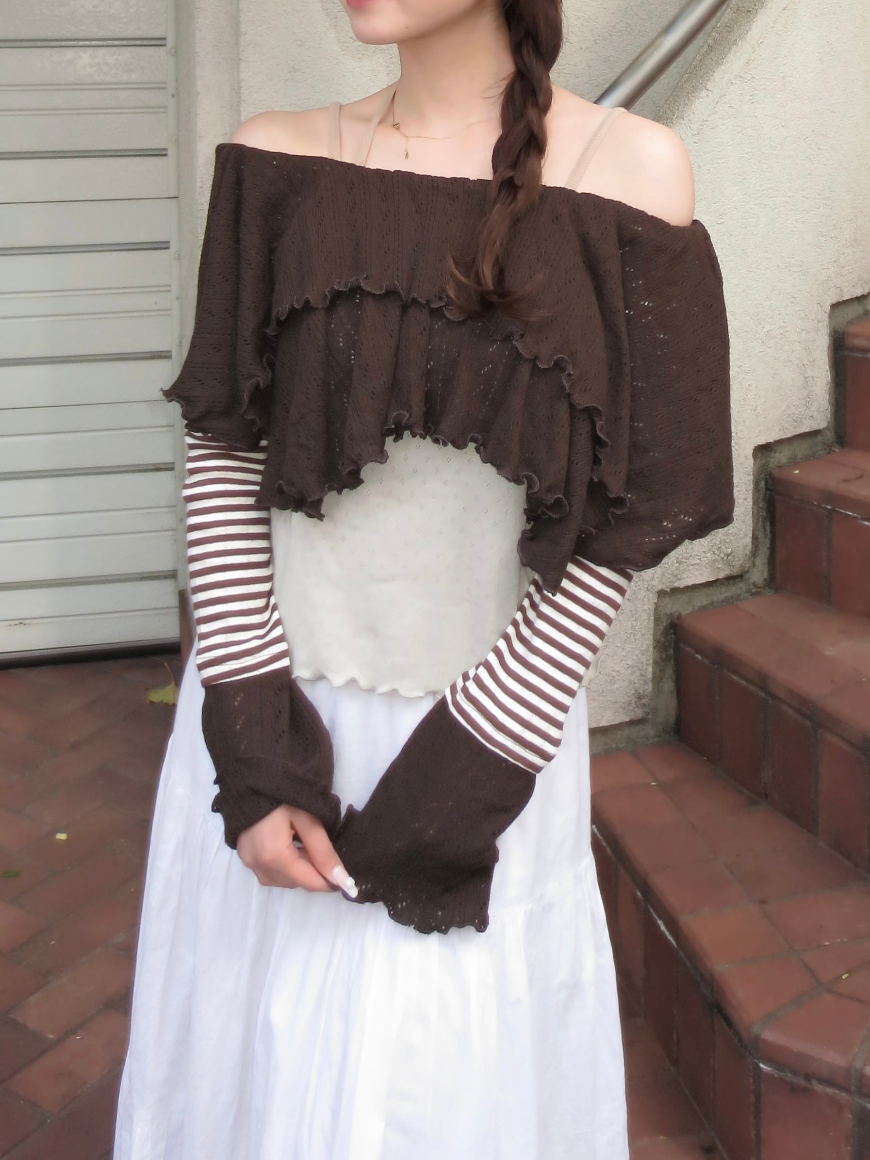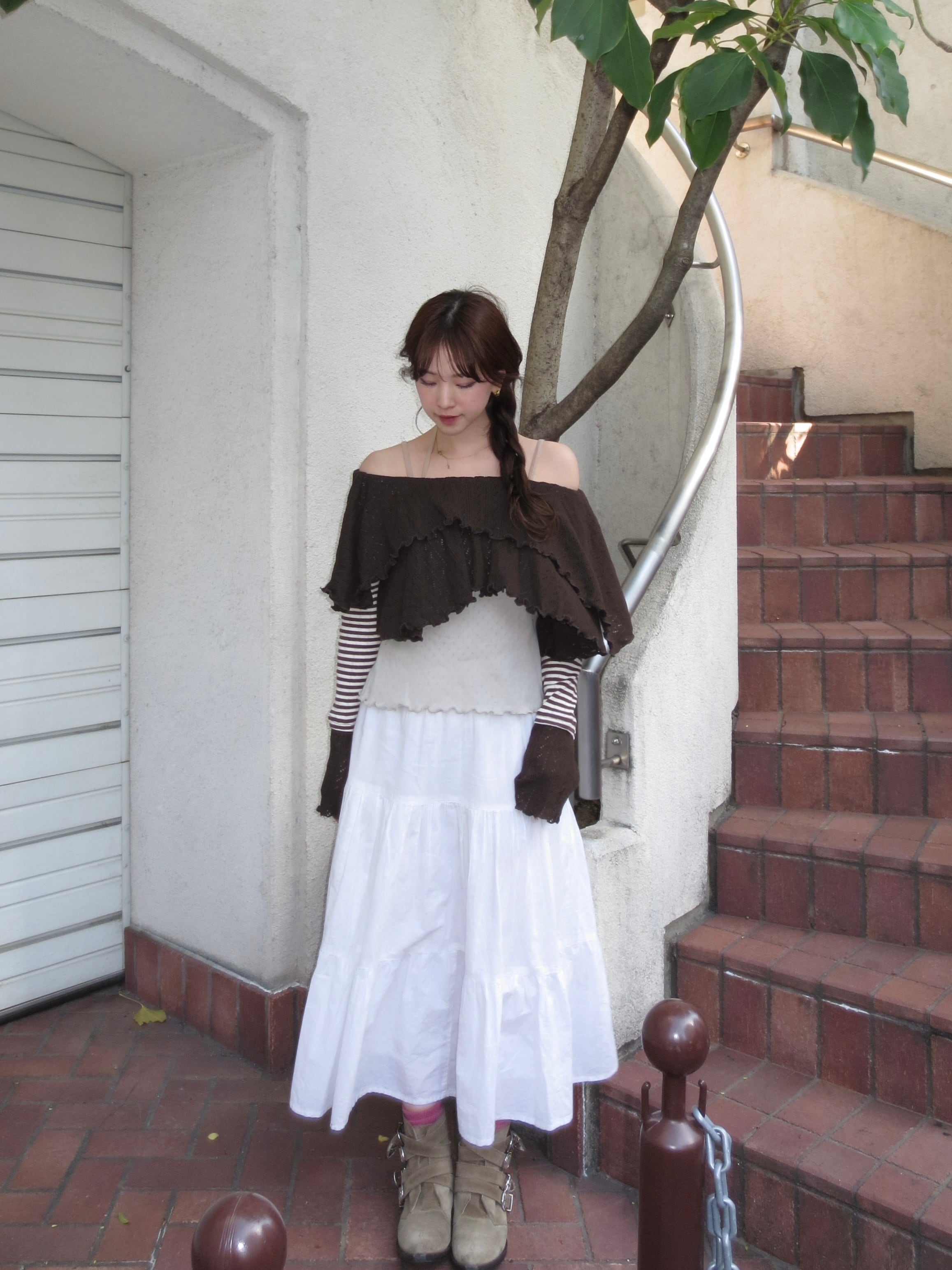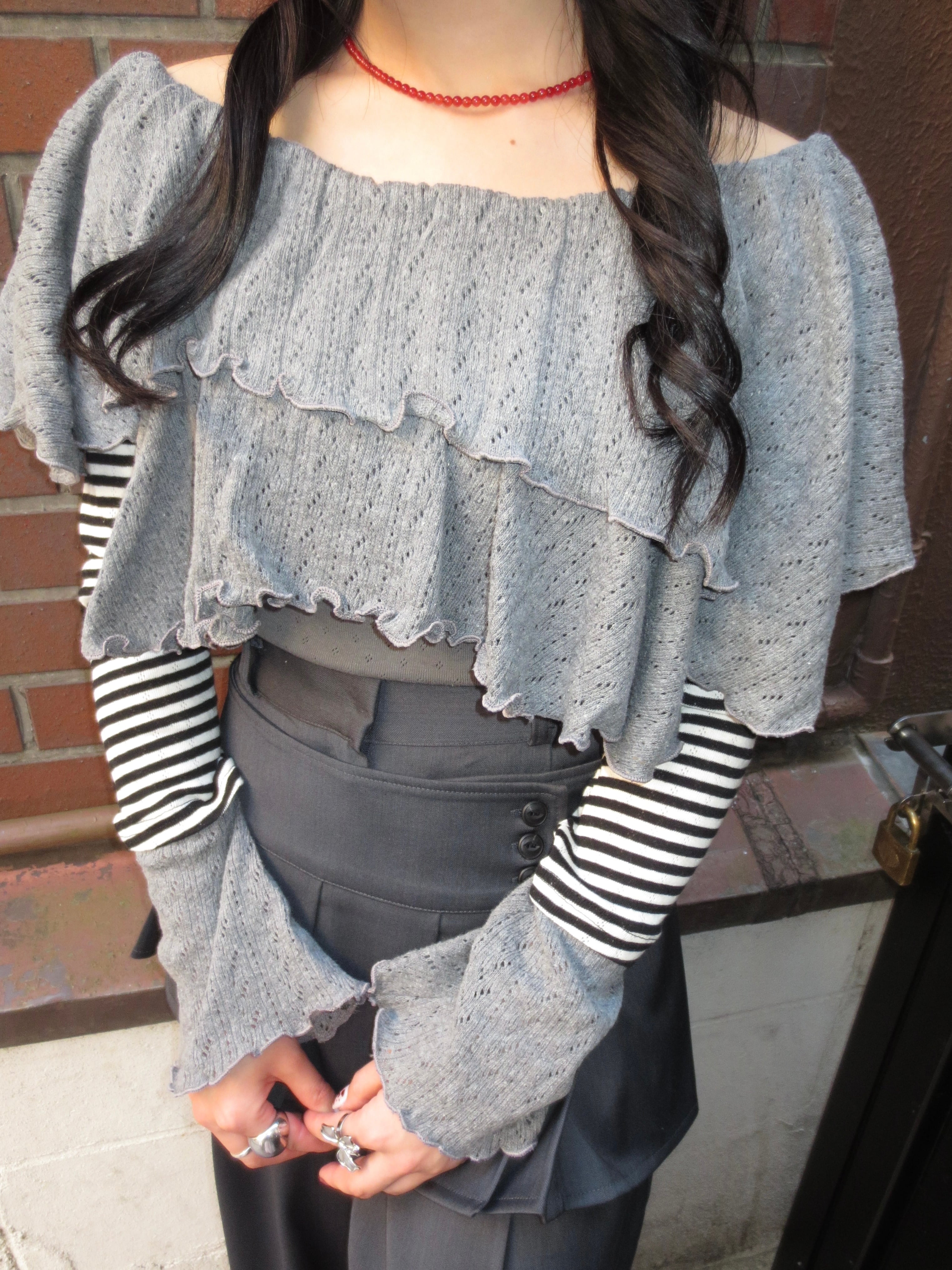 フリルディテールが女性らしさをプラスしつつ、甘すぎない絶妙バランスに。