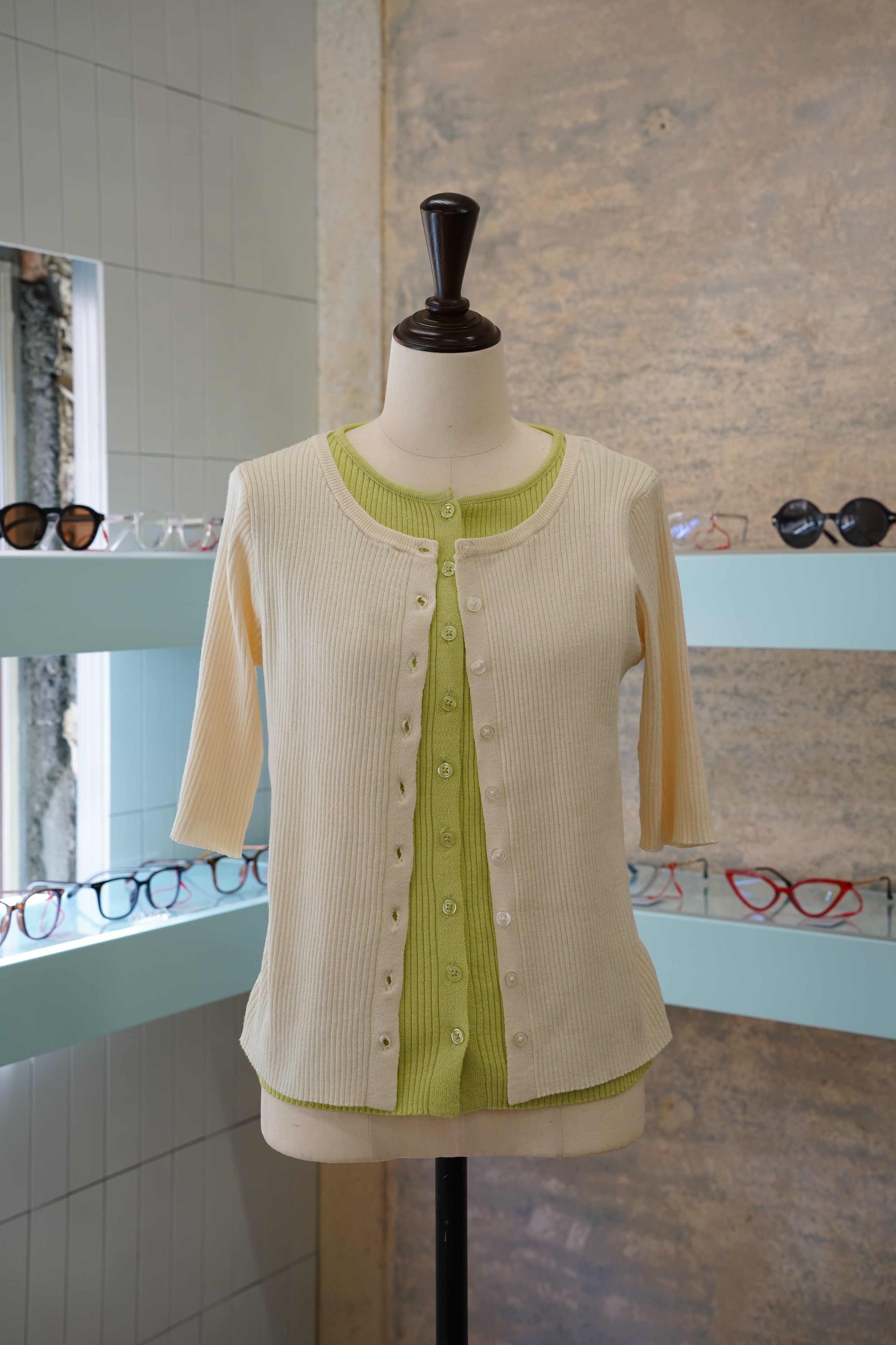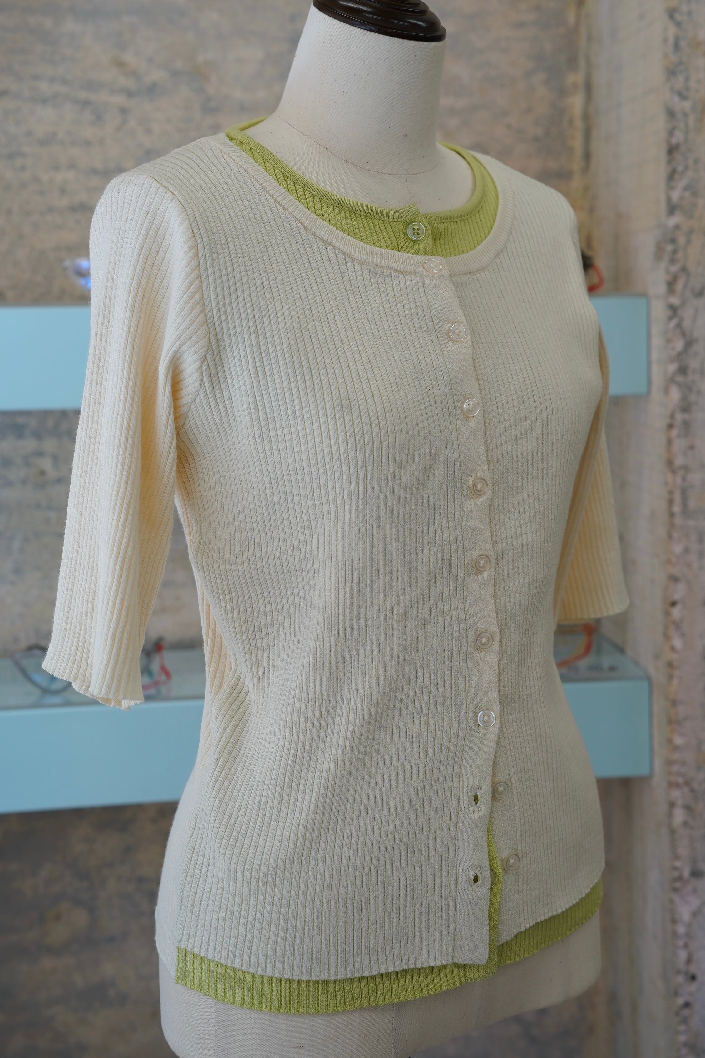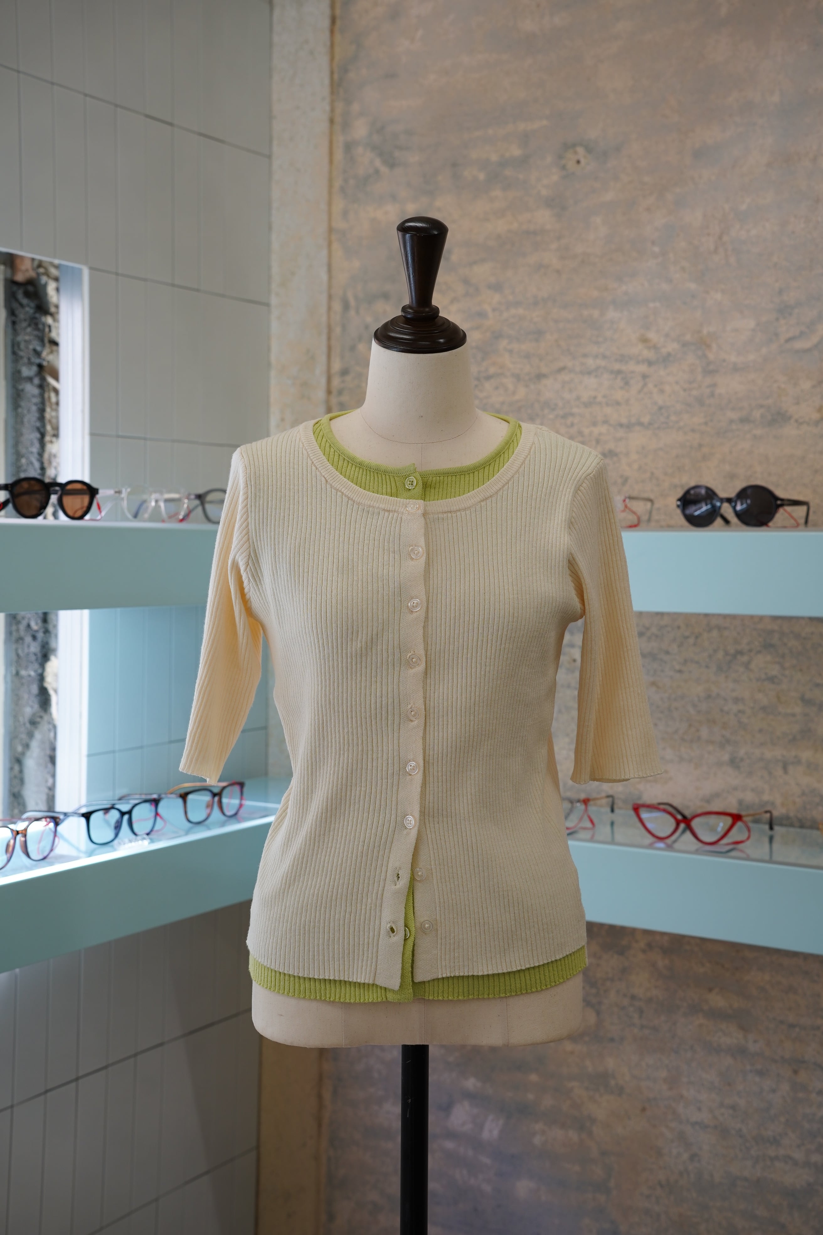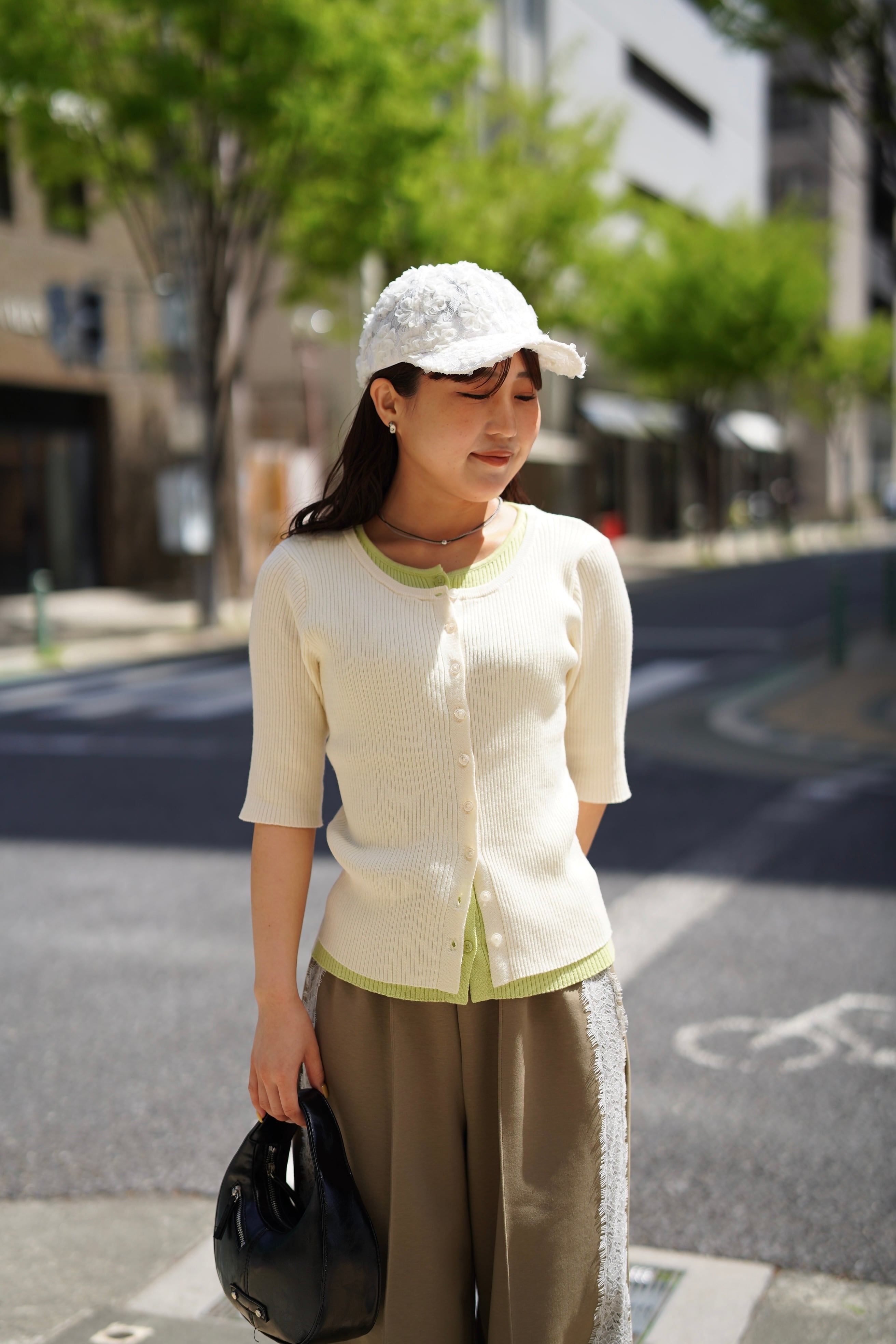 『F.LAYRED HALF SLEEVE CARDIGAN』は、レイヤードデザインが特徴的な半袖カーディガンです。