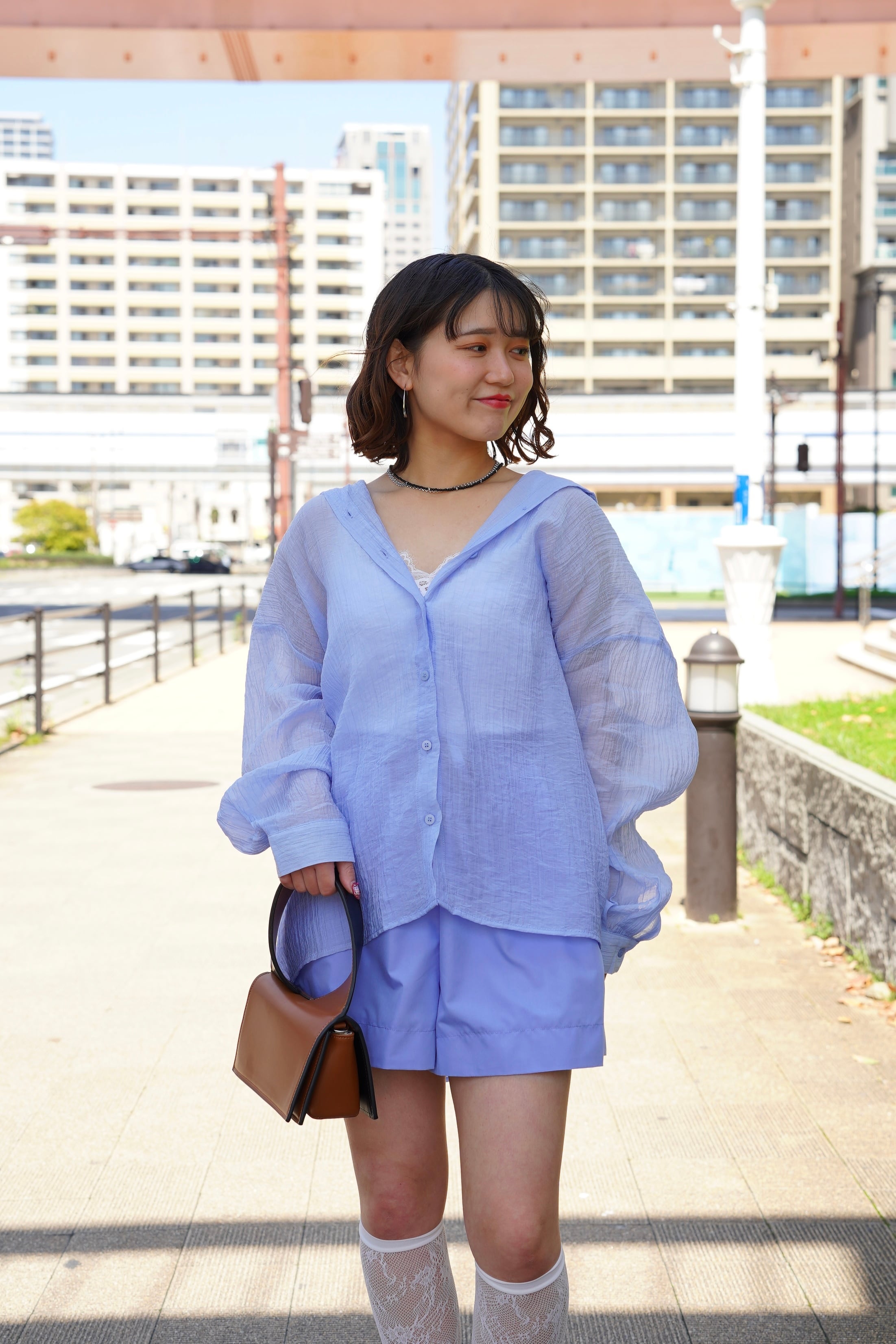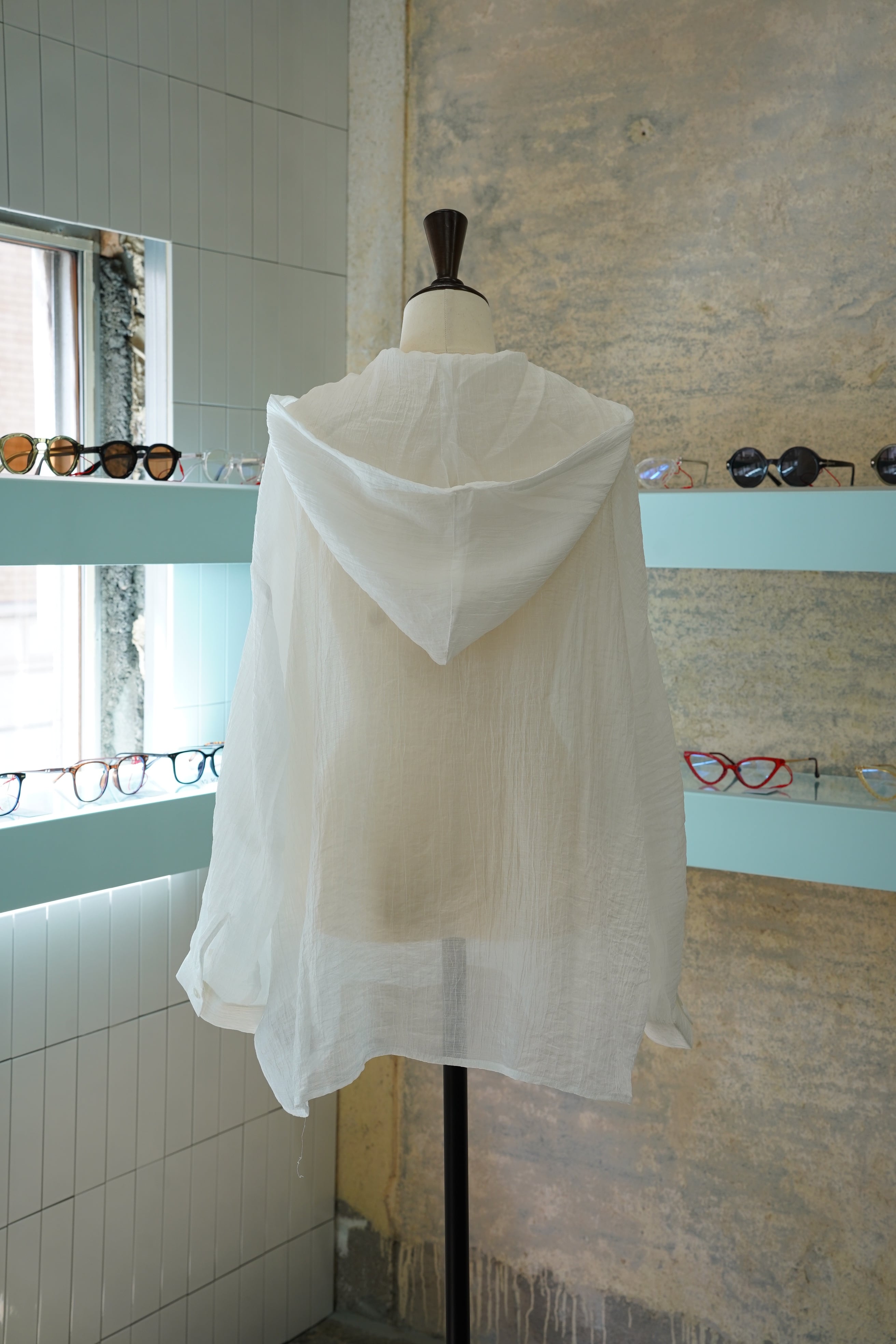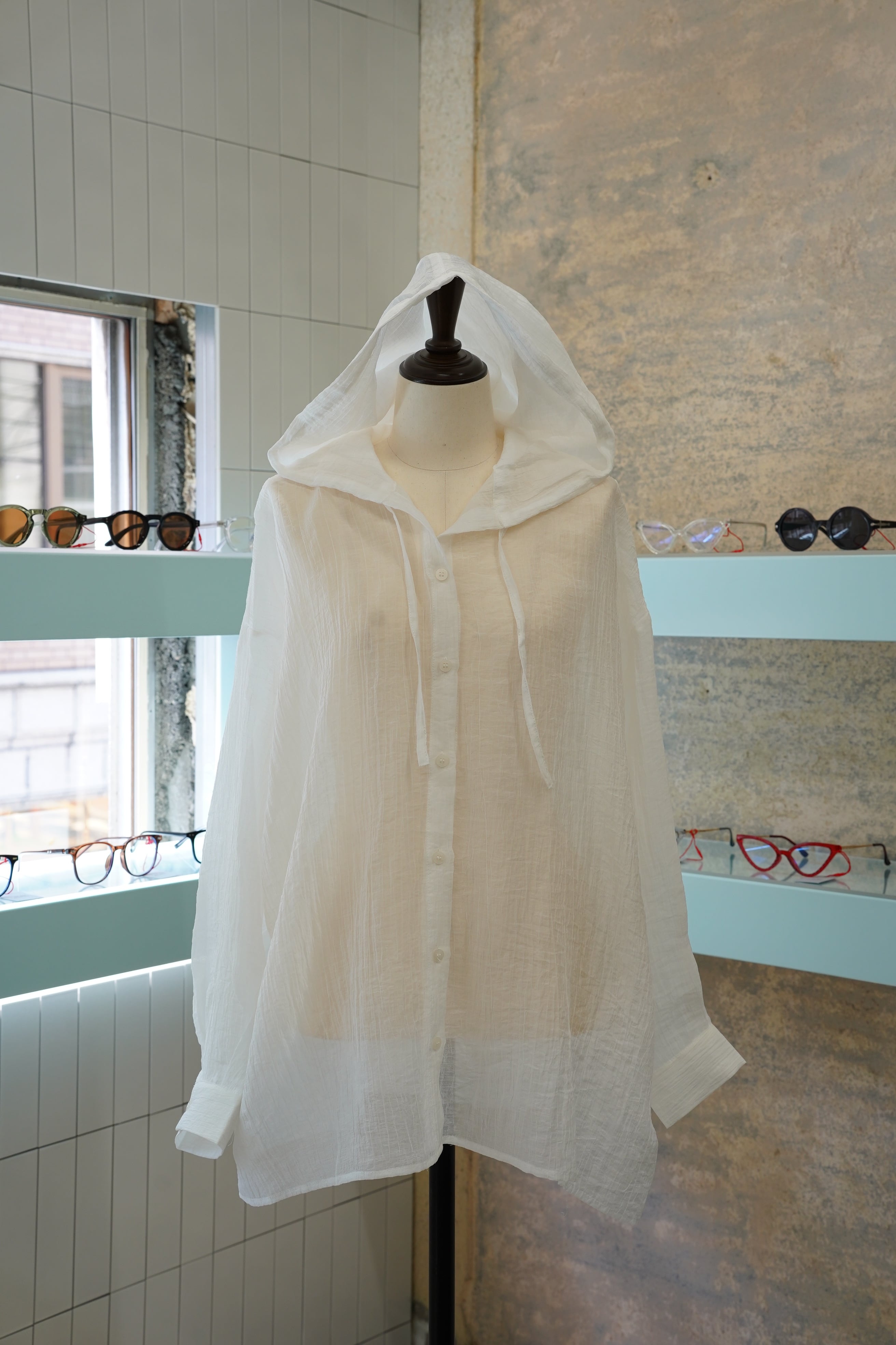 『SUKE PARKER SHIRT』は、透け感のあるデザインが特徴的なシャツ型パーカーです。