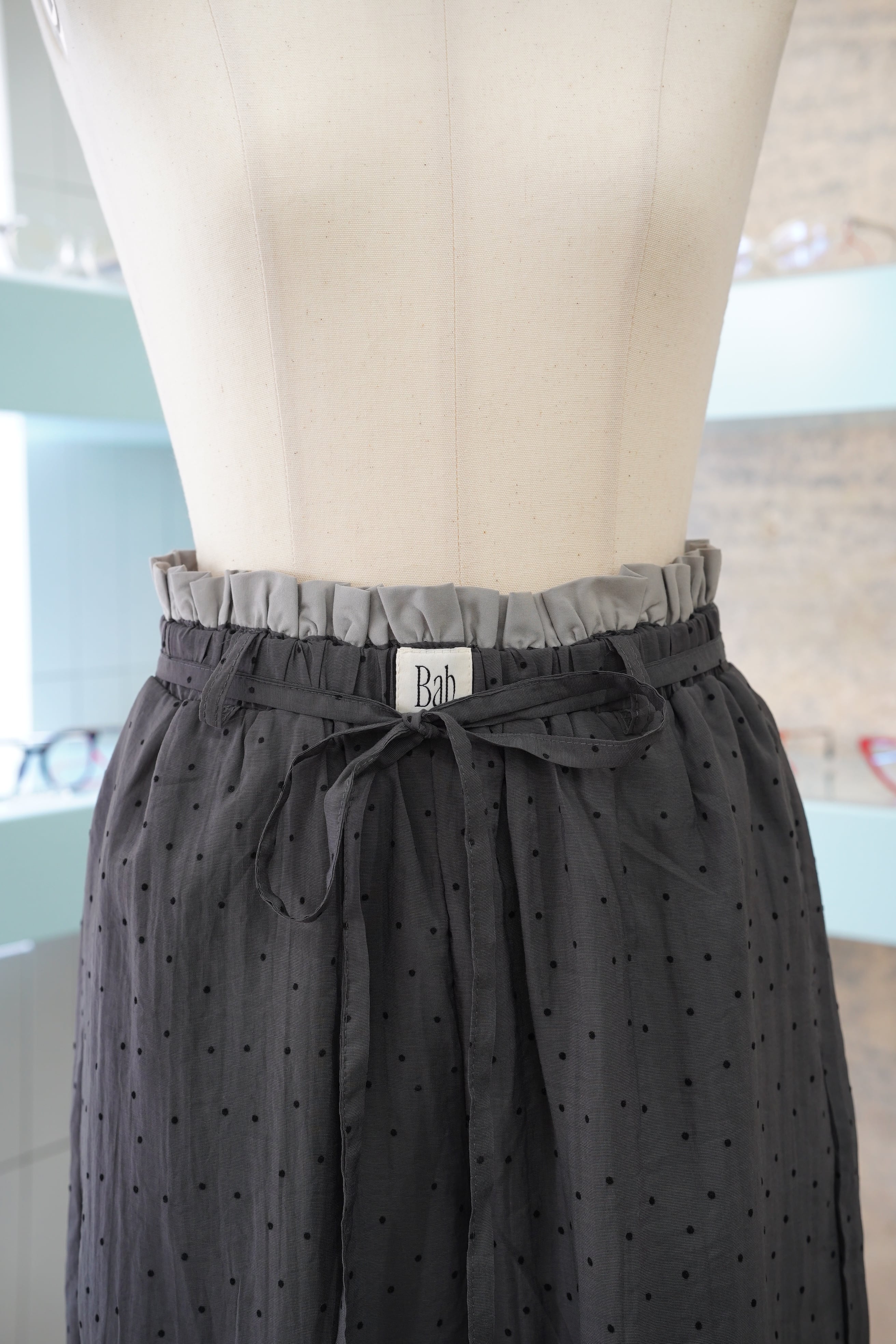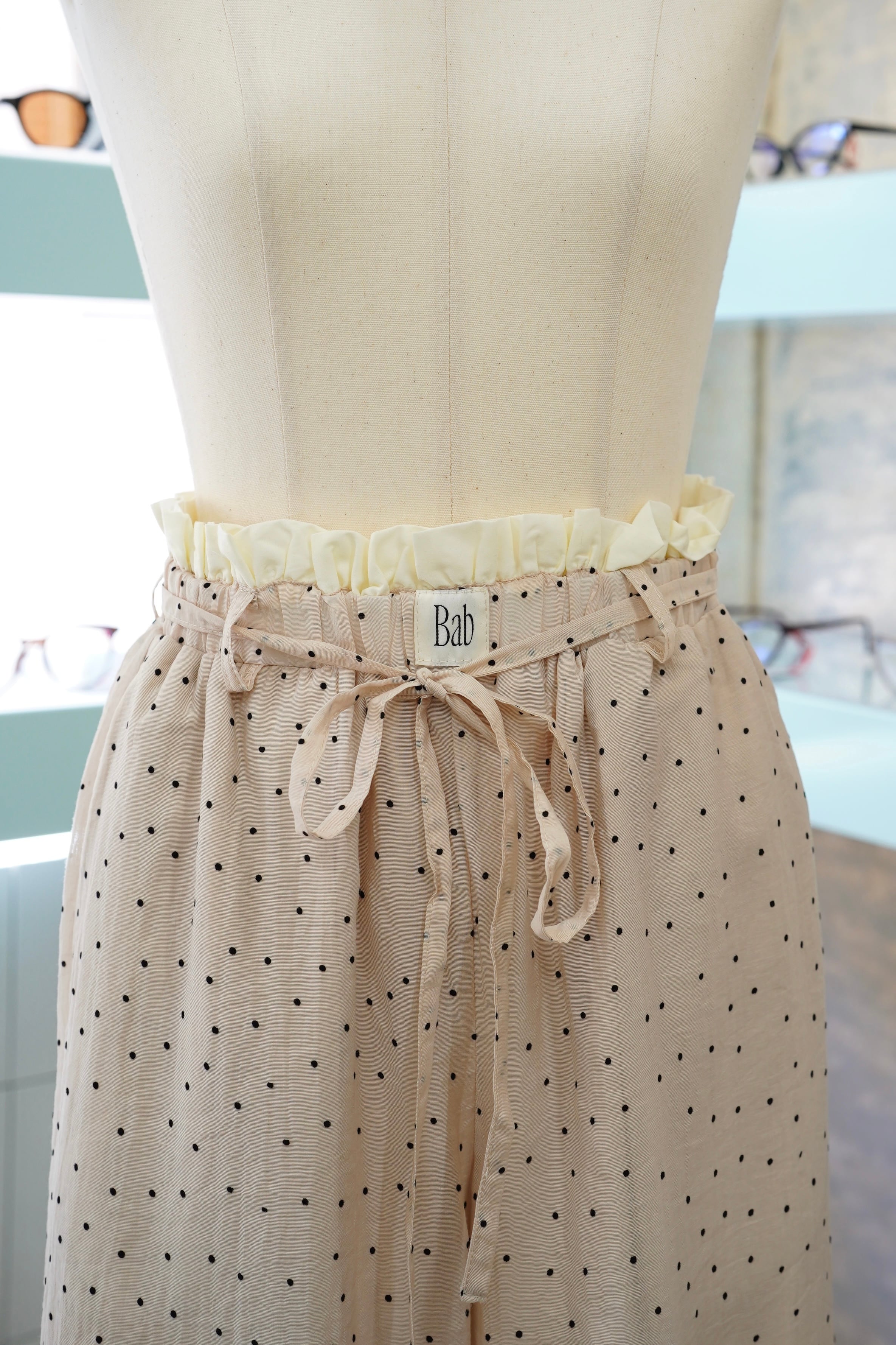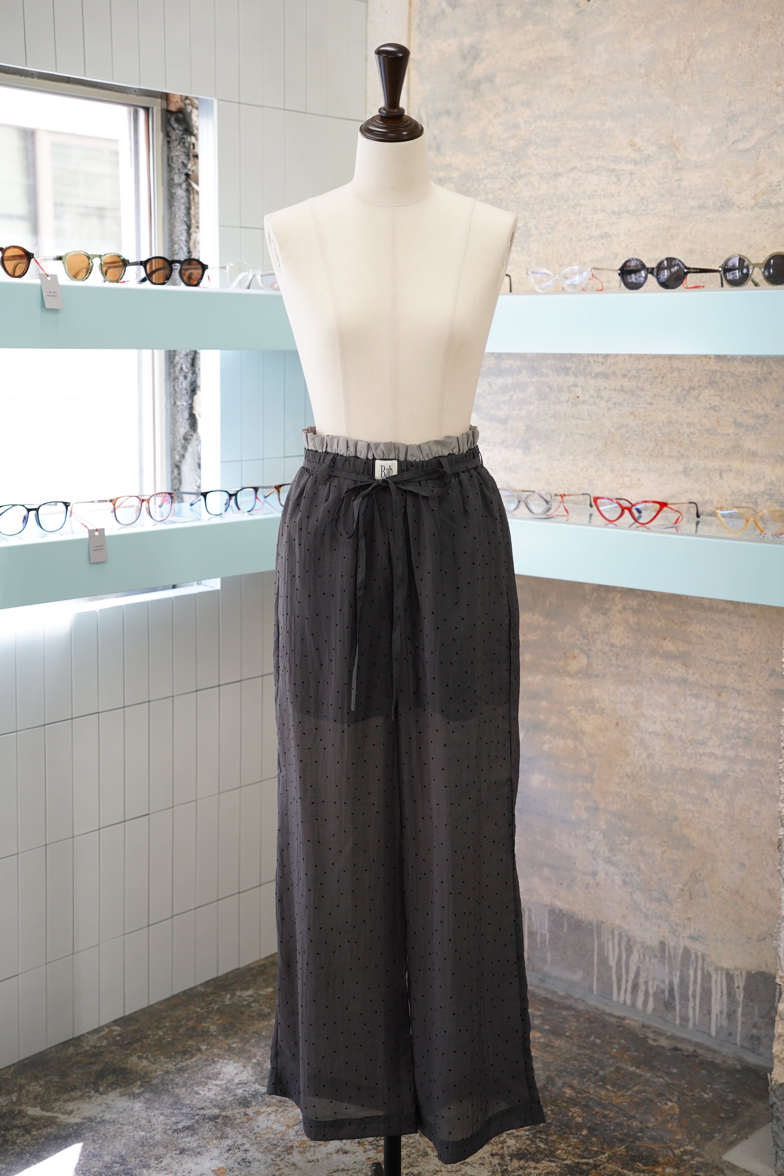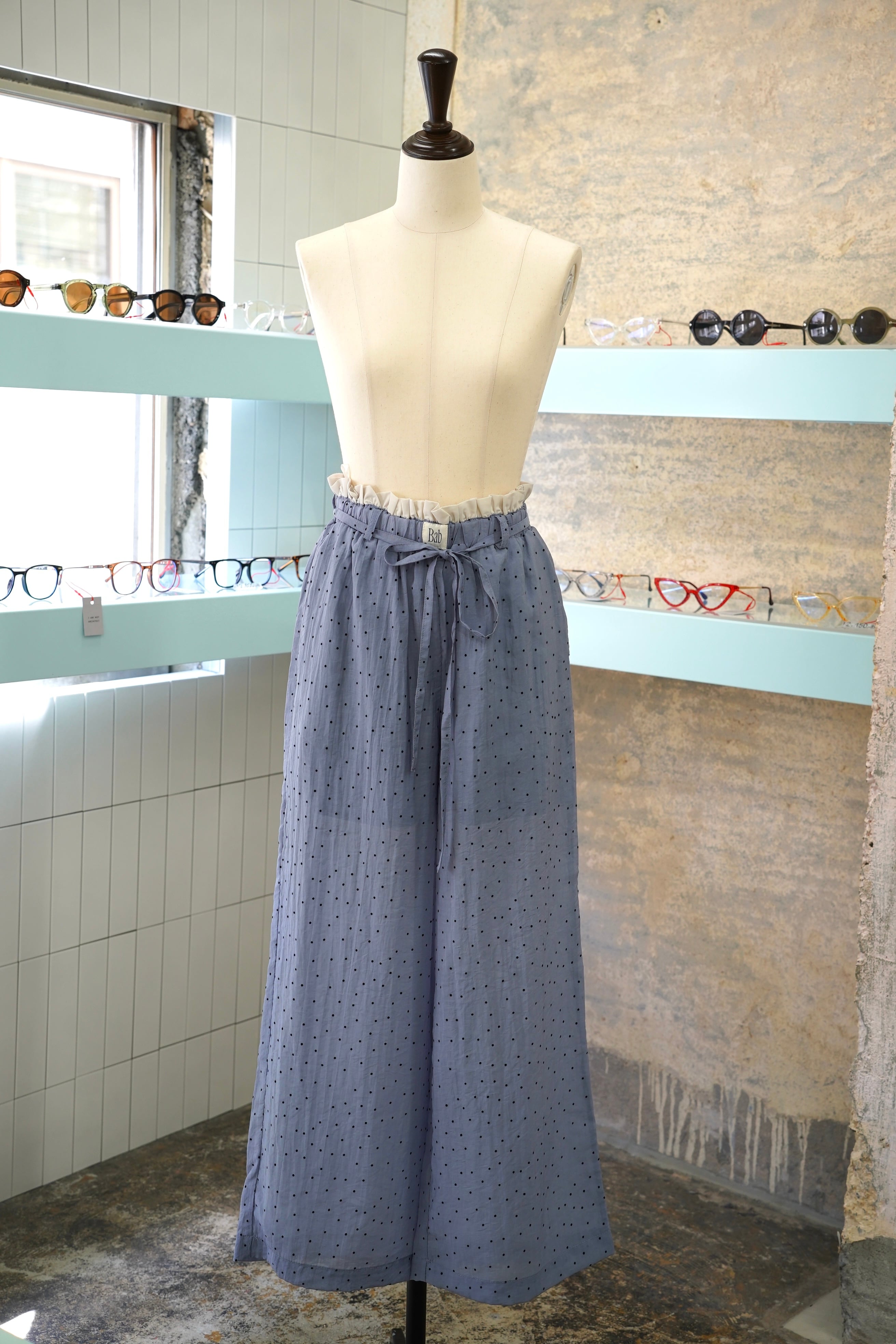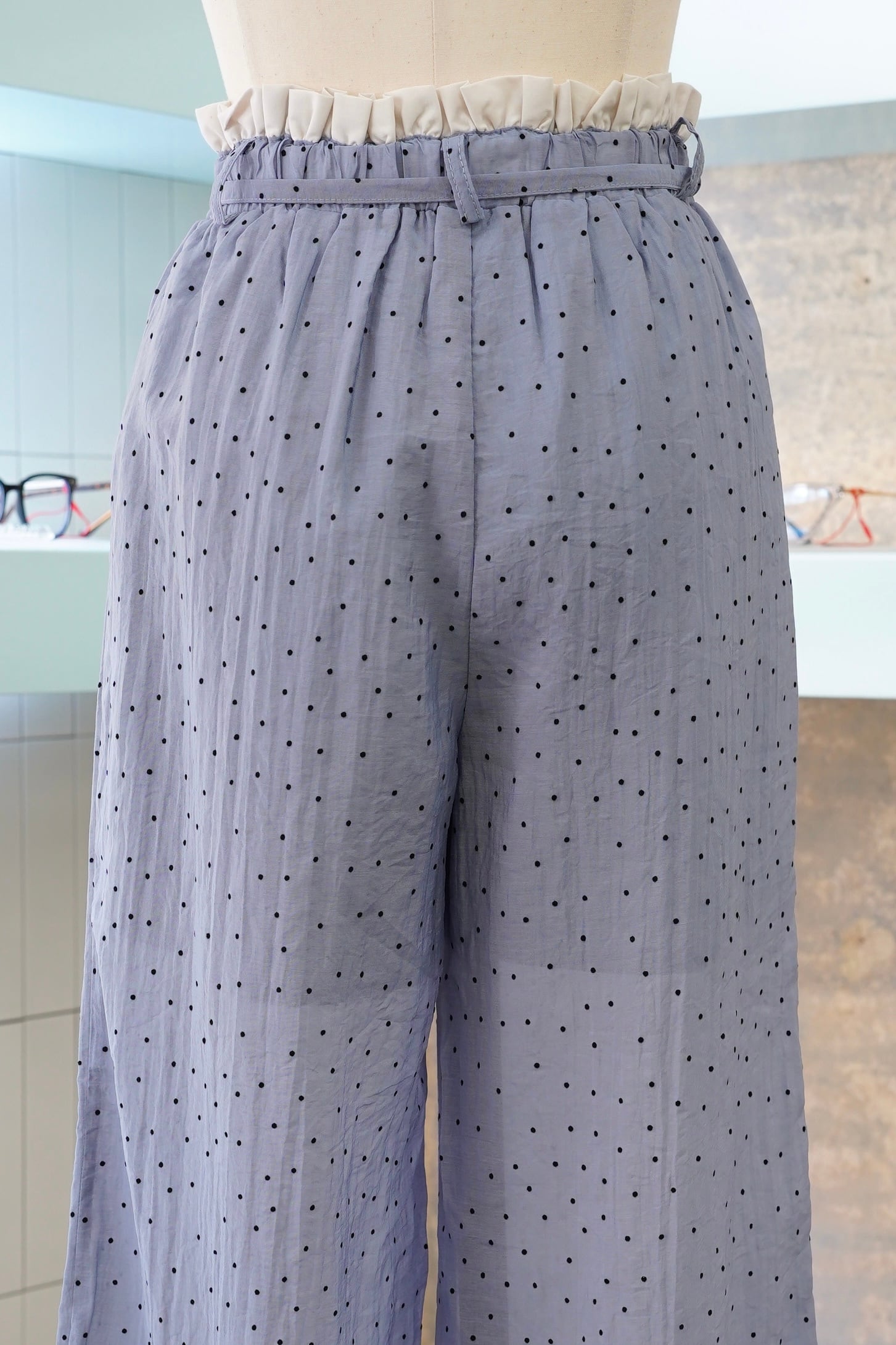『W WAIST SUKE DOT EASY PANTS』は、ダブルウエストデザインが魅力的なドットパンツです。