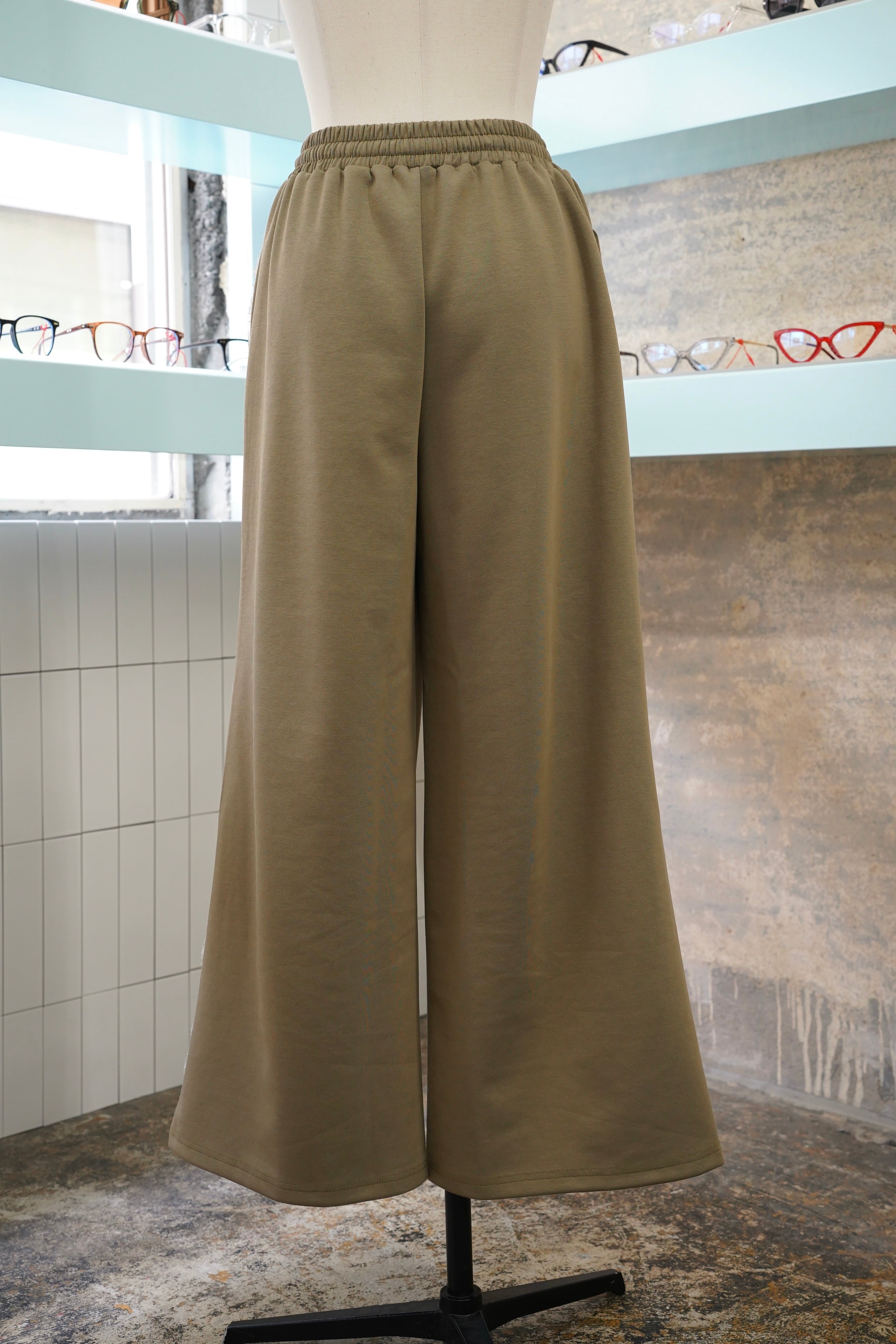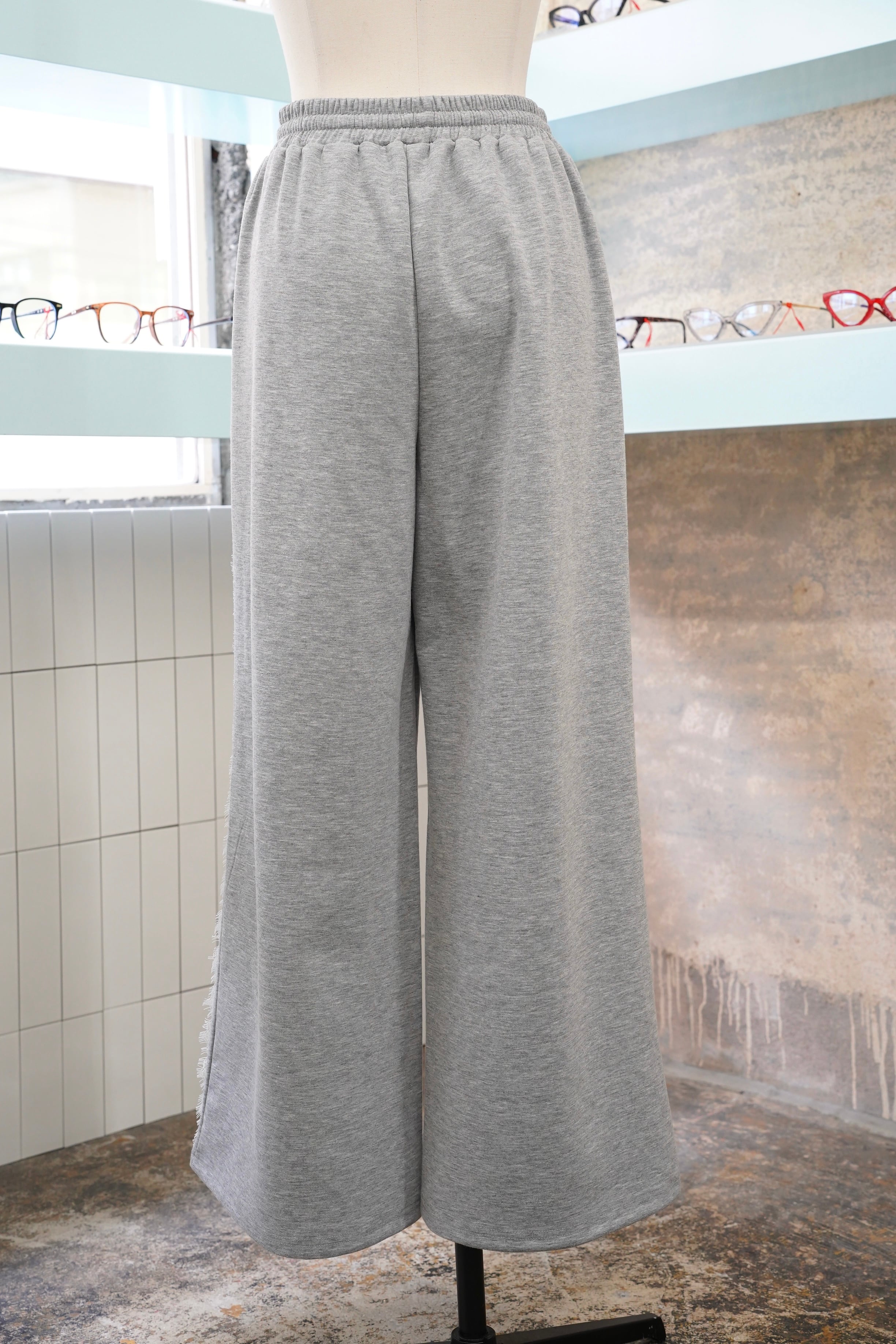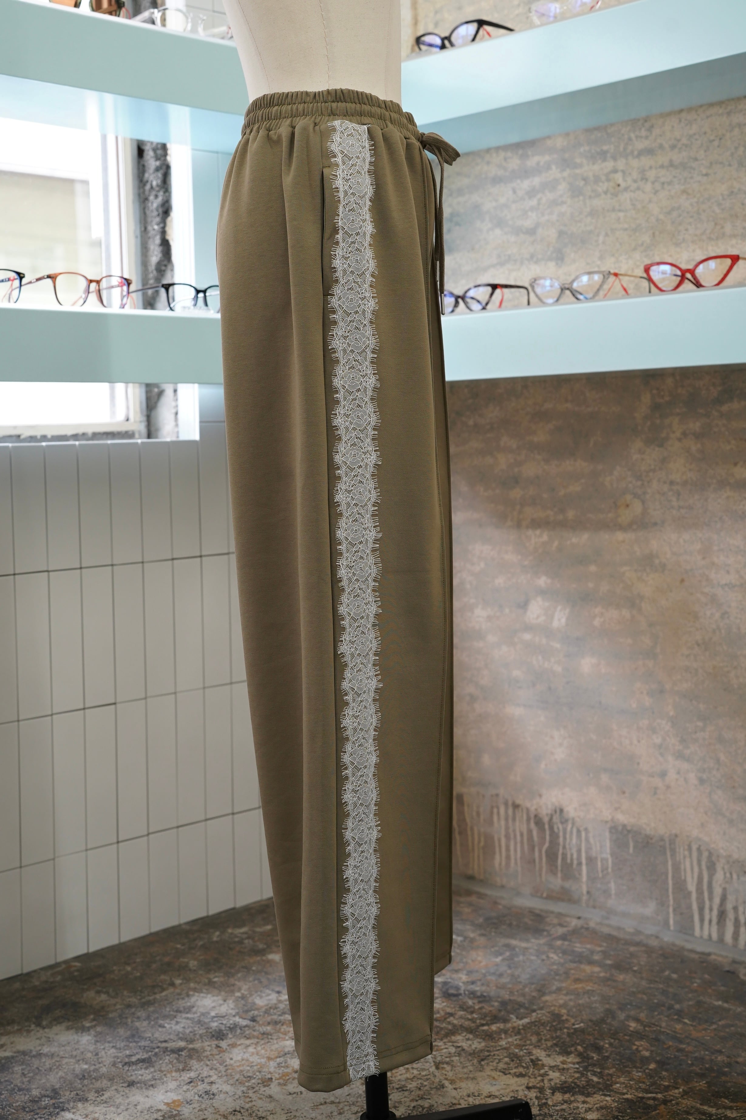 『LACE LINE WIDE SWEAT PANTS』は、華やかなレースラインが特徴的なスウェットパンツです。