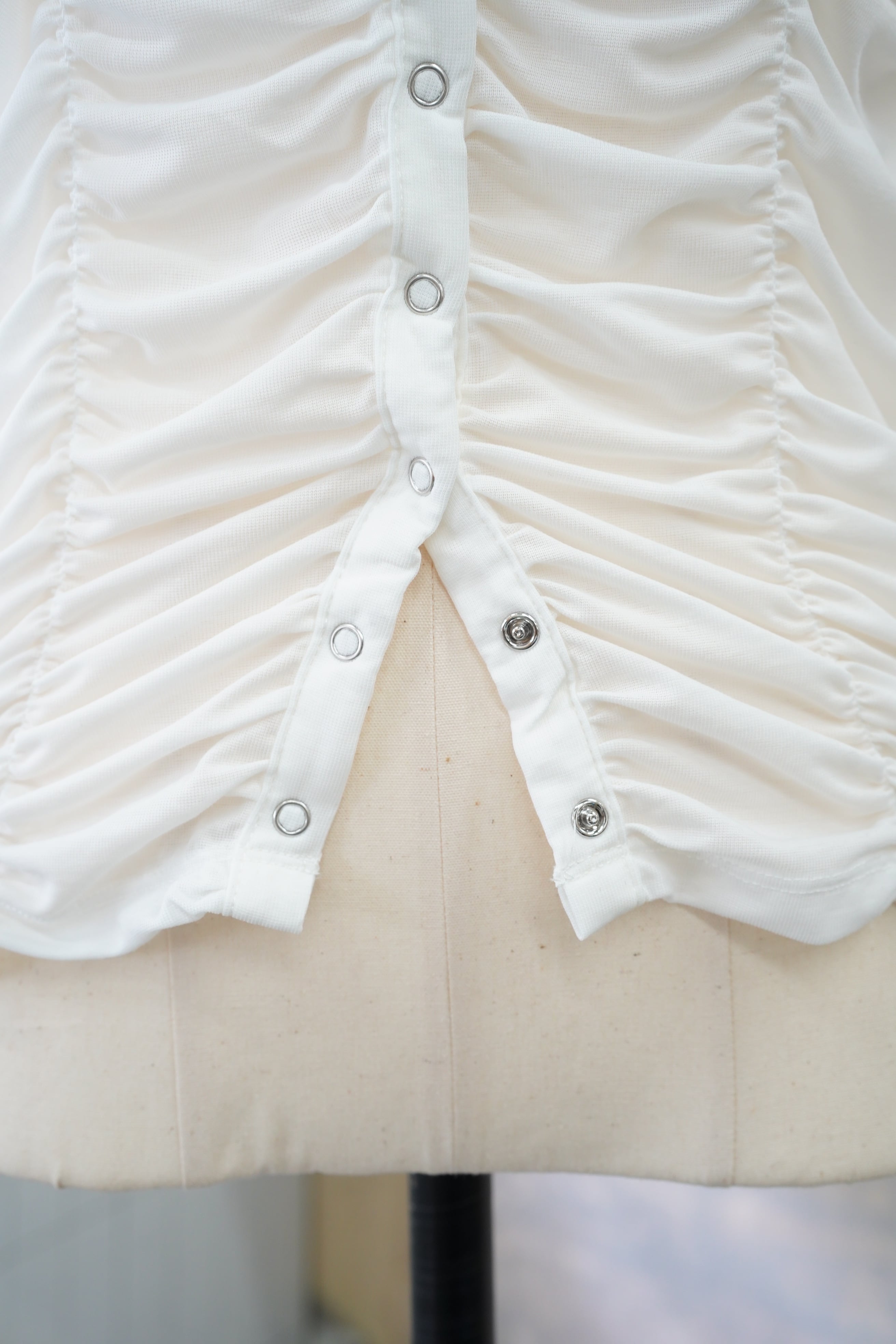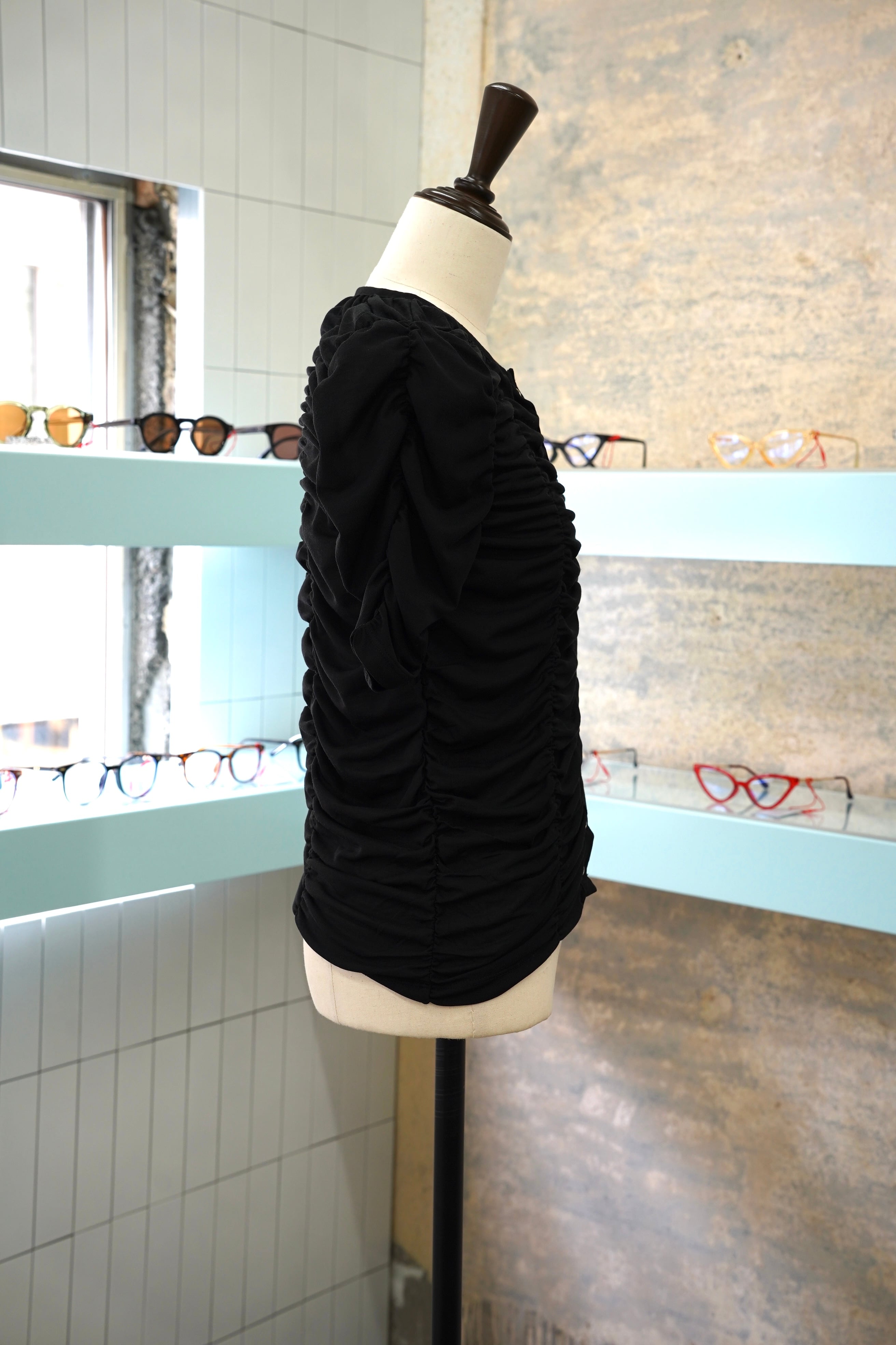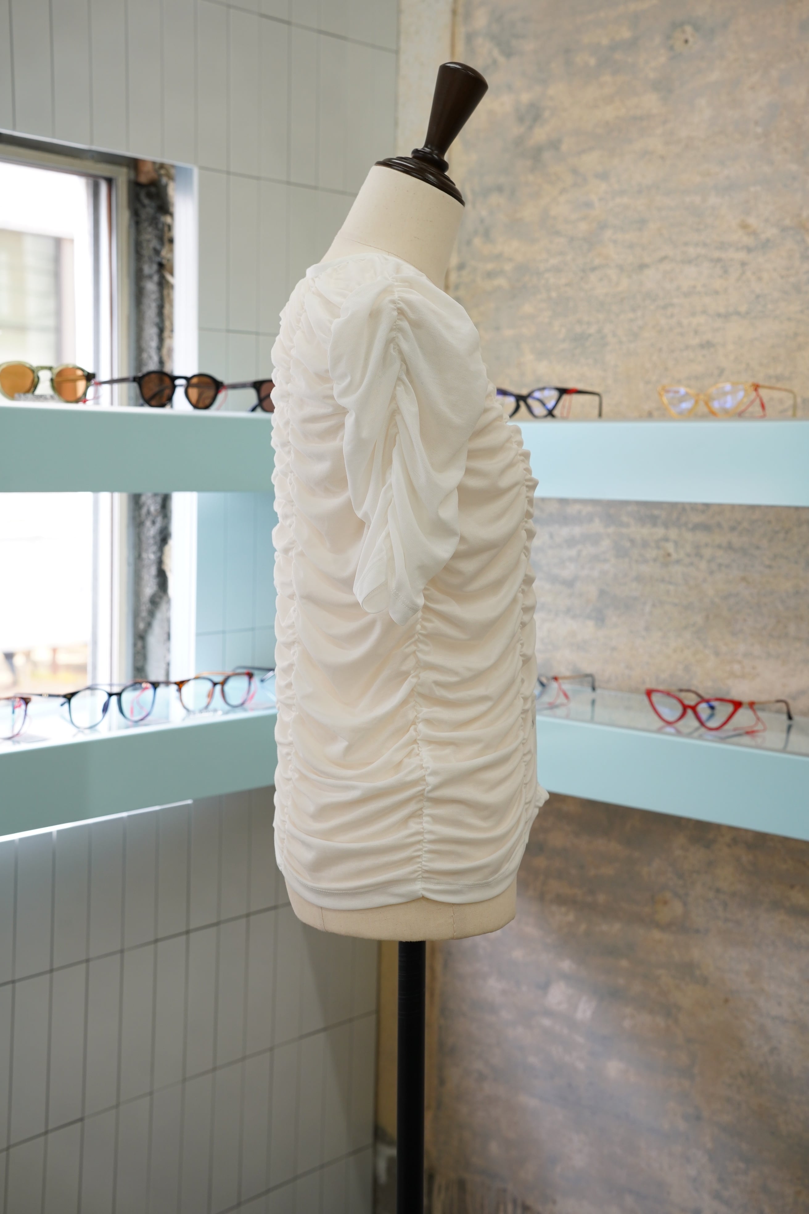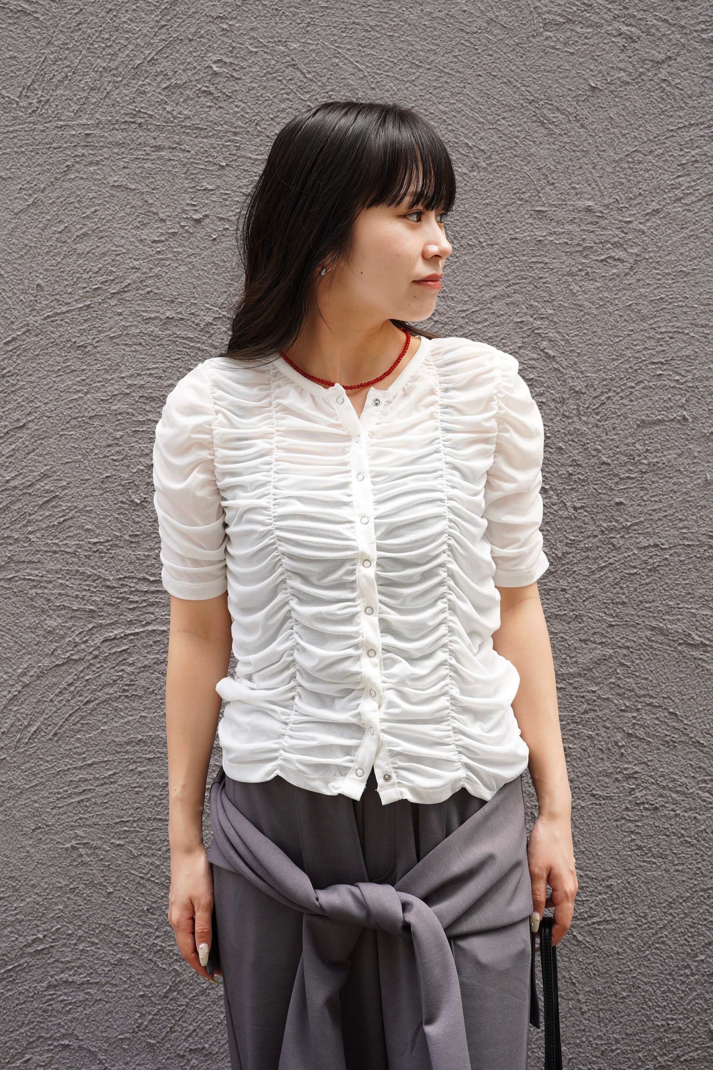 KUSYUKUSYU SUKE SHORT SLEEVE CARDIGANは、くしゅくしゅ感が可愛い透け素材の半袖カーディガンです。