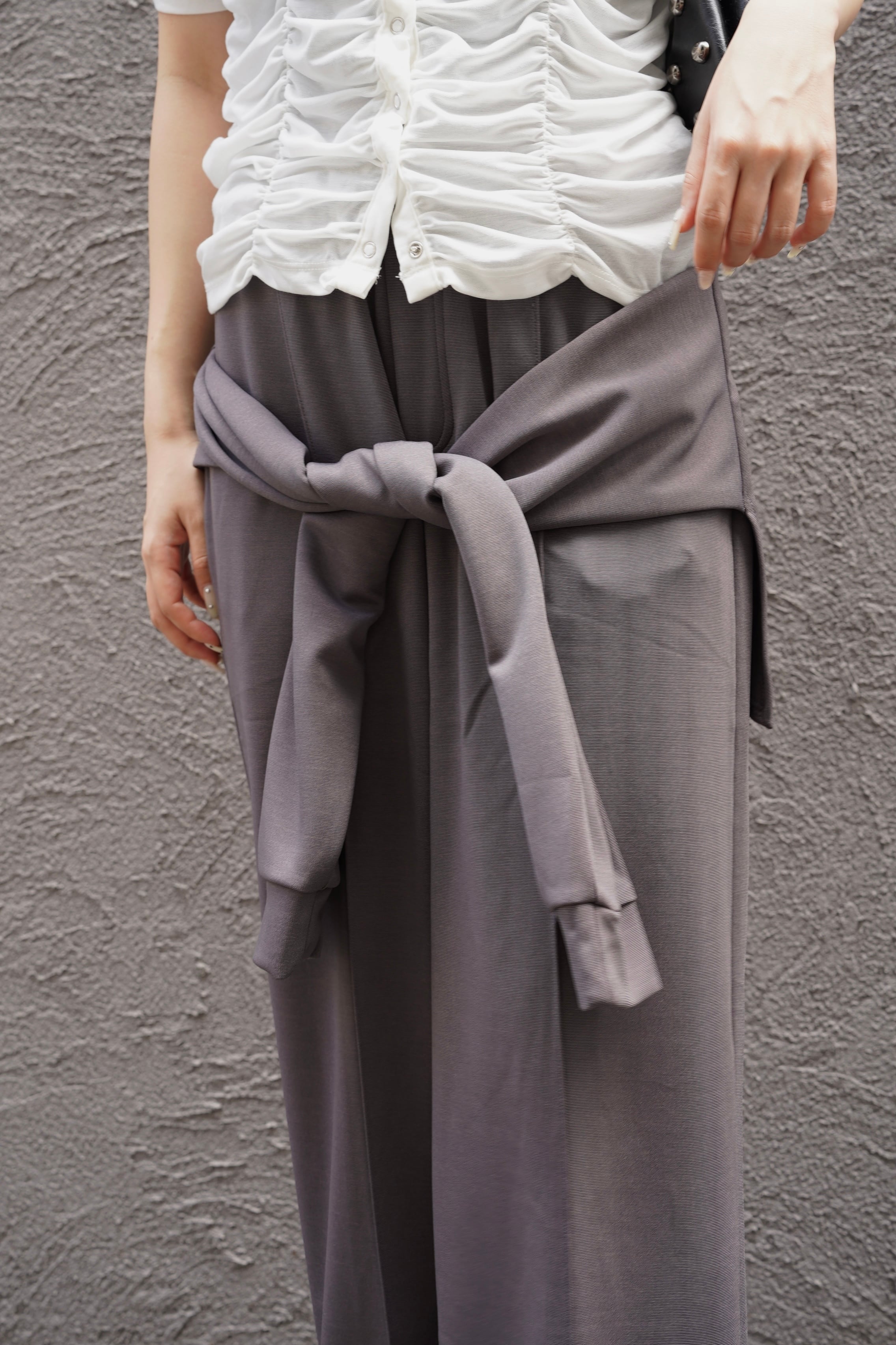 KOSIMAKI PONCH PTは、特徴的な腰巻きデザインが魅力のパンツです。