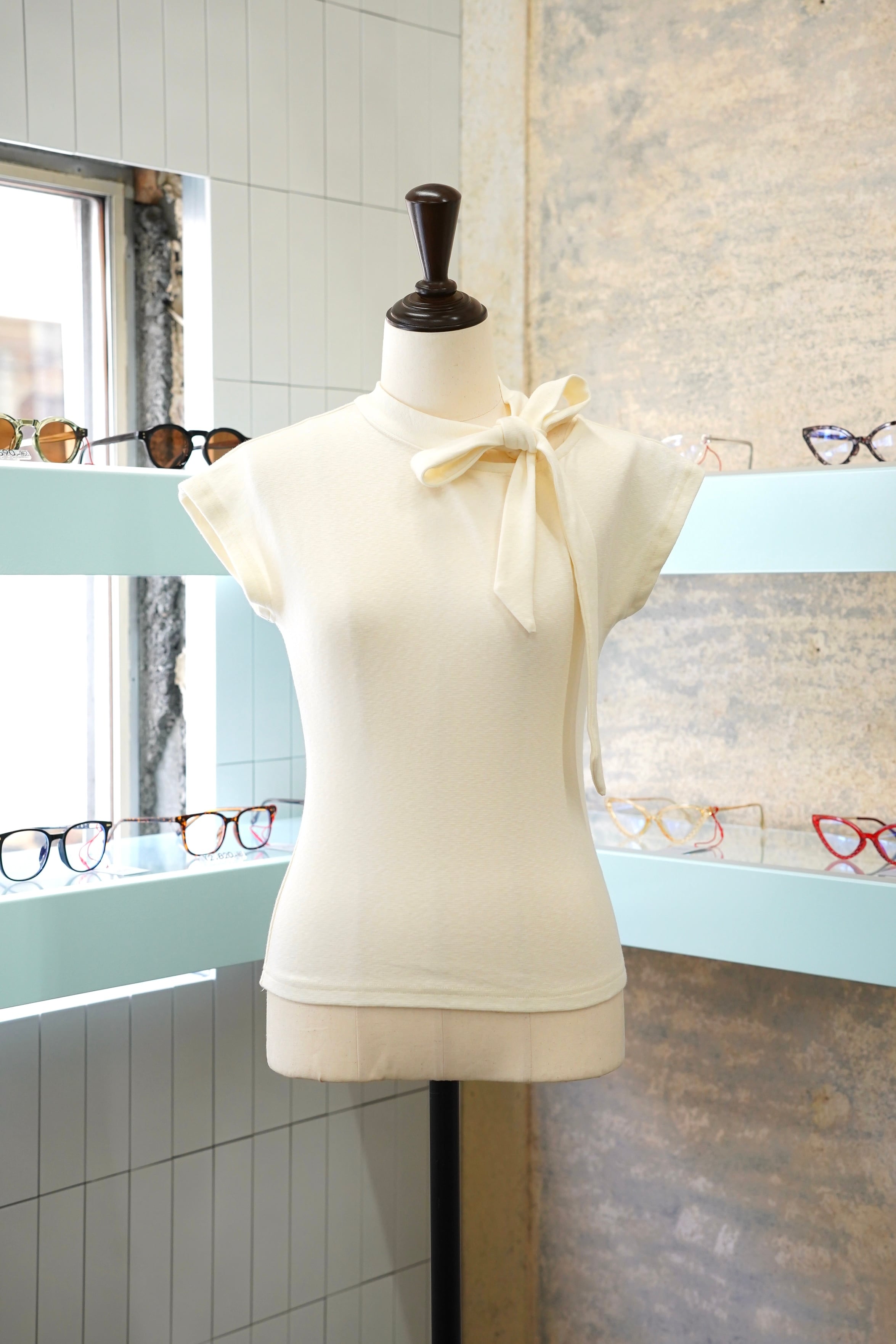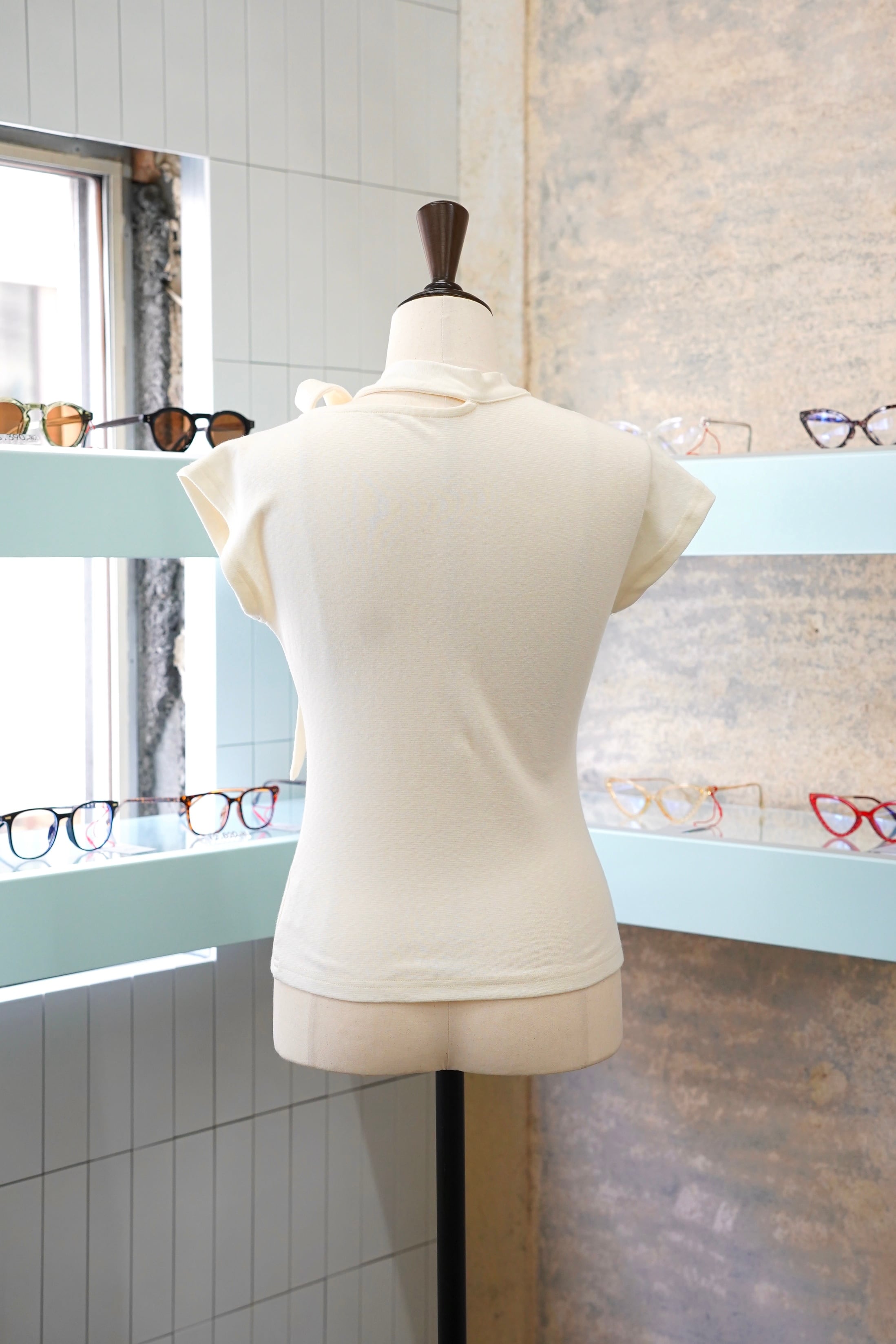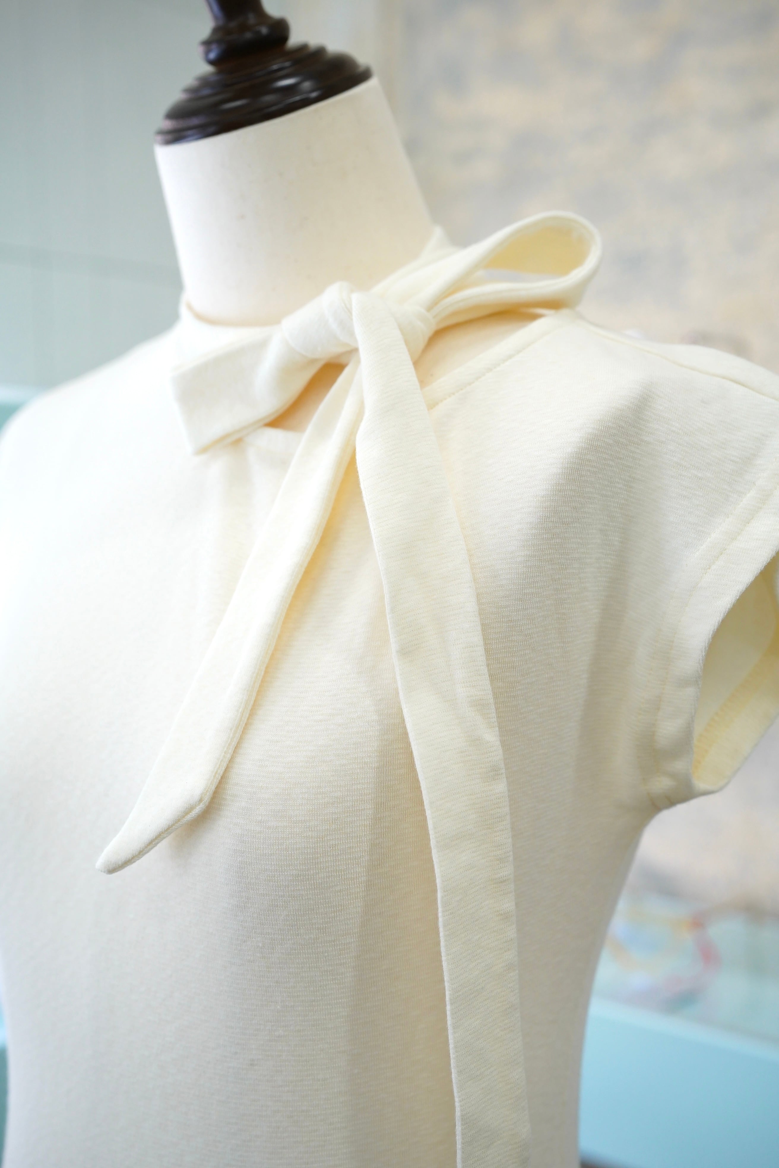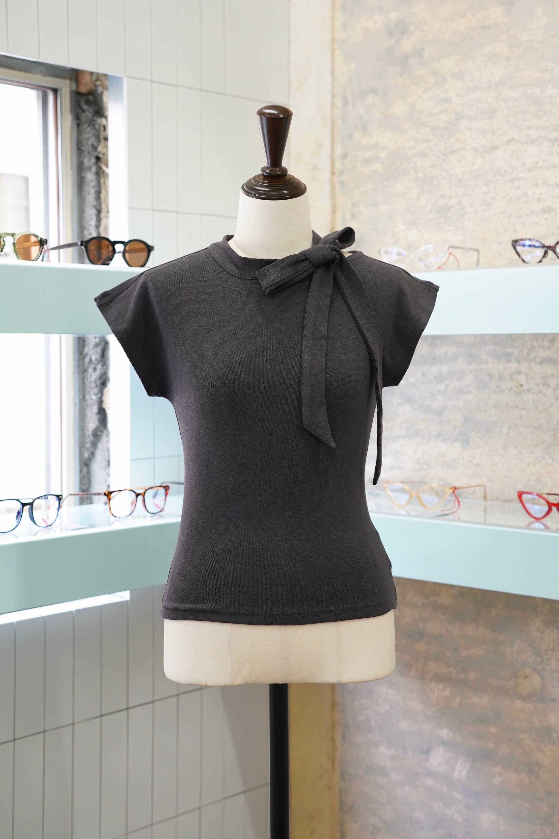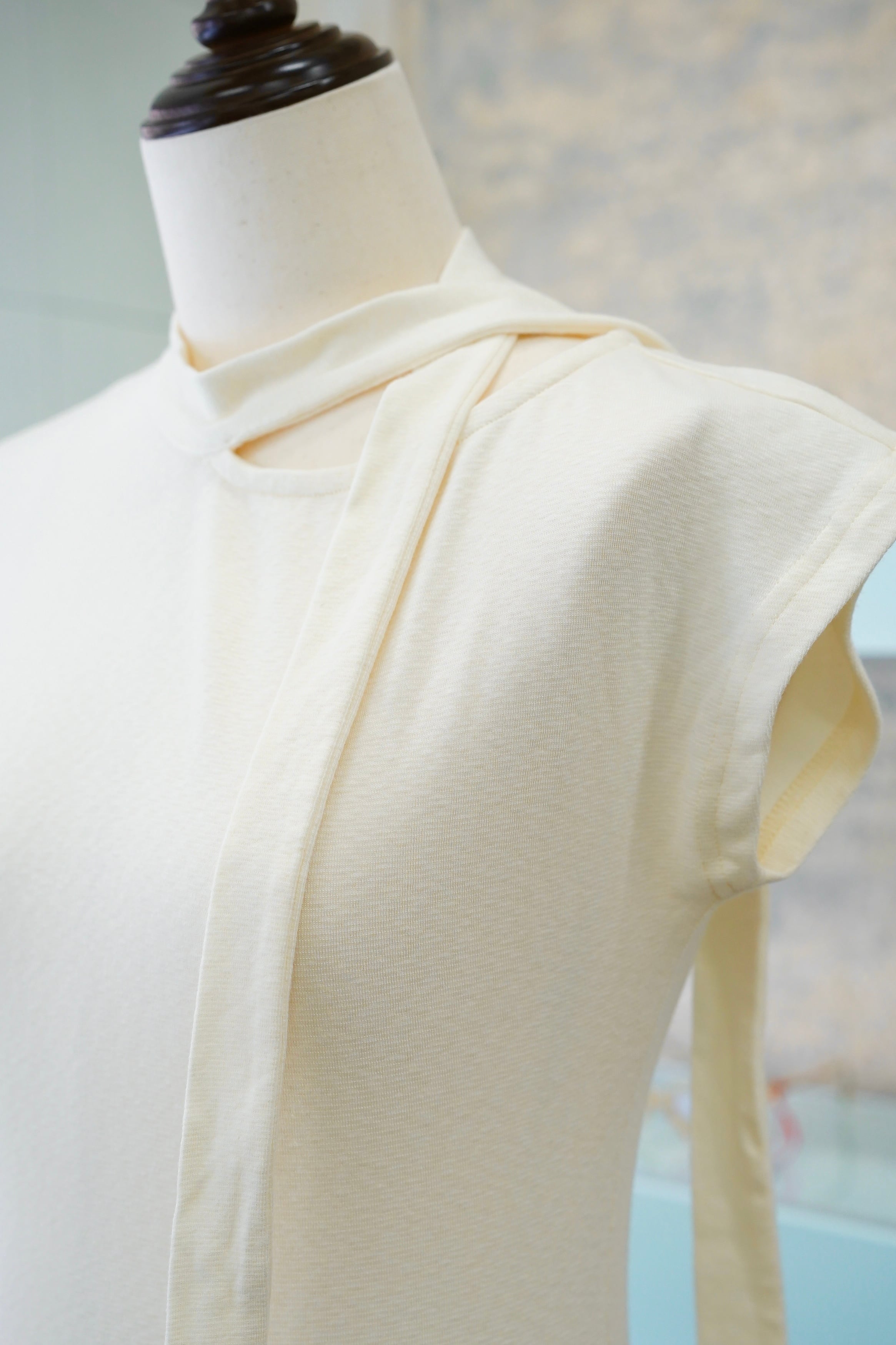TIE TUKI NO SLEEVE CUT AND SEWは、洗練されたデザインのタイ付きノースリーブカットソーです。