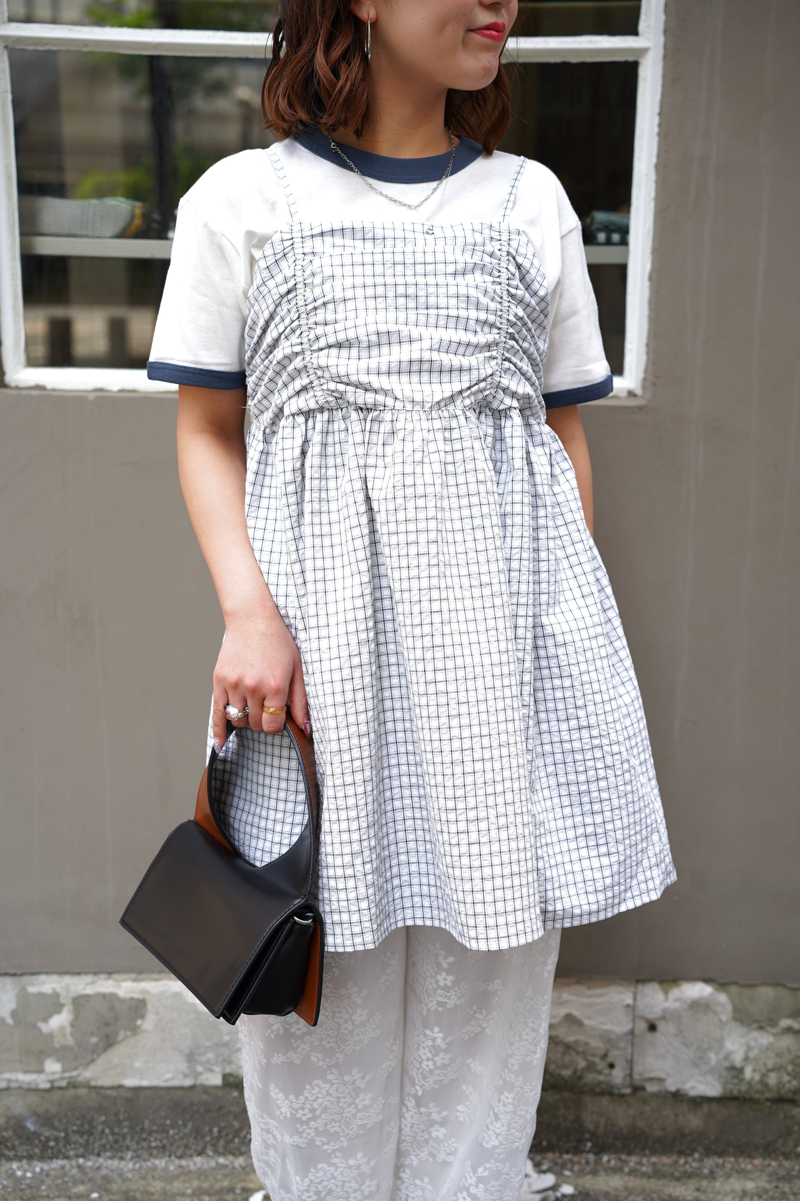 CHECK GATHER CUNIC CAMIは、チェック柄のギャザーチュニックキャミソールです。